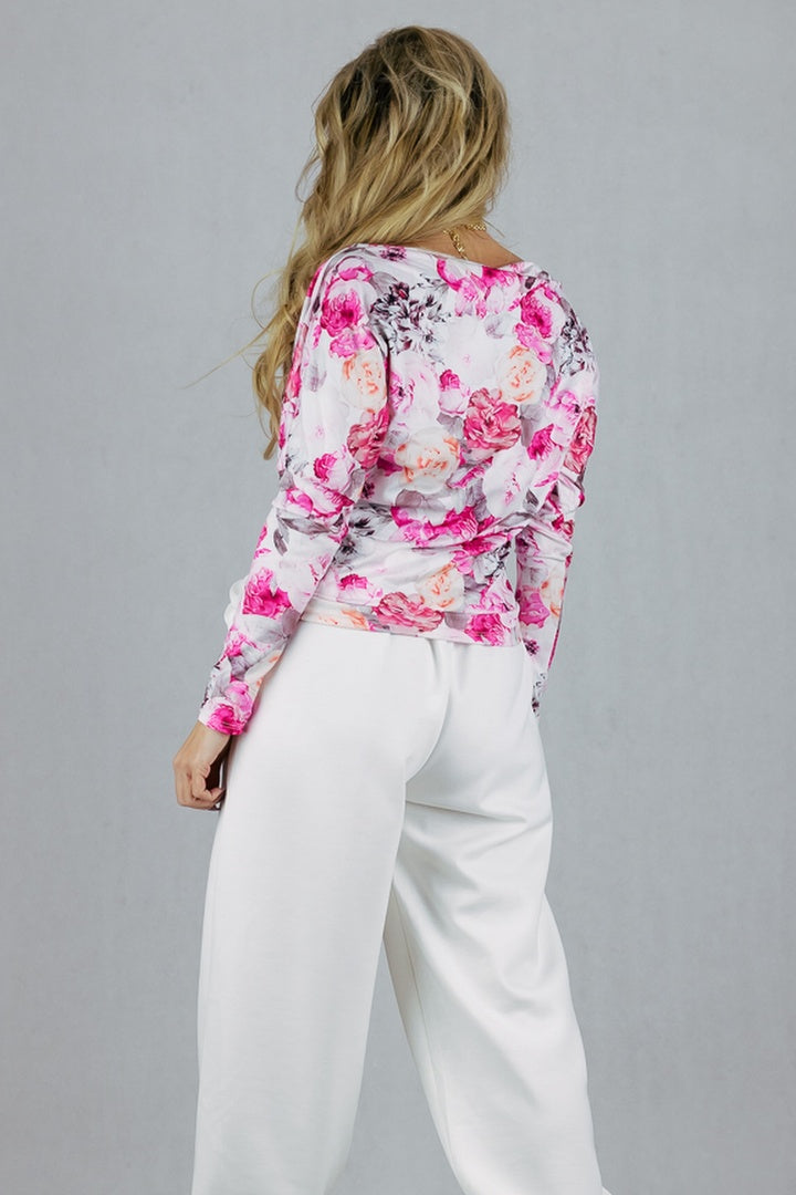 Bluzka w kwiaty 3D z dekoltem "łódka"