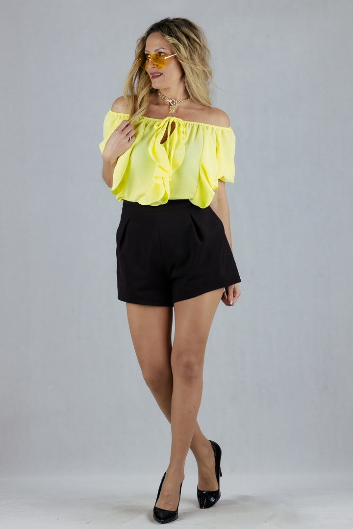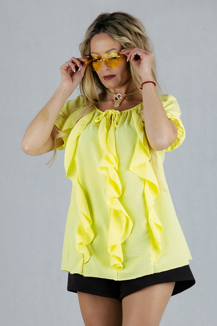 Zwiewna bluzka hiszpanka z pionowymi żabotami
