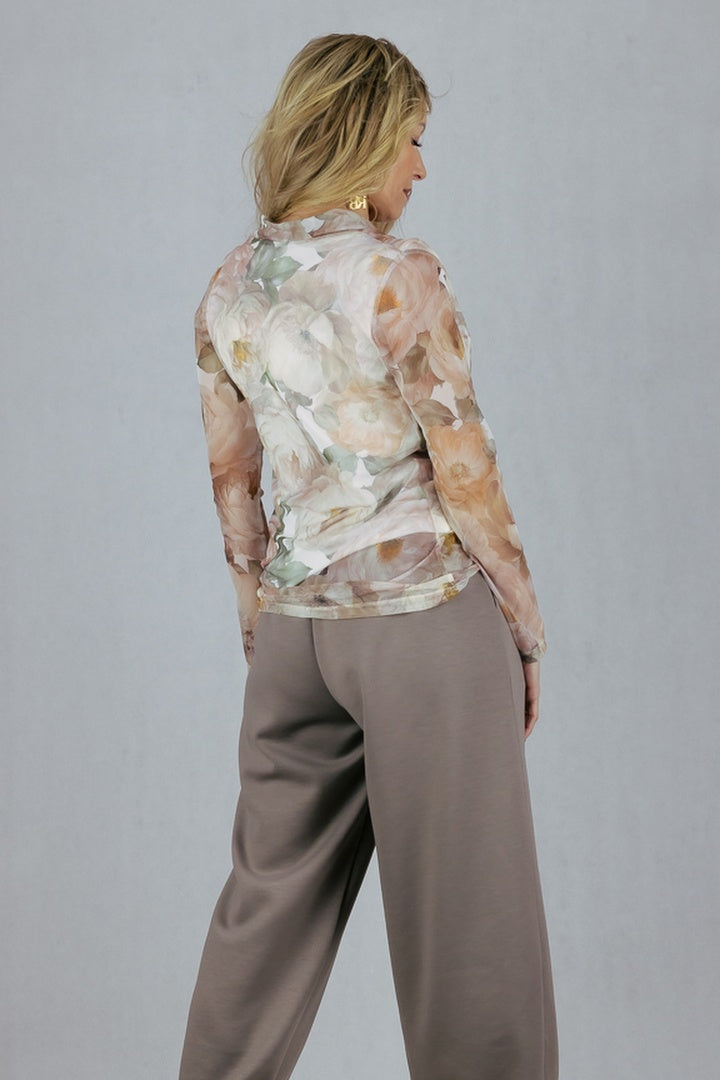 Bluzka siateczka w kwiaty z dekoltem "woda"