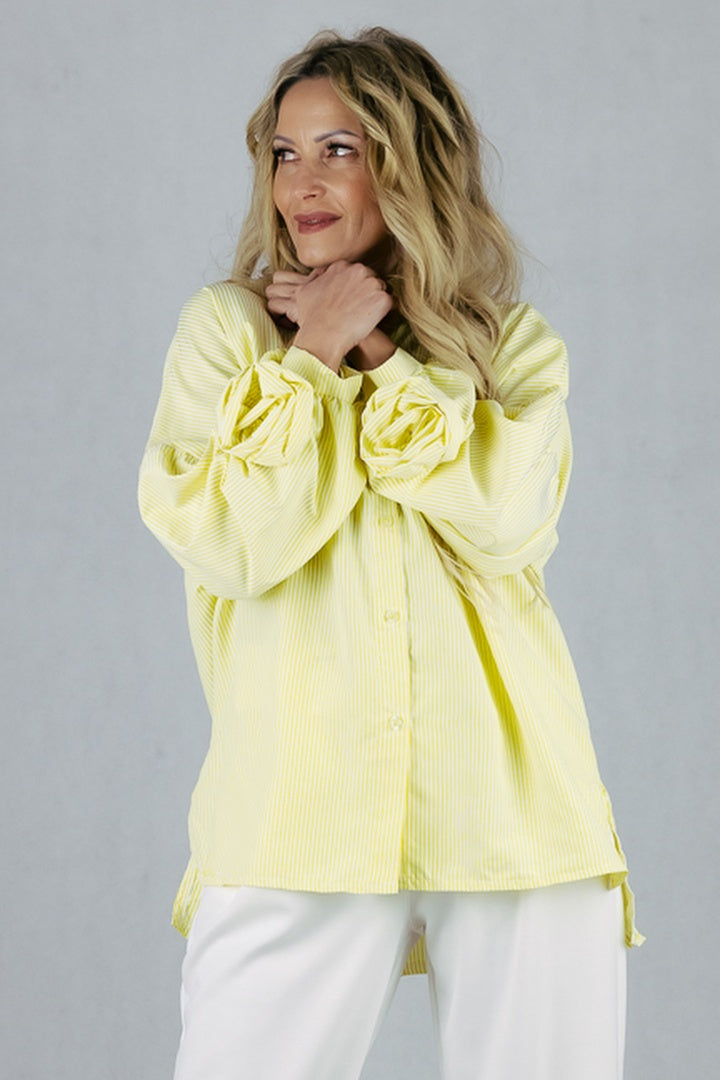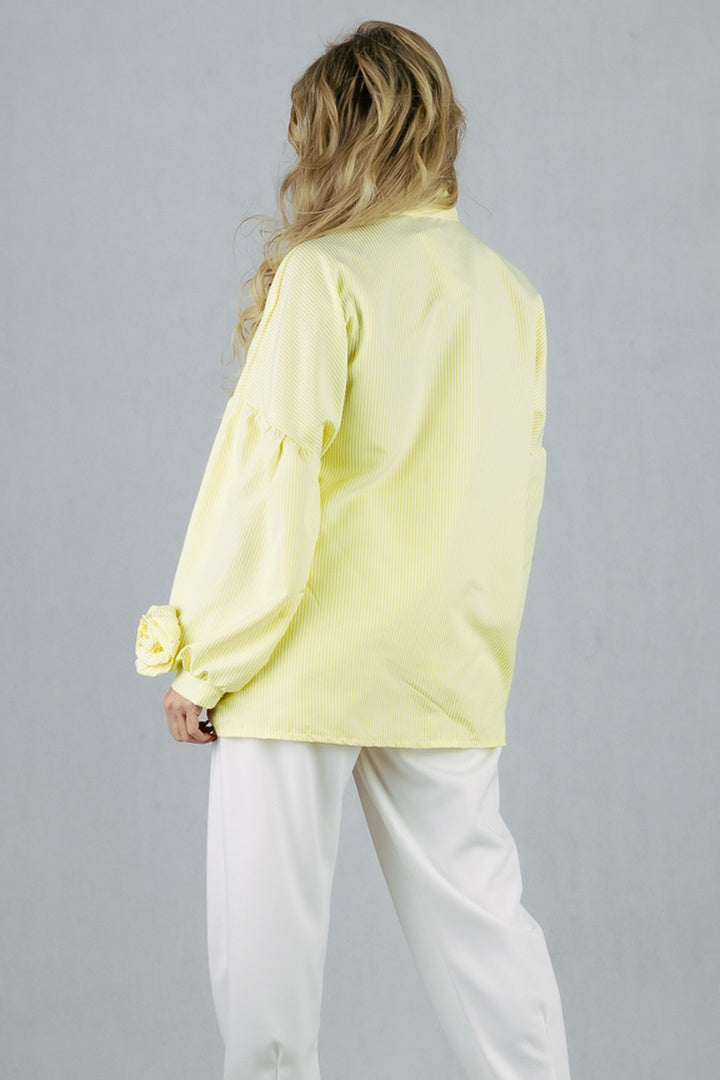 Klasyczna koszula w paski, z różą 3D przy rękawie