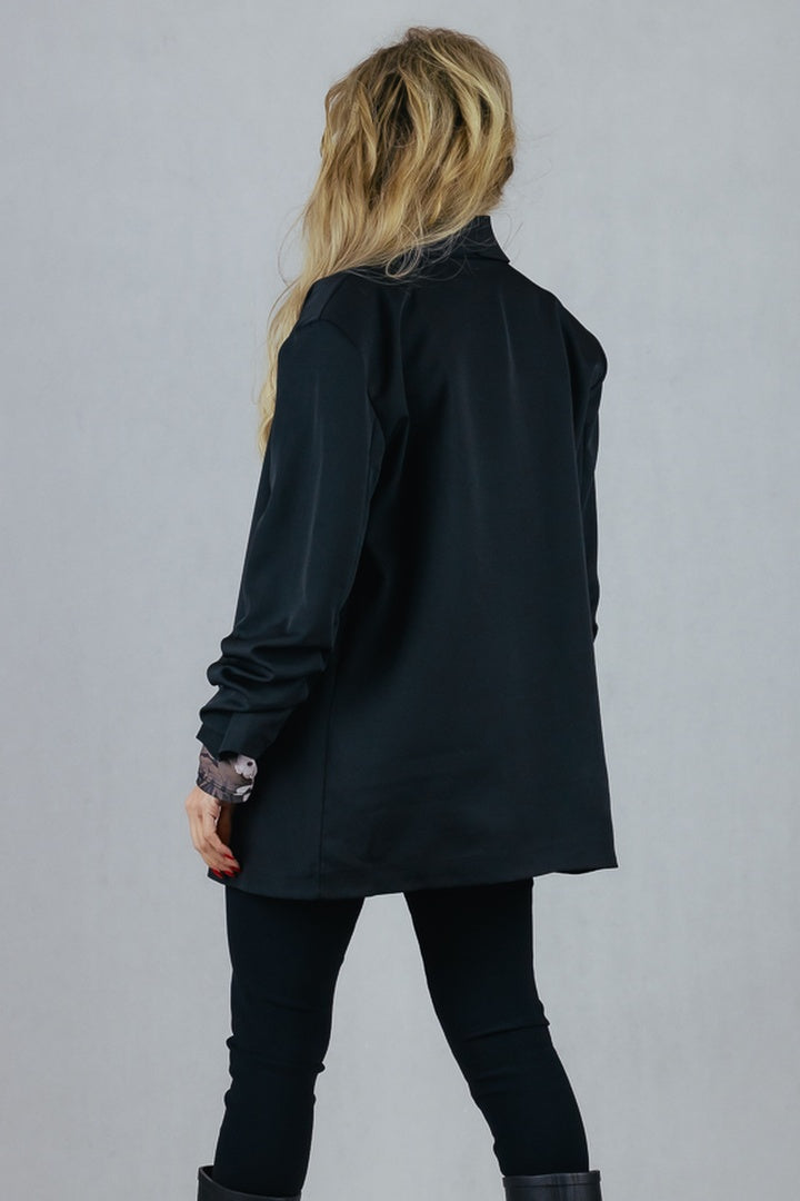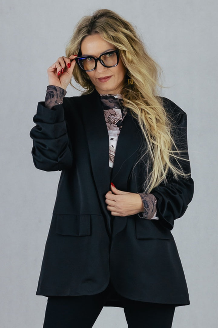 Elegancka marynarka z drapowanym rękawem, bez zapięcia
