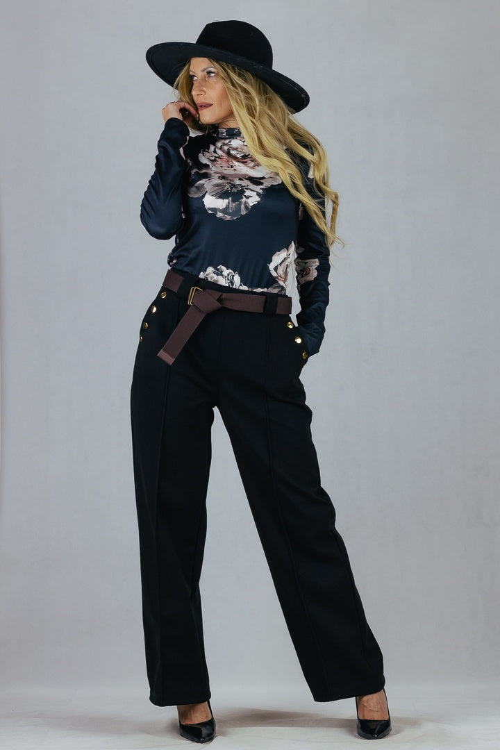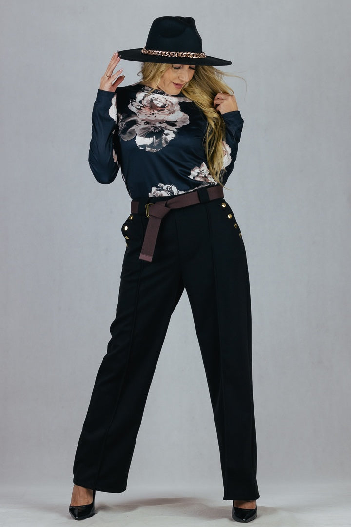 Eleganckie spodnie z szerszą, prostą nogawką, cieplejsze, uszyte z flauszu
