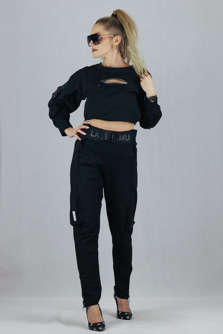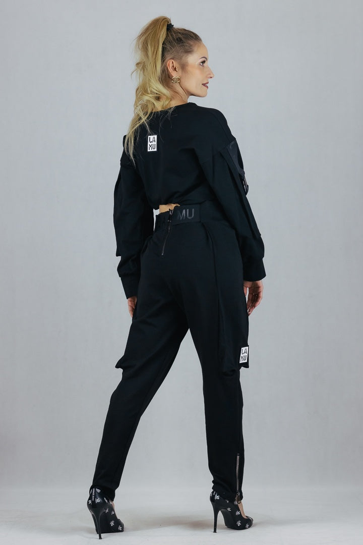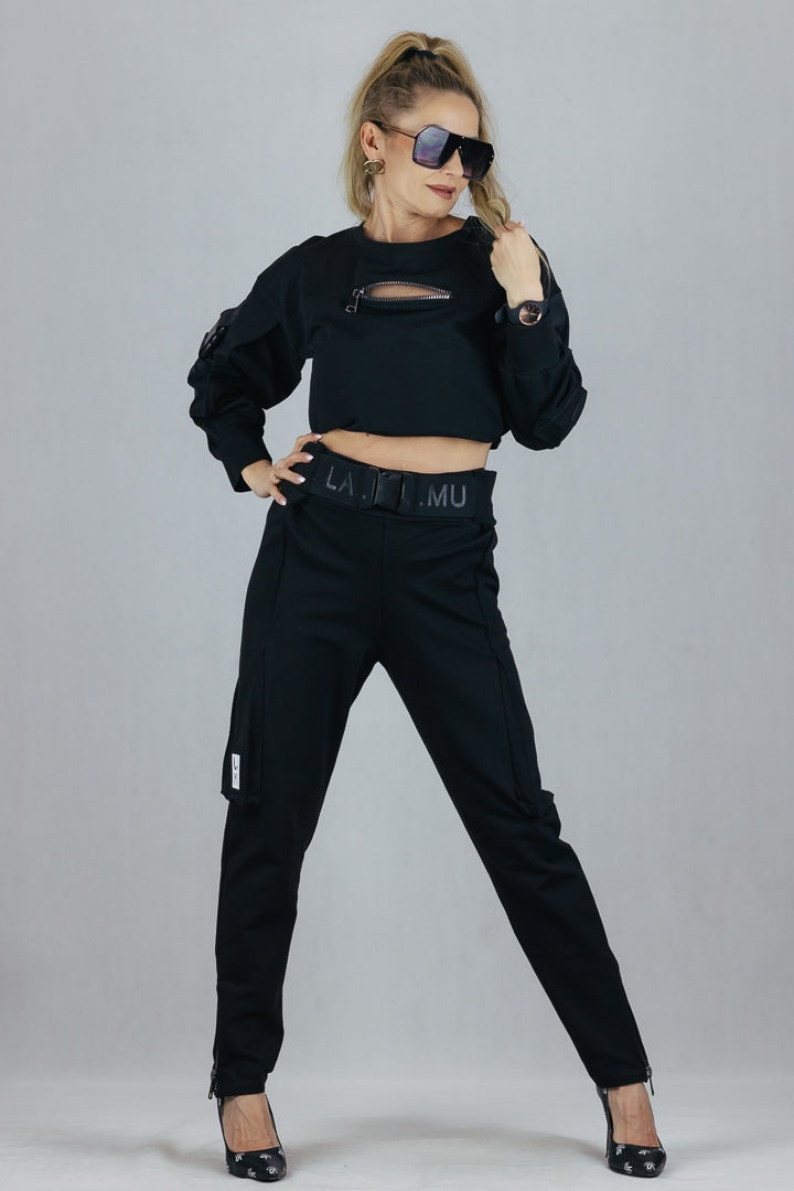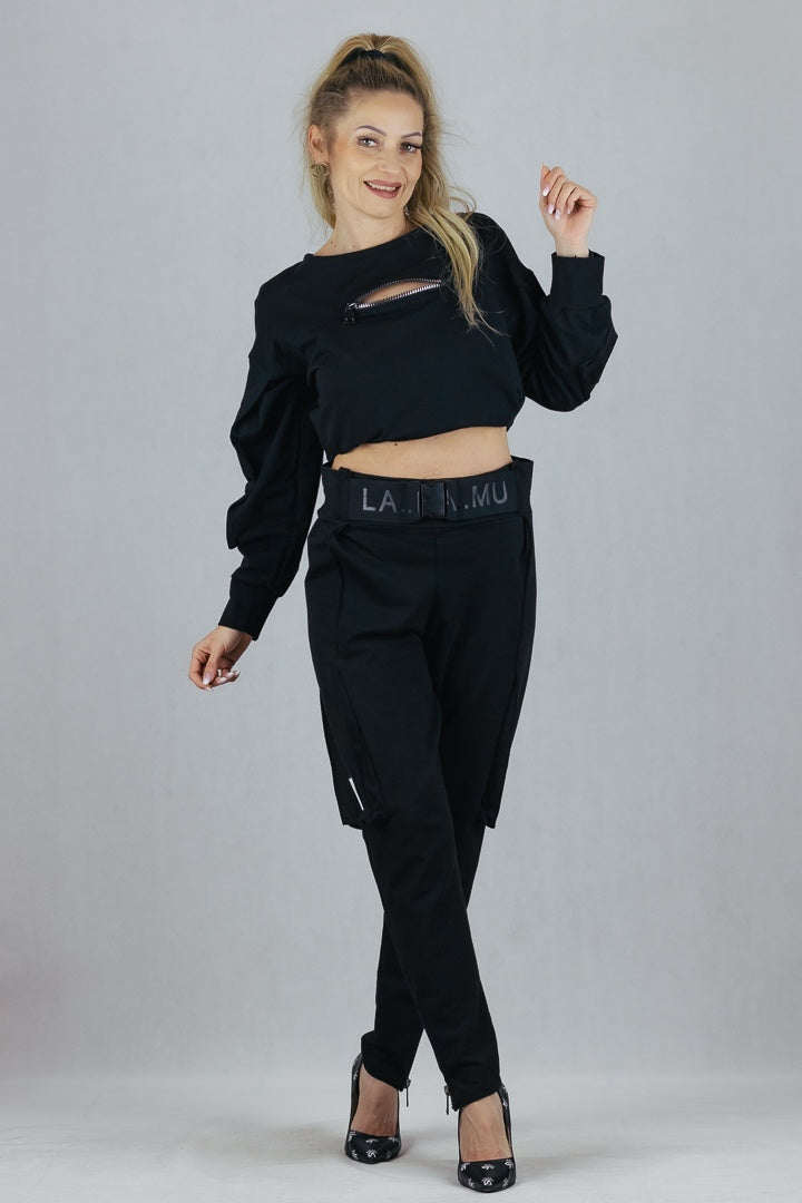 Bawełniane spodnie La Mu z logowana gumą i klamrą.