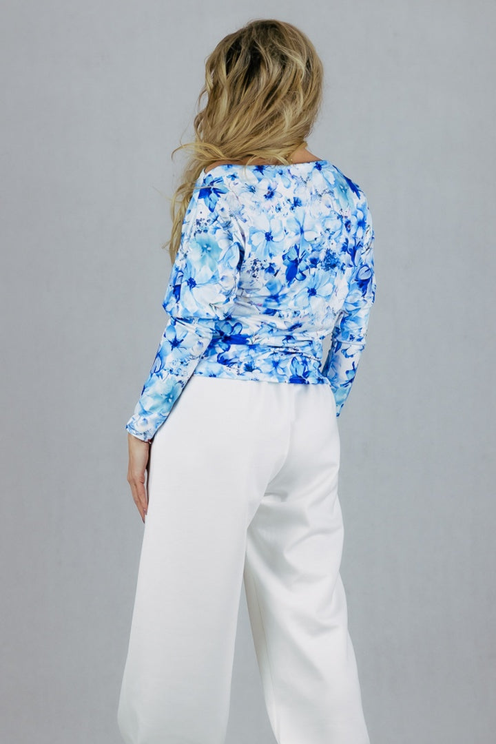 Bluzka w kwiaty 3D z dekoltem "łódka"