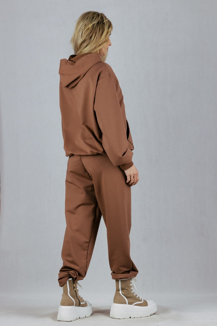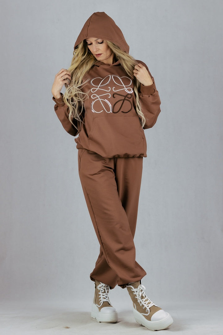 Bawełniany dres z kapturem z dużą haftowaną aplikacją