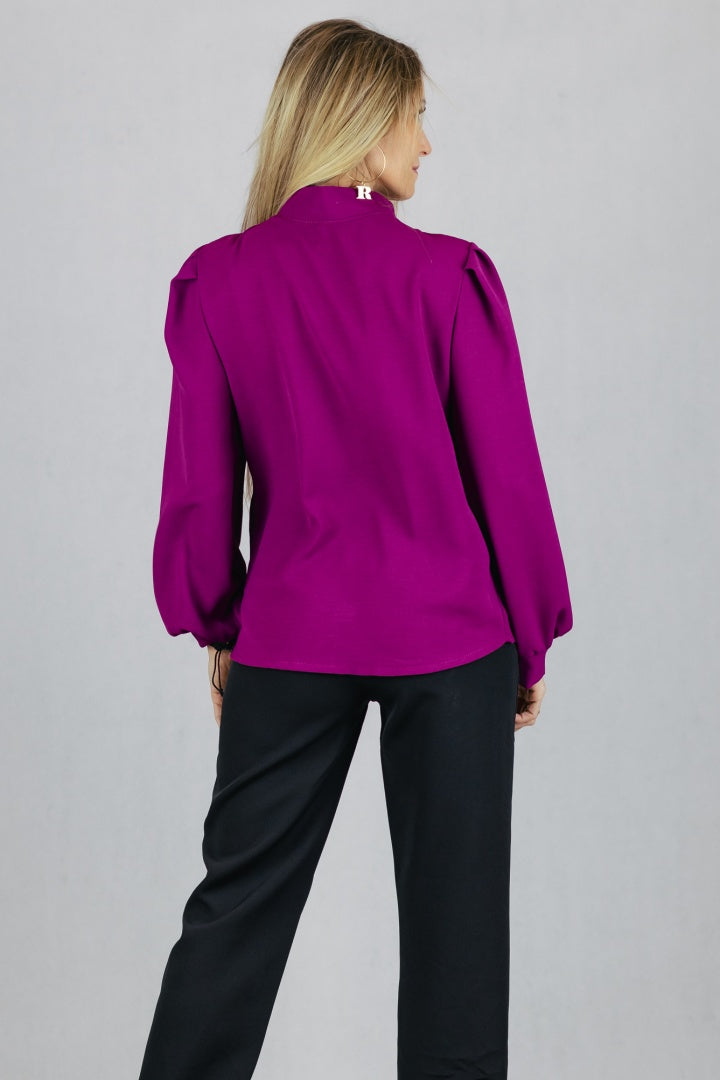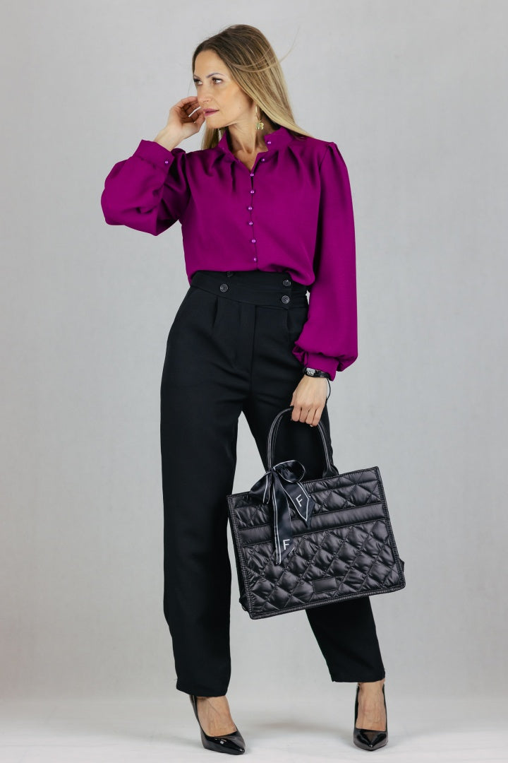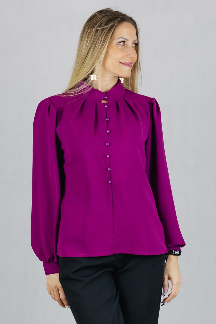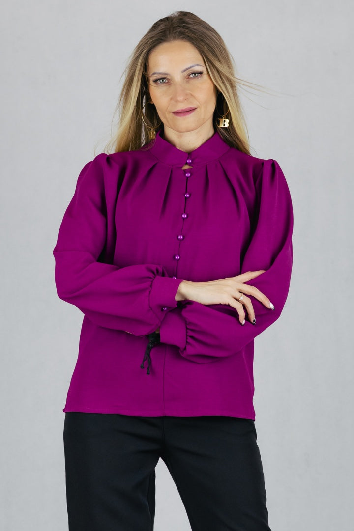 Bluzka ze stójką zapinana na guziki z pętelkami.