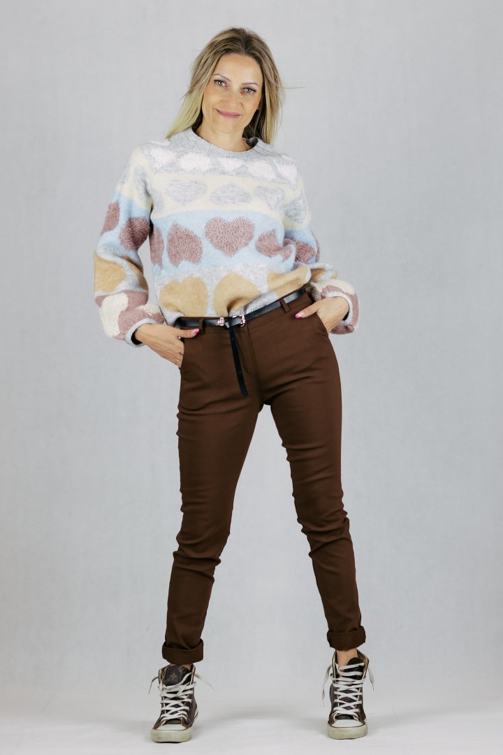 Eleganckie spodnie cygaretki z paskiem.