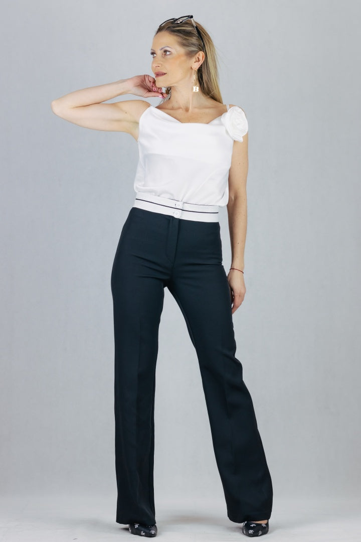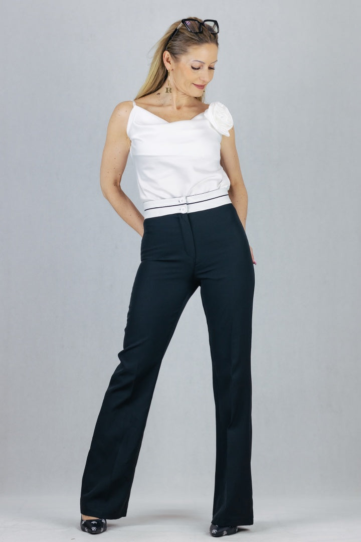 Eleganckie spodnie z rozszerzaną nogawką z kantem.