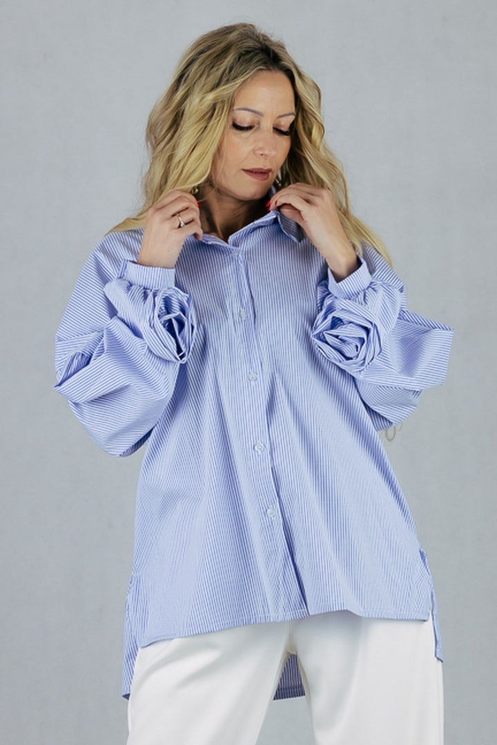 Klasyczna koszula w paski, z różą 3D przy rękawie