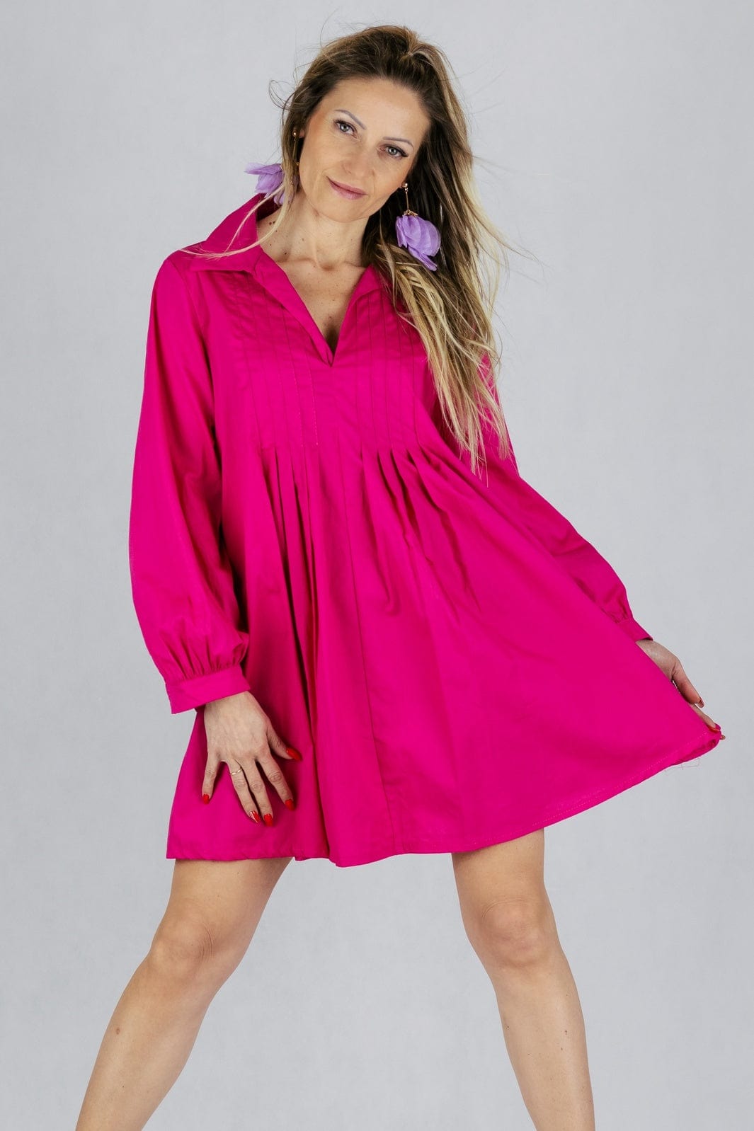 Koszulowa sukienka - fuksja