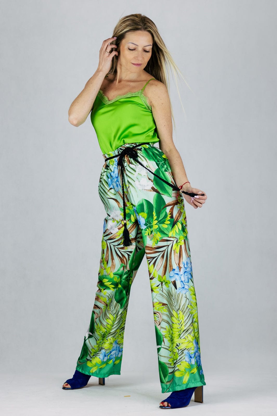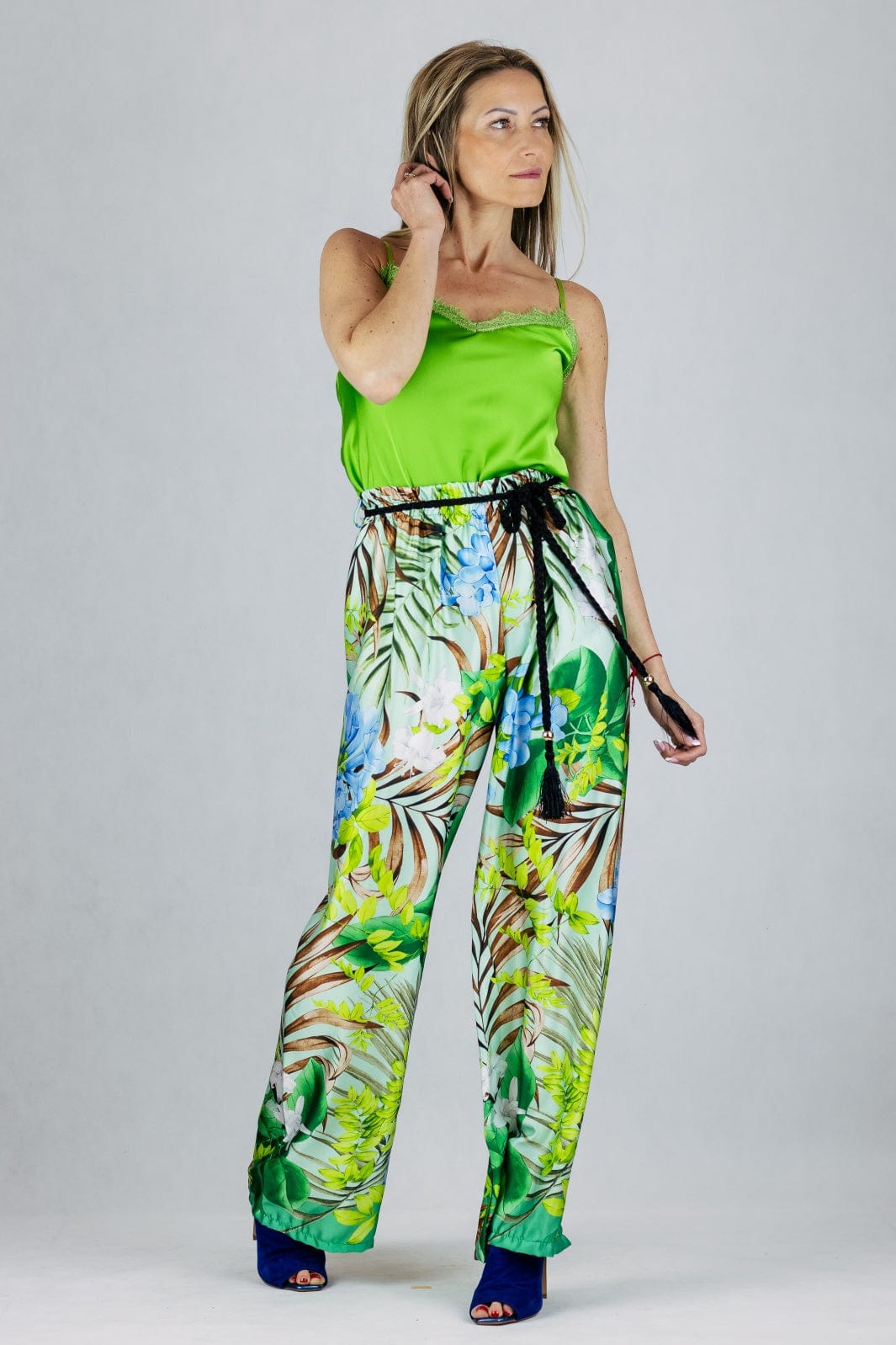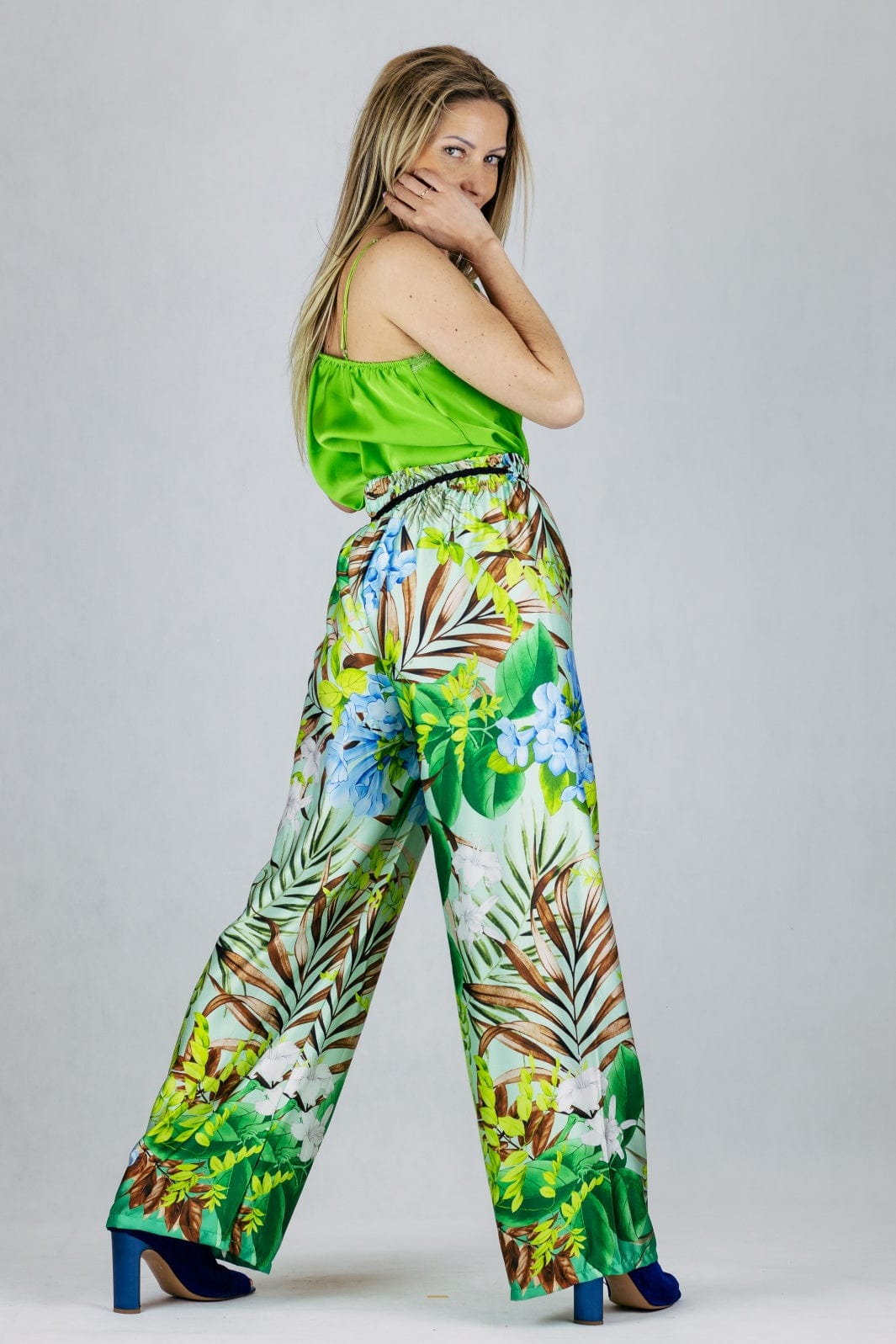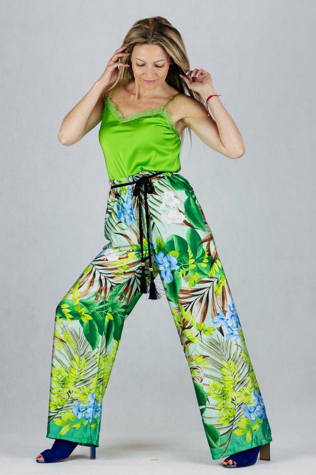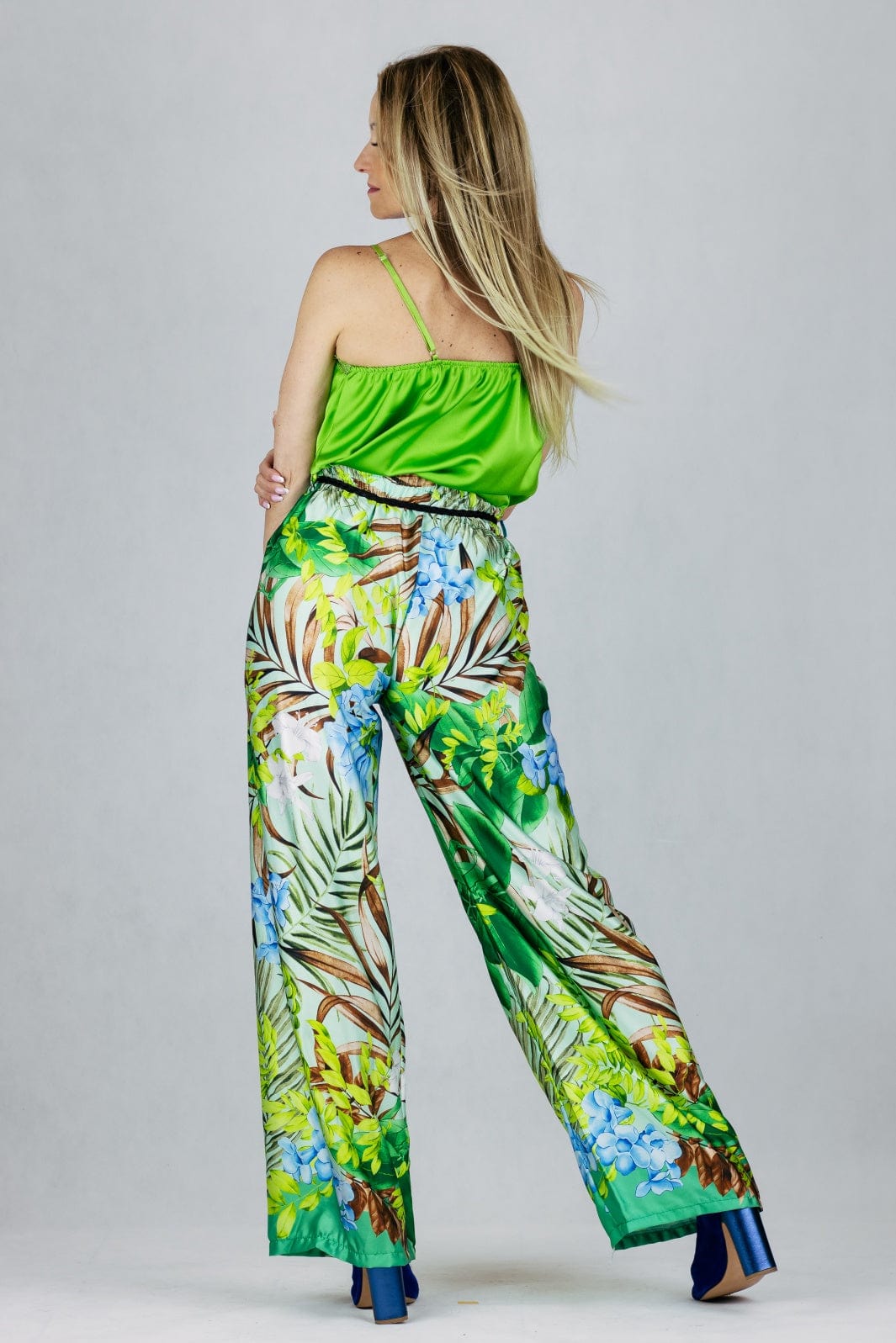Kwieciste spodnie z szeroką nogawką - zielone UNIWERSALNY Unique Spodnie Inspiracja Jelenia Gora