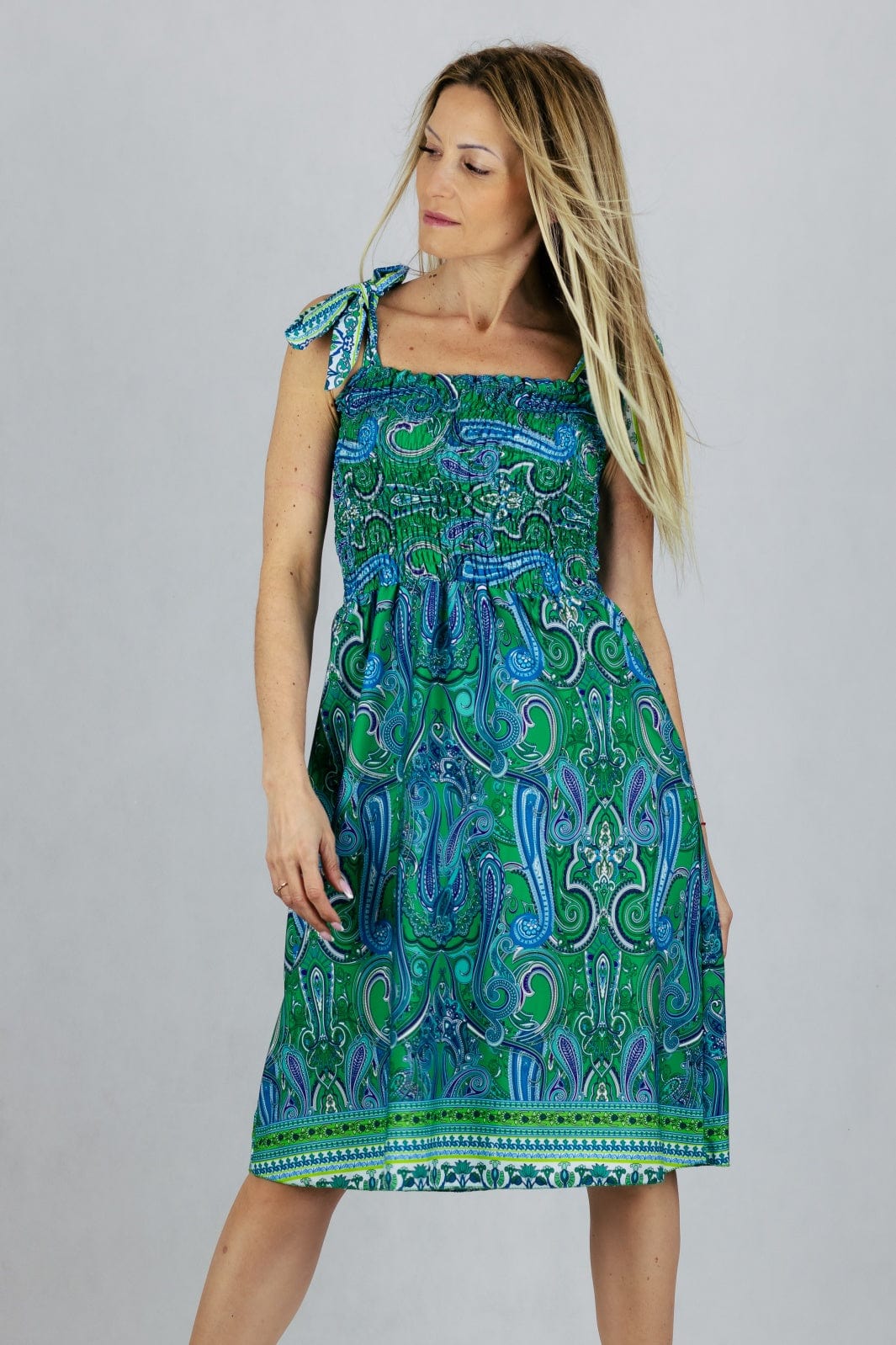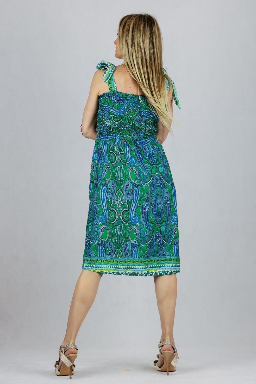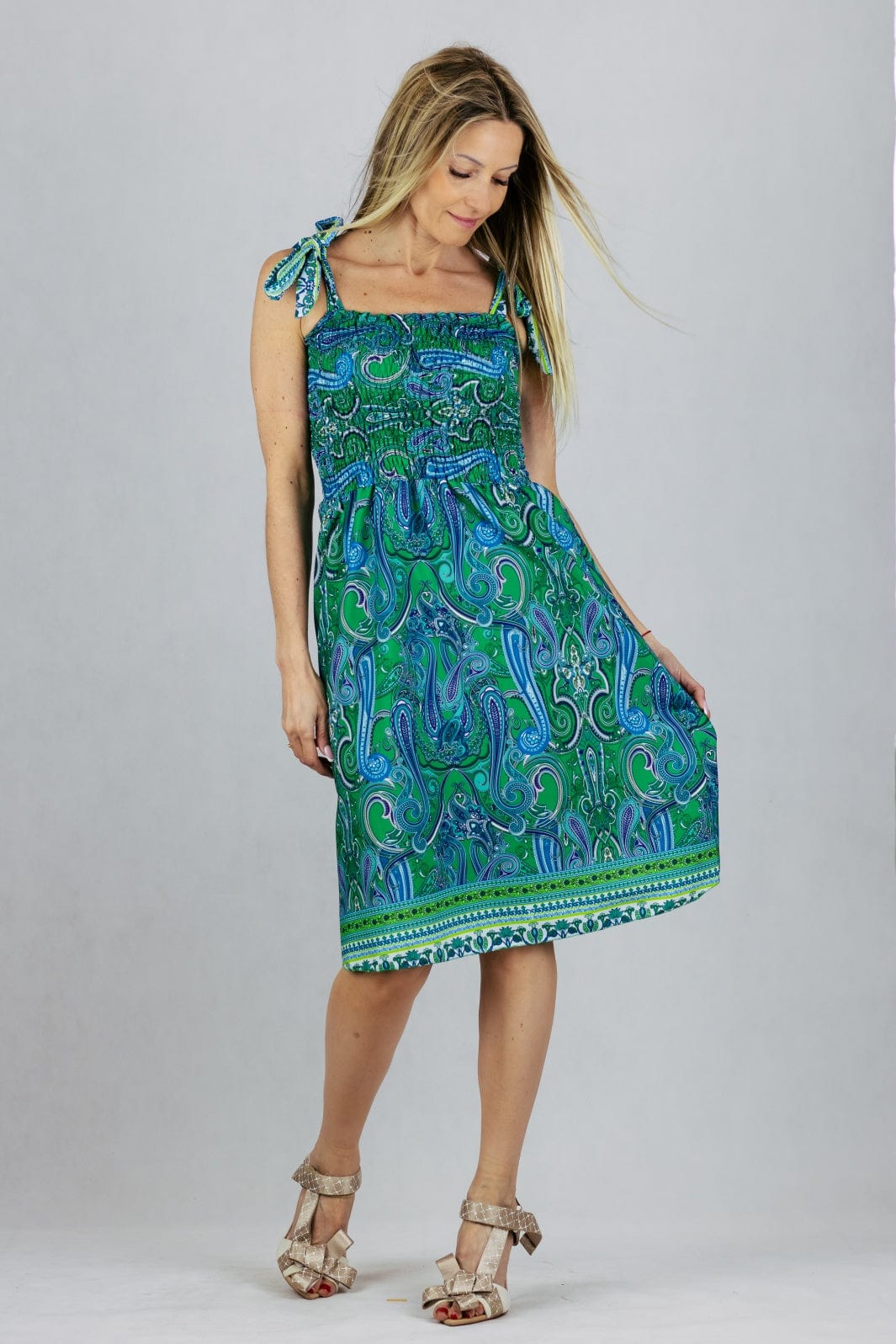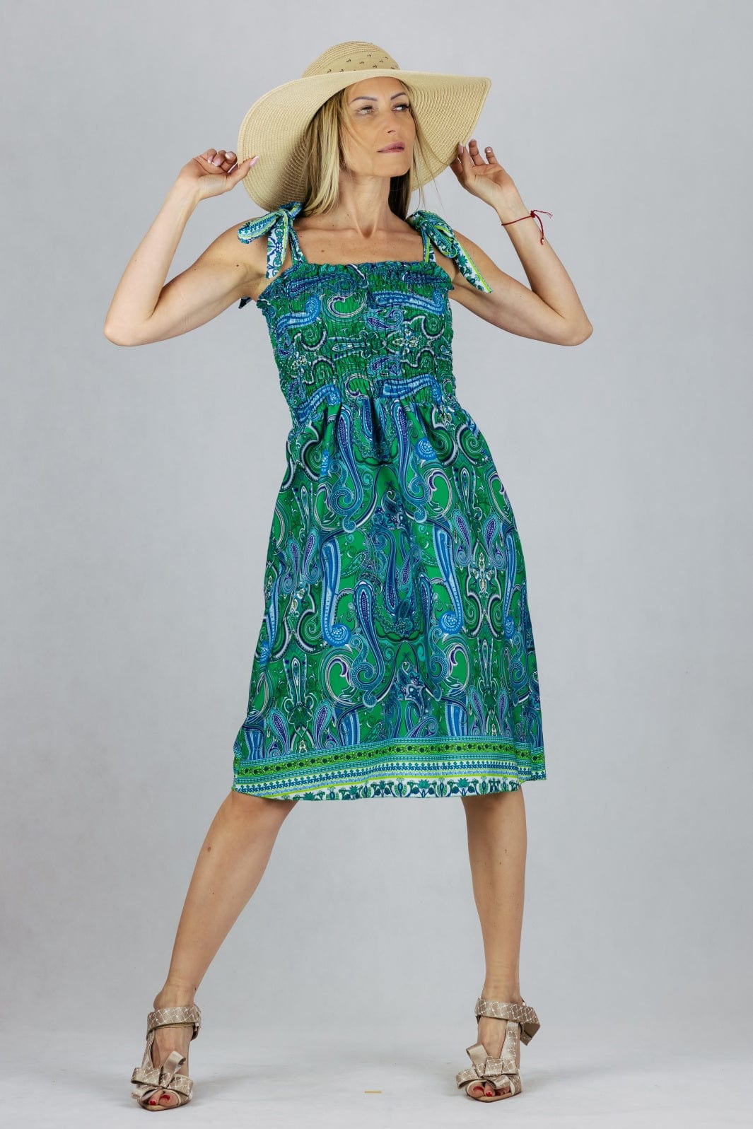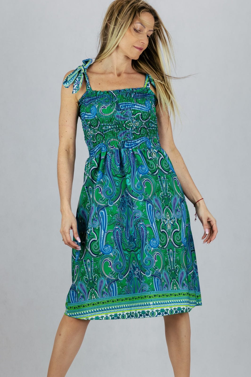 Sukienka letnia z wiązanymi szelkami.
