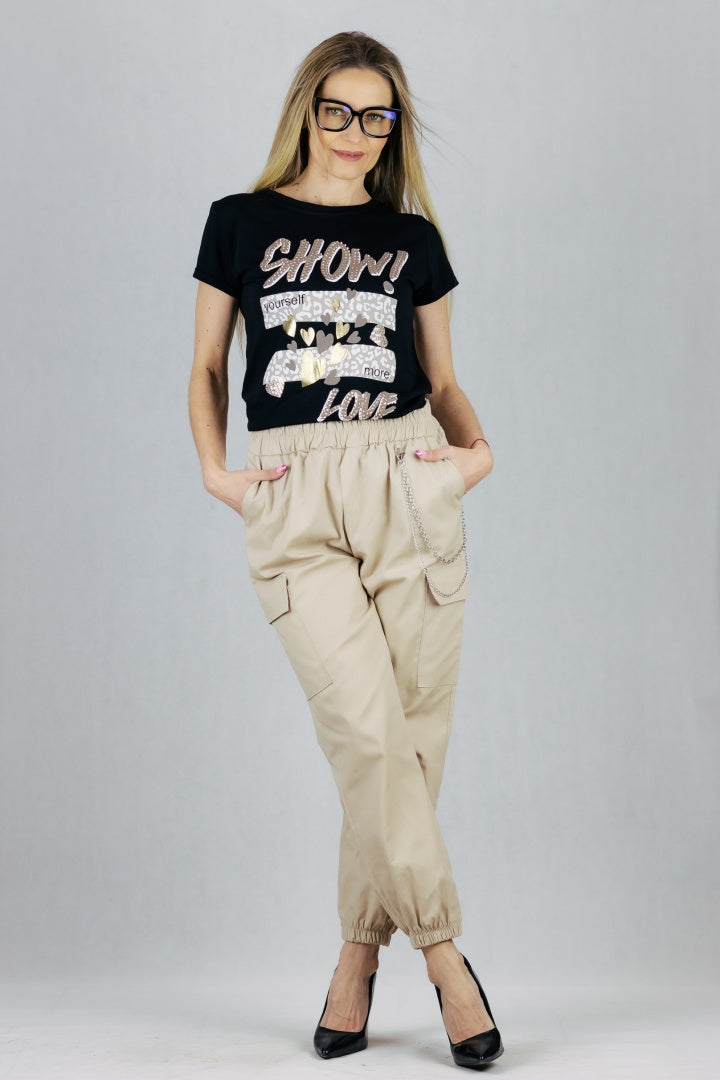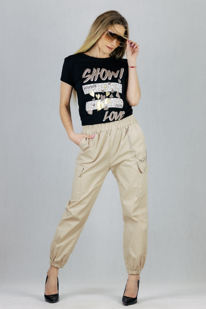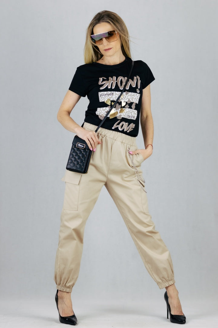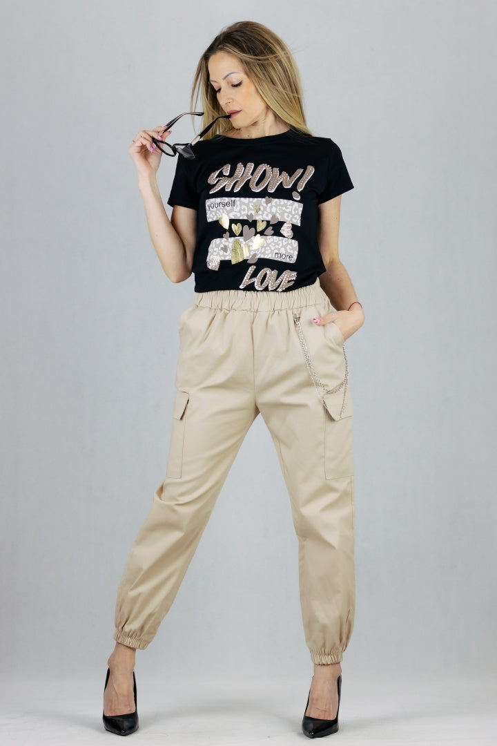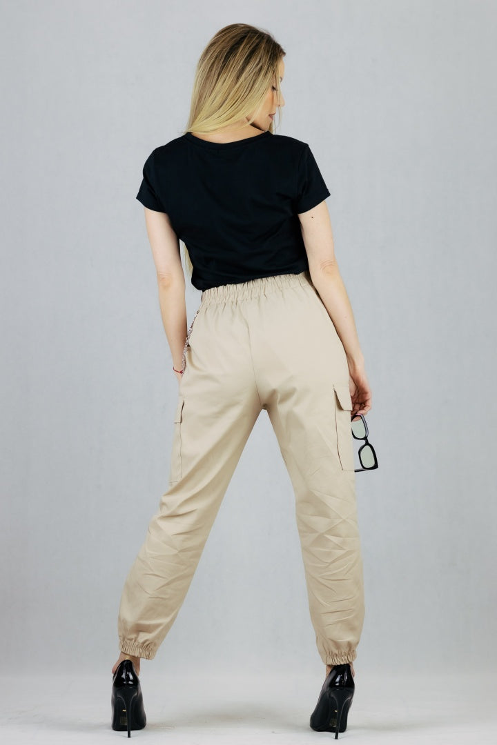 Spodnie bojówki z łańcuszkiem - beżowe