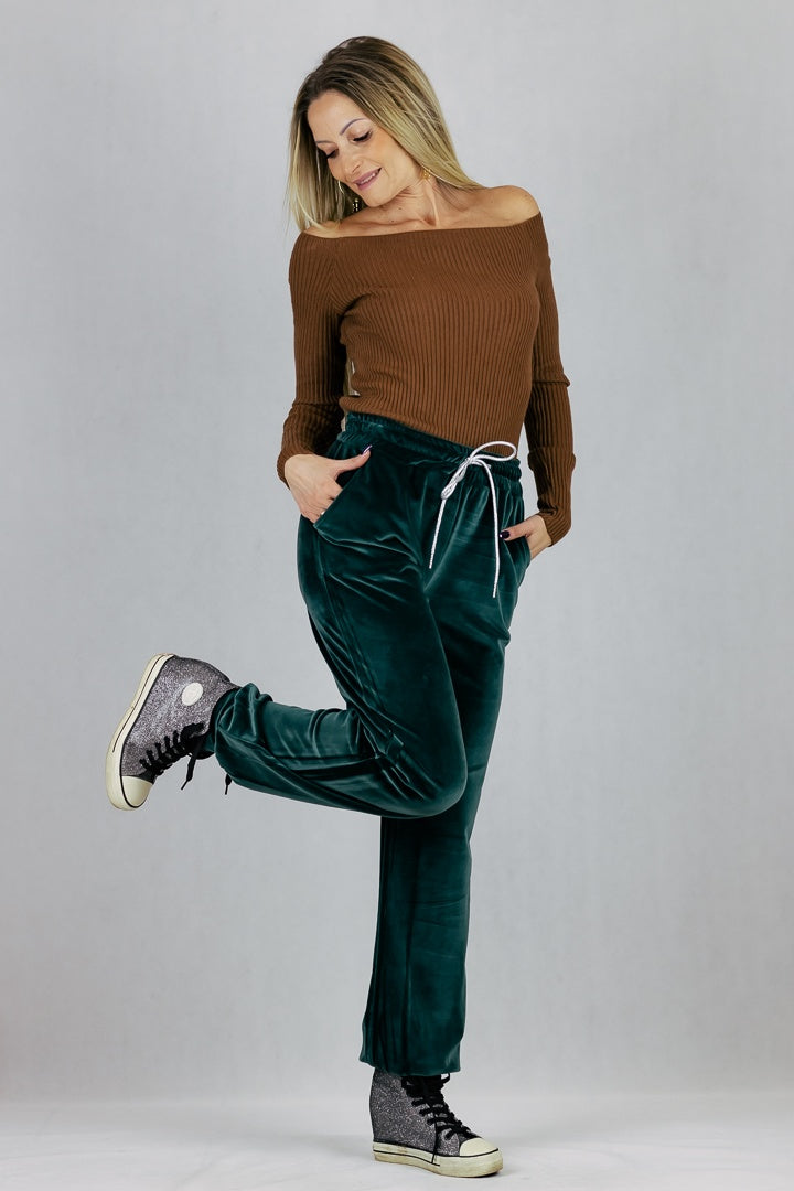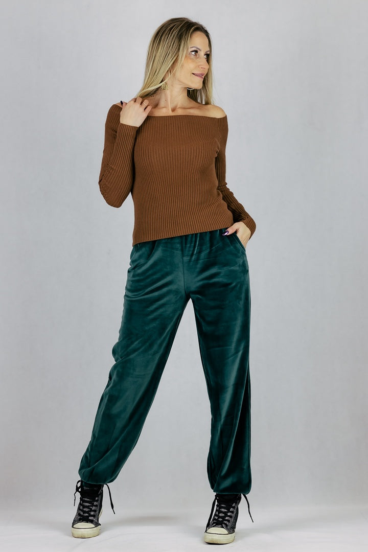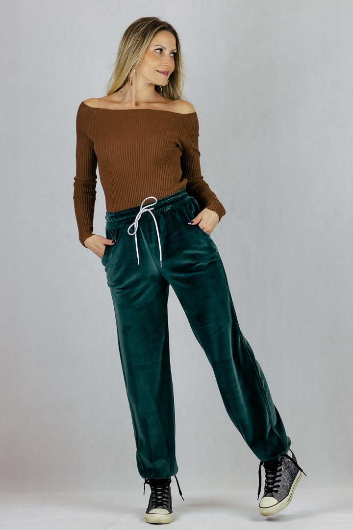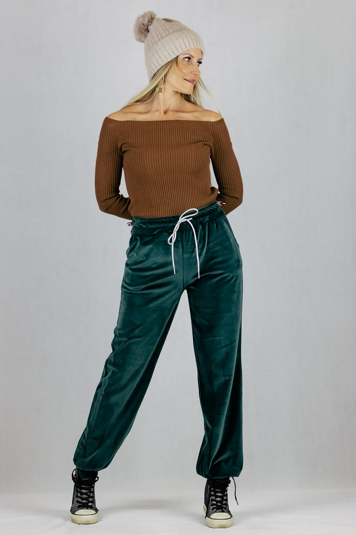 Spodnie z mięsistego, miłego w dotyku weluru.