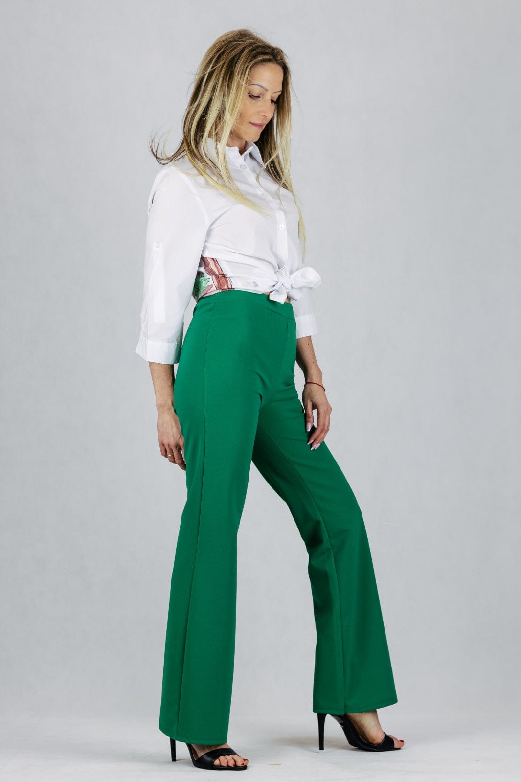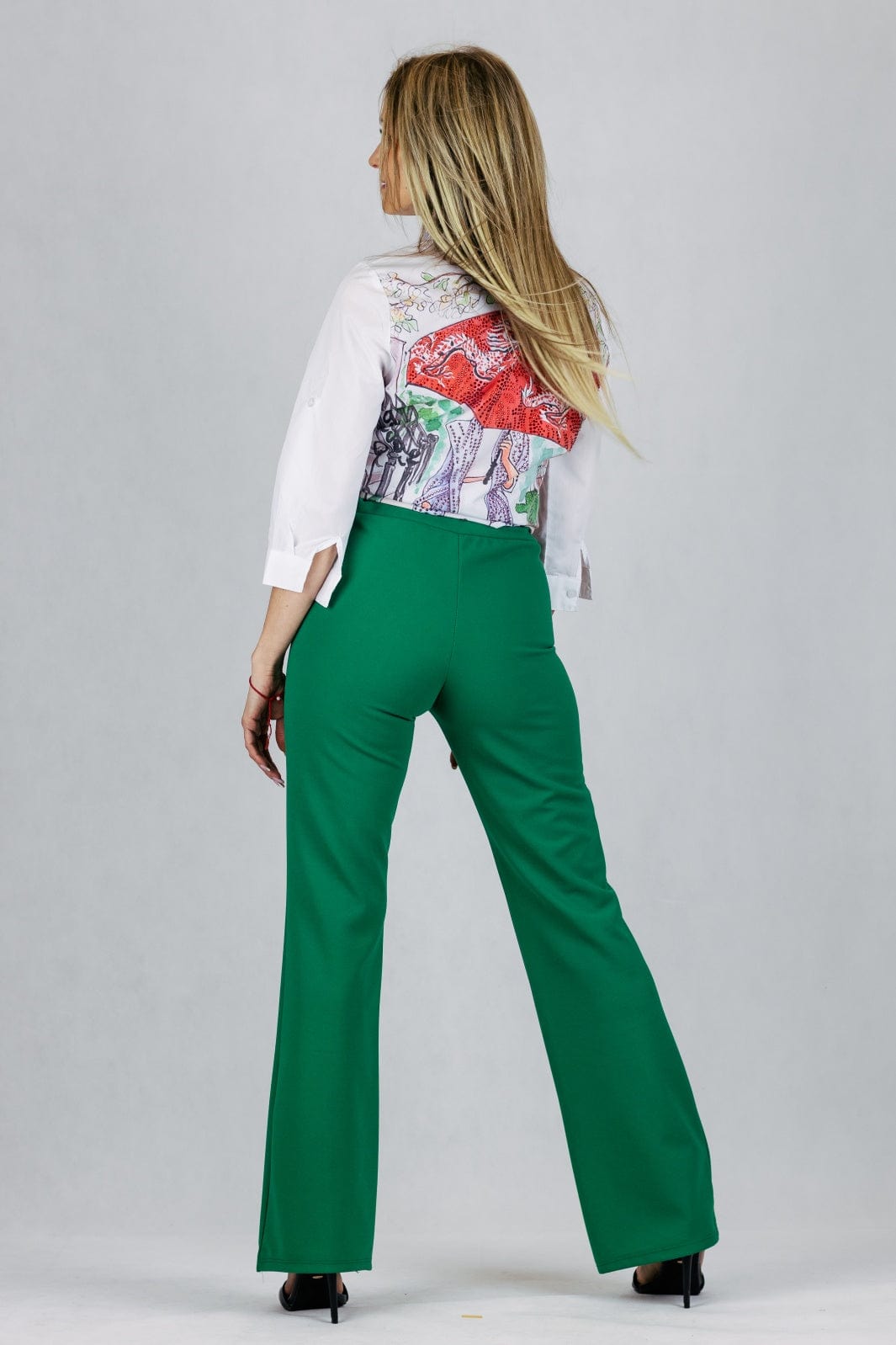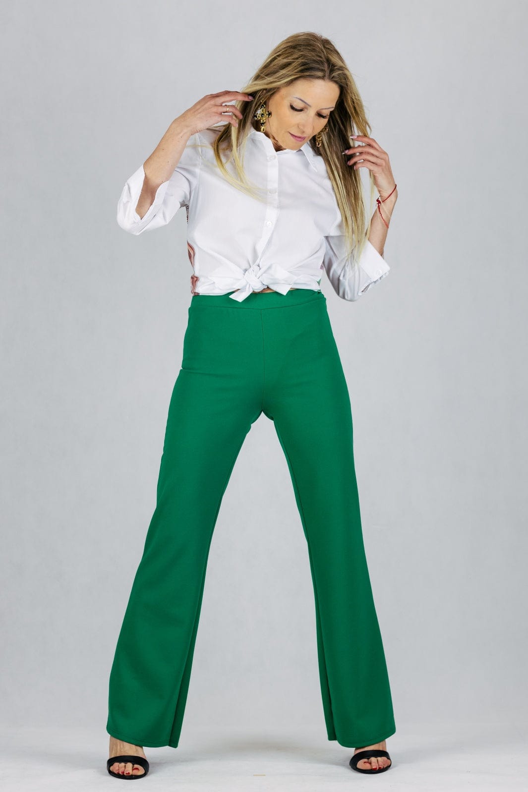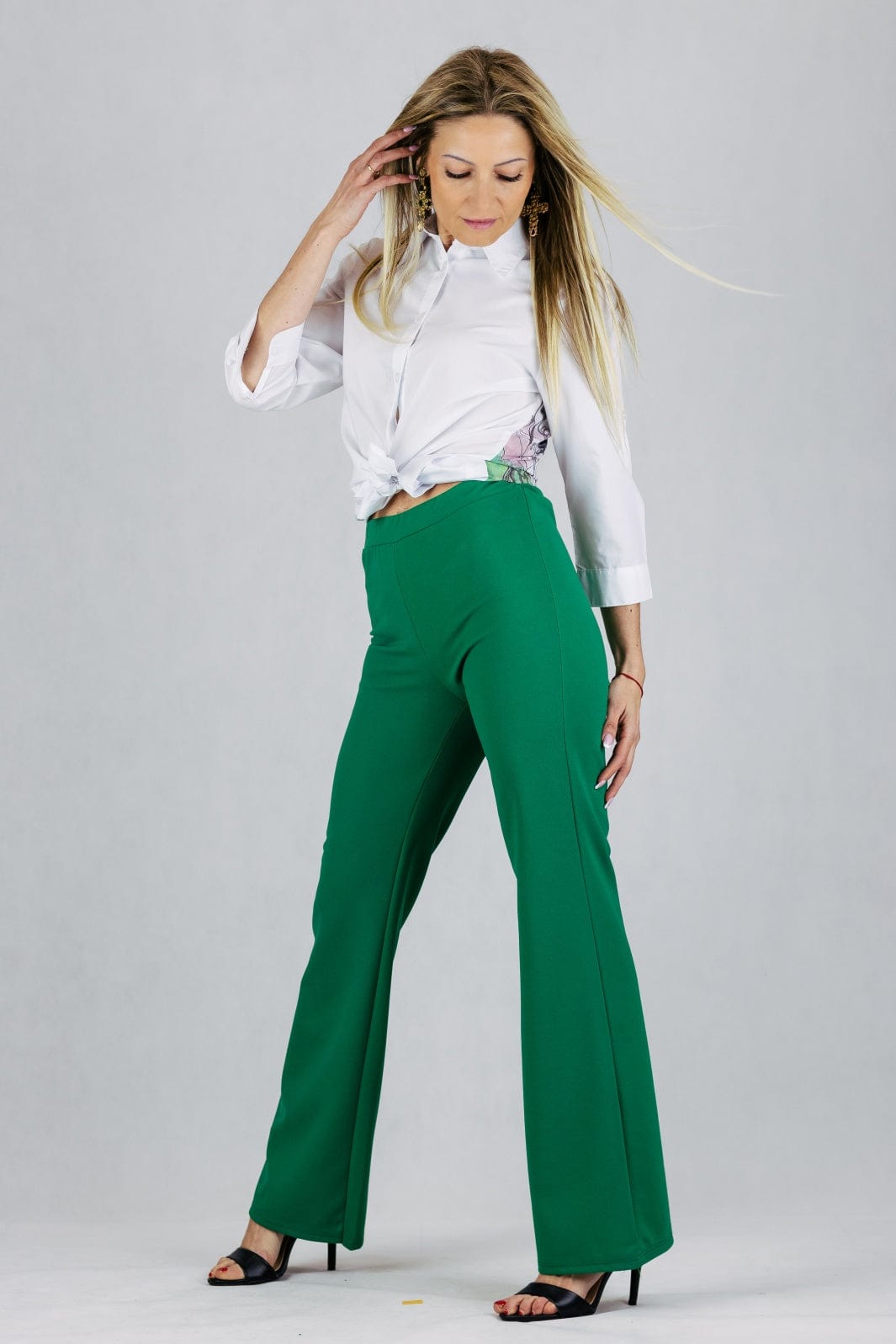 Spodnie dzianinowe z szeroką nogawką - zielone UNIWERSALNY Made in Italy Spodnie Inspiracja Jelenia Gora
