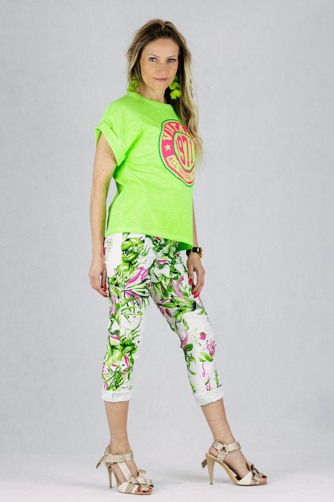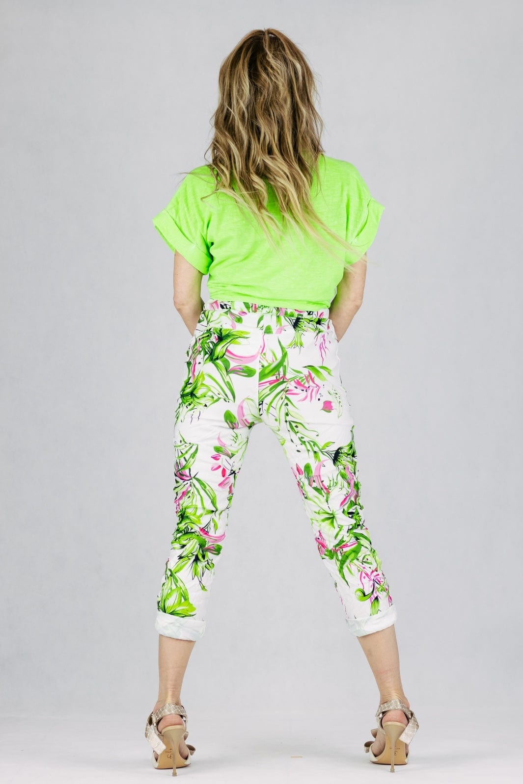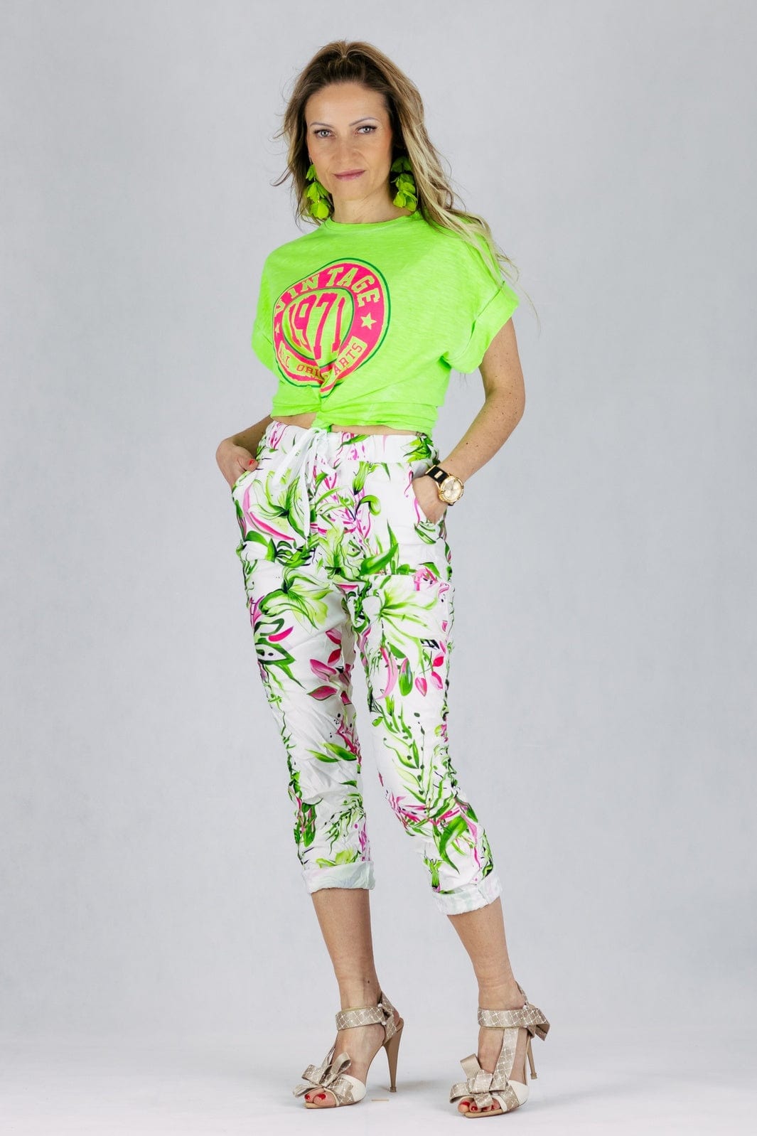 Spodnie gnieciuchy w kwiaty - białe UNIWERSALNY Made in Italy Spodnie Inspiracja Jelenia Gora