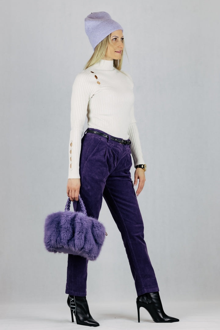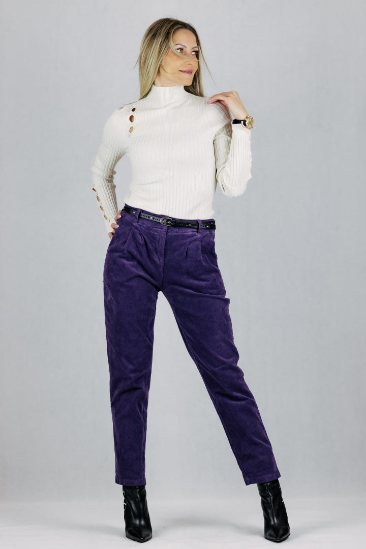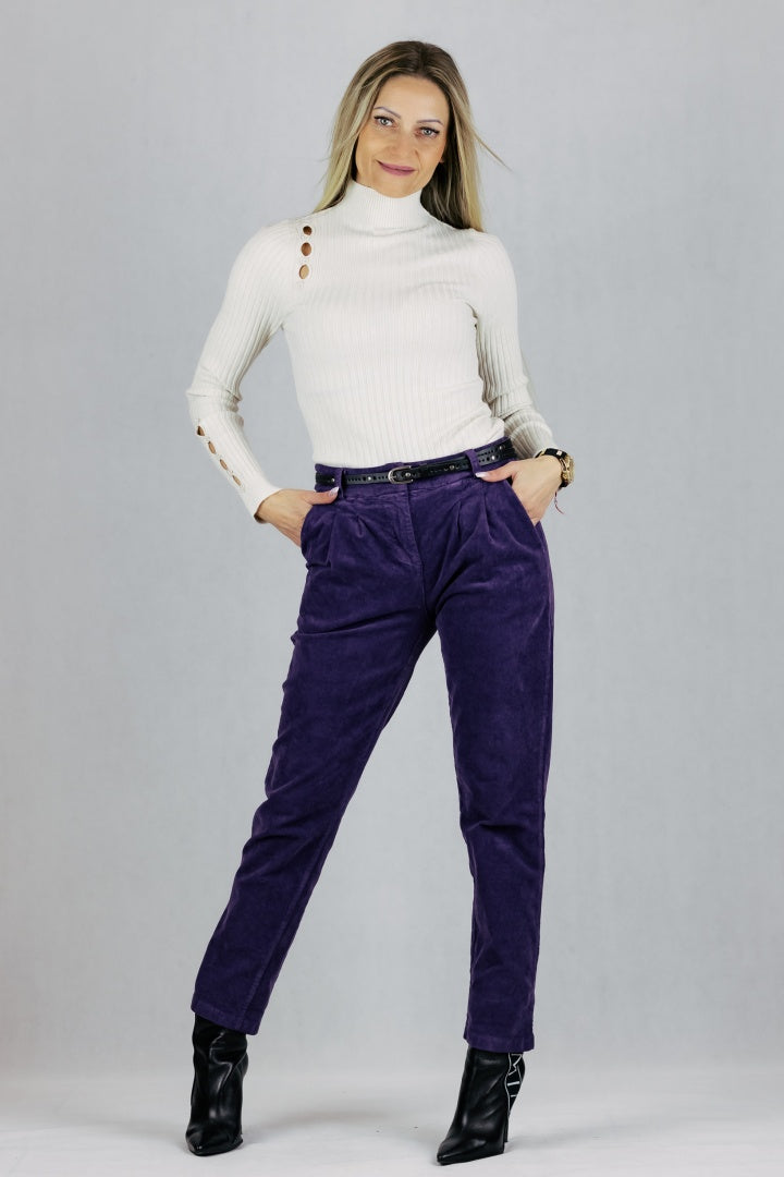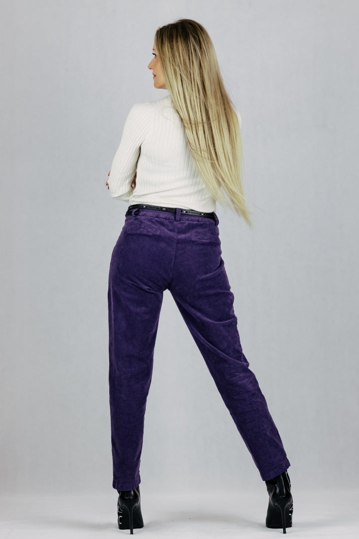 Spodnie ze sztruksu z paskiem.