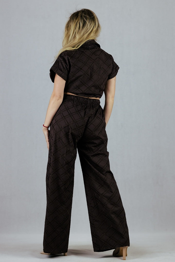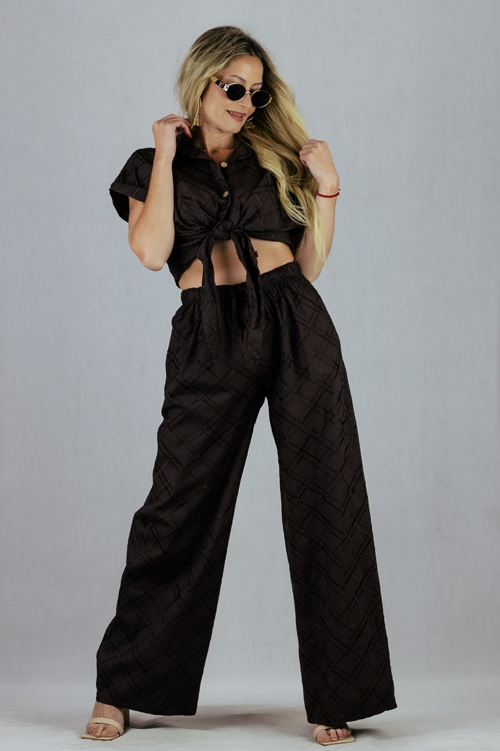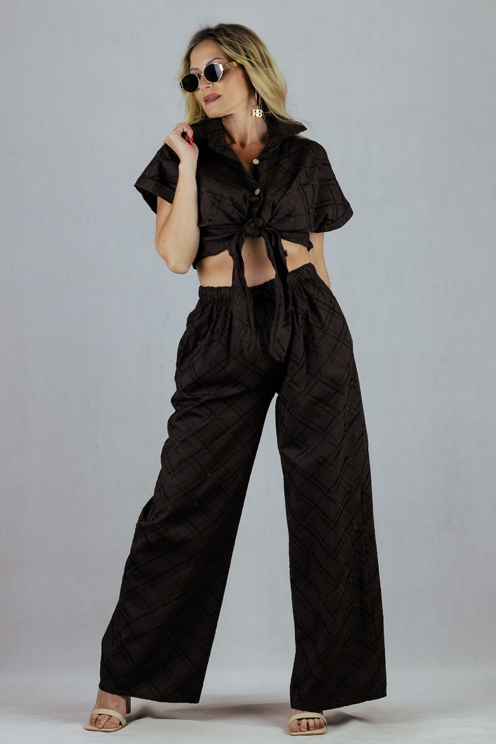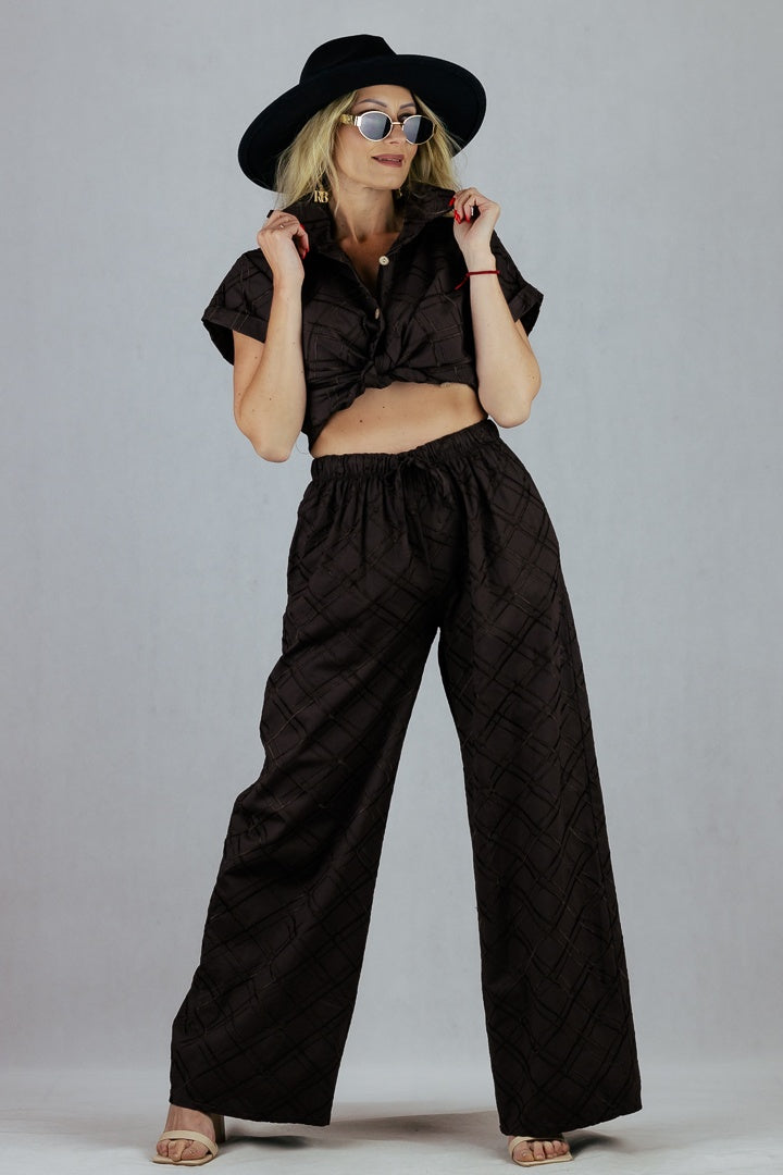 Spodnie w kratę 3D - brązowe