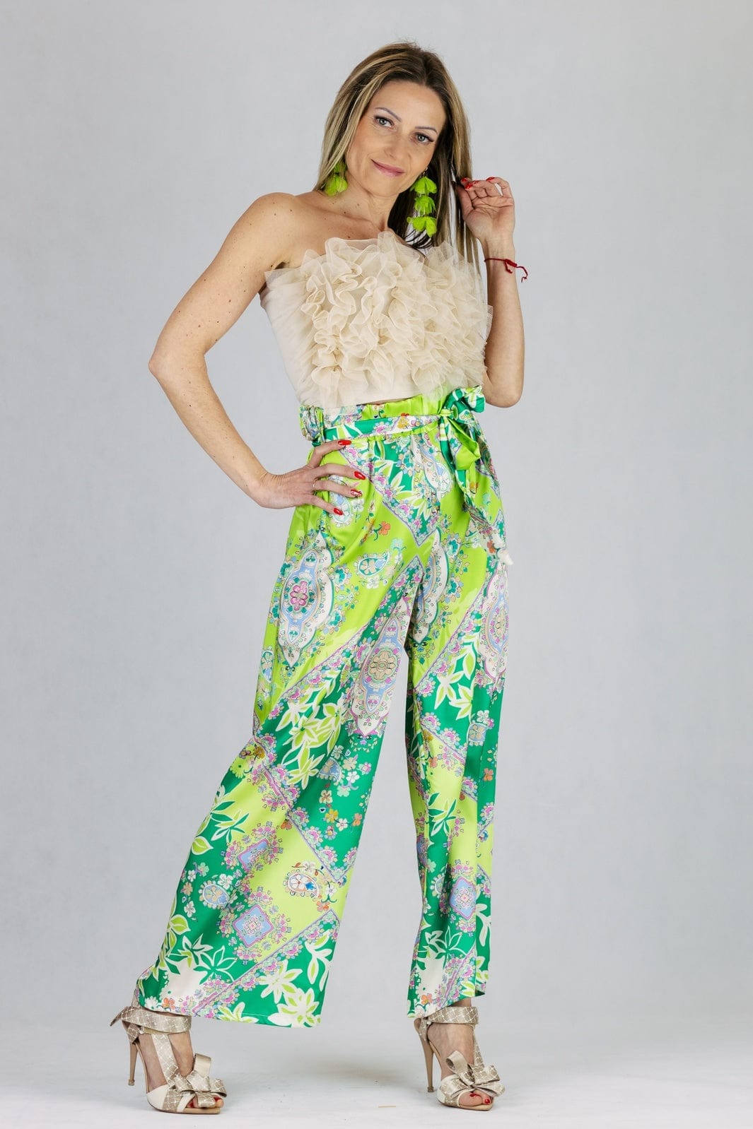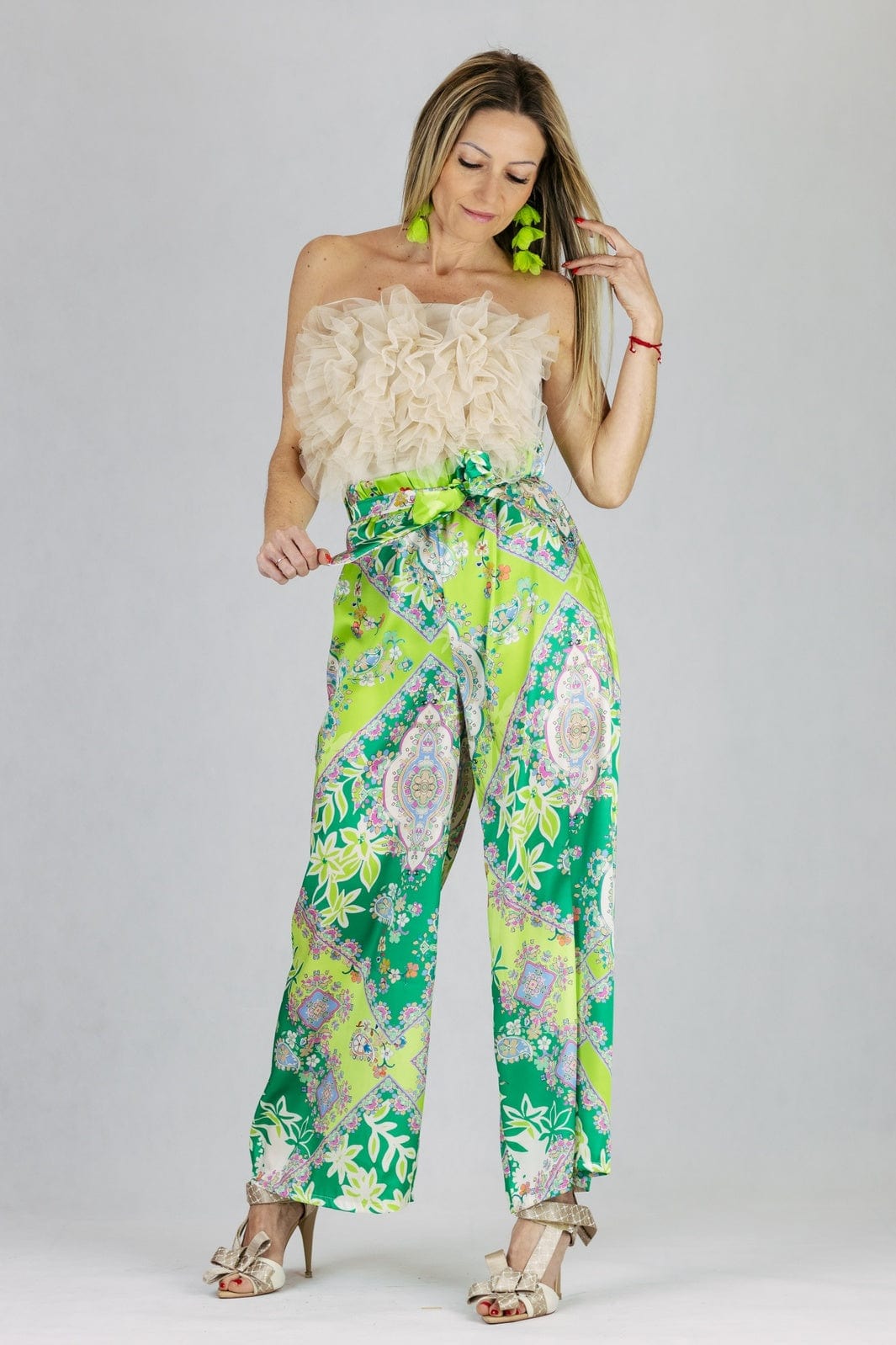 Spodnie z szeroką nogawką, w princie kwiatowym.