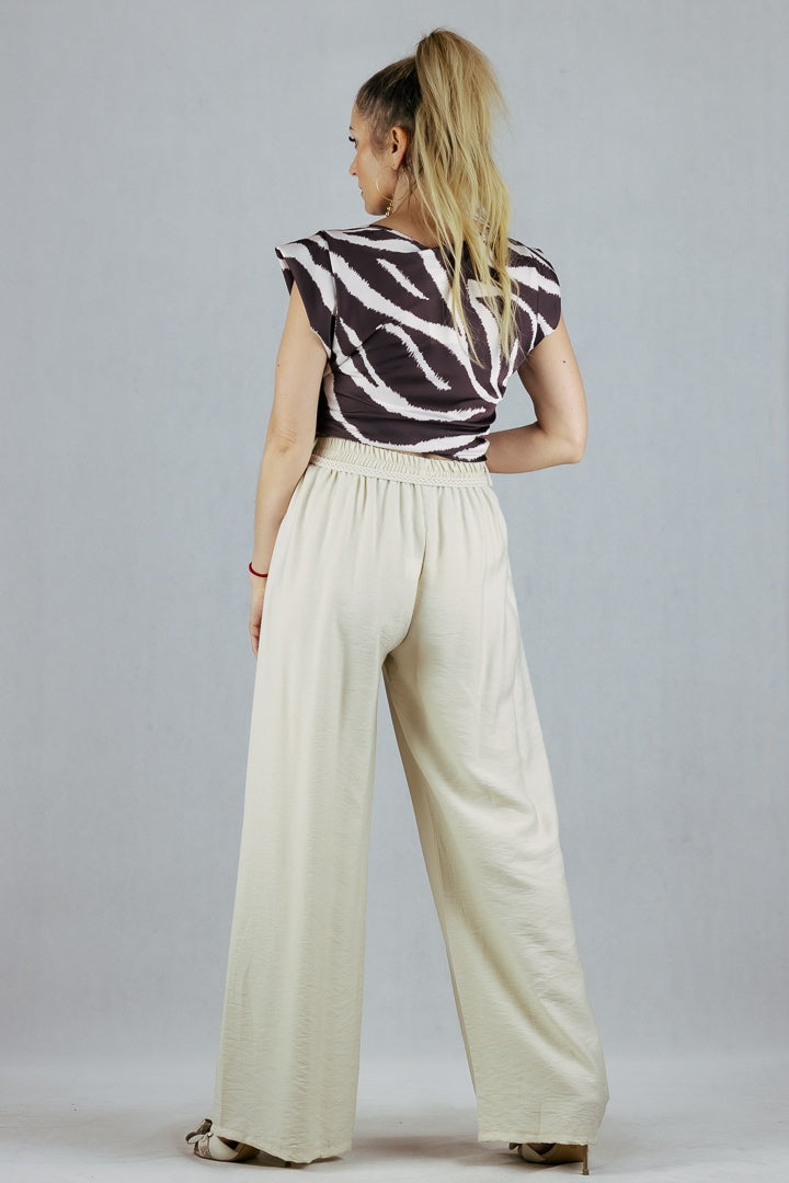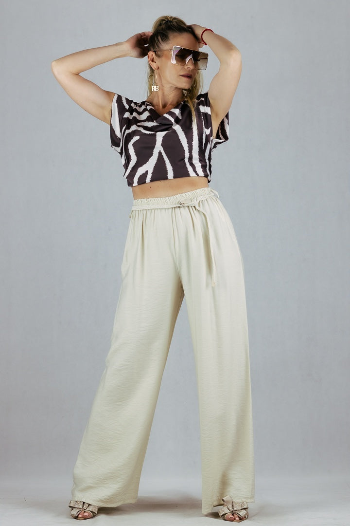 Spodnie z szeroką, prostą nogawką, z paskiem w komplecie