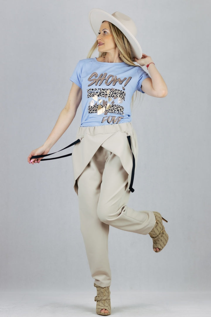 Spodnie z szelkami - beżowe UNIWERSALNY Made in Italy Spodnie Inspiracja Jelenia Gora