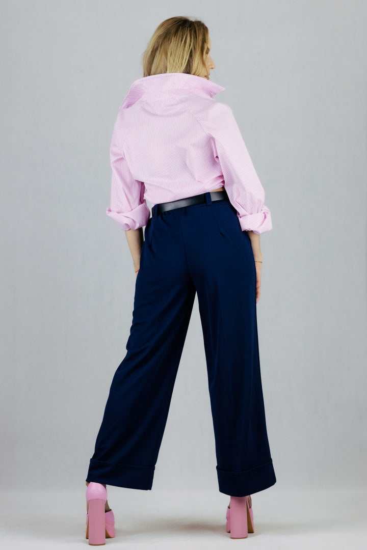Spodnie z szeroką nogawką i mankietem - granatowe