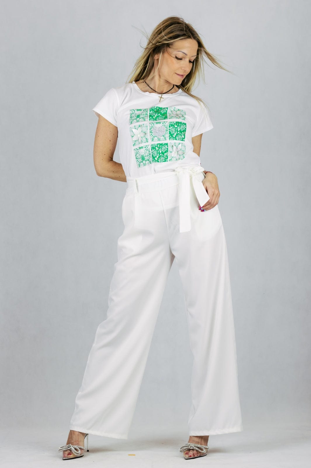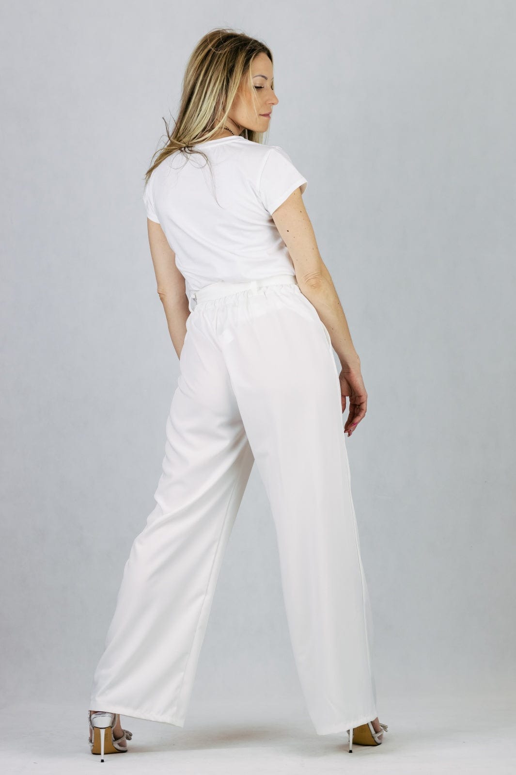 Spodnie z szeroką nogawką i wiązanym paskiem - białe UNIWERSALNY Made in Italy Spodnie Inspiracja Jelenia Gora
