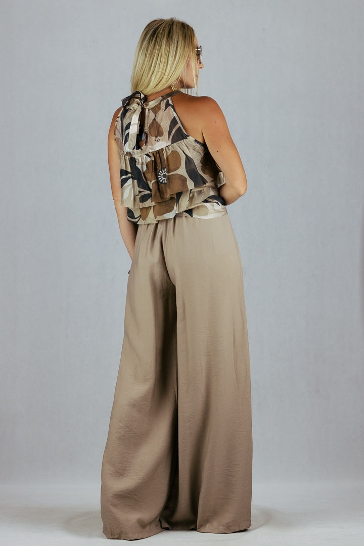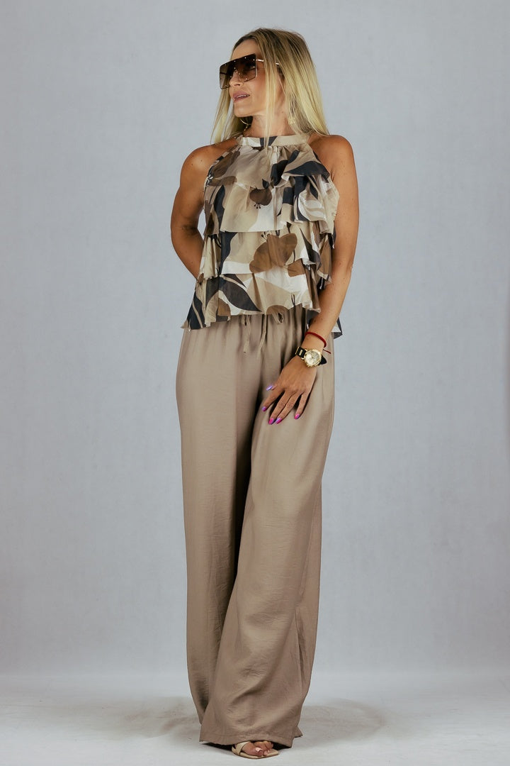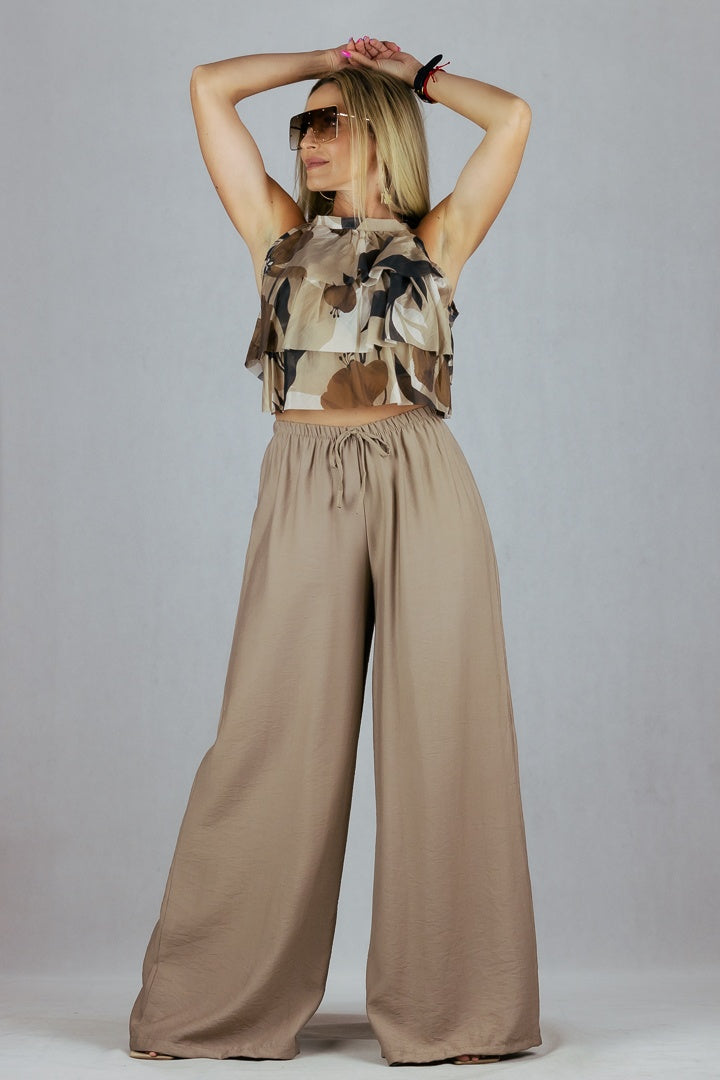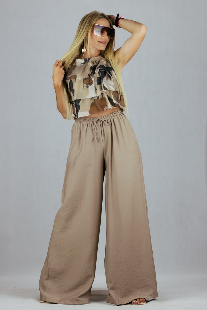 Zwiewne spodnie z szeroką nogawką uszyte z wiskozy