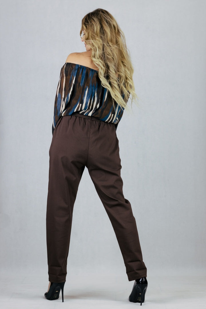 Spodnie z wyższym stanem - brązowe