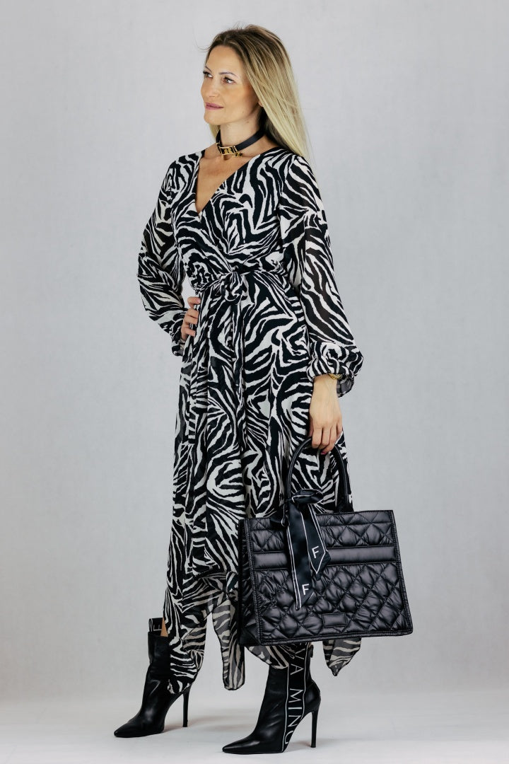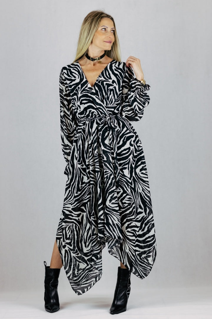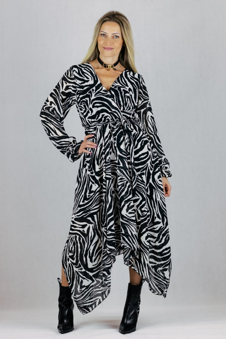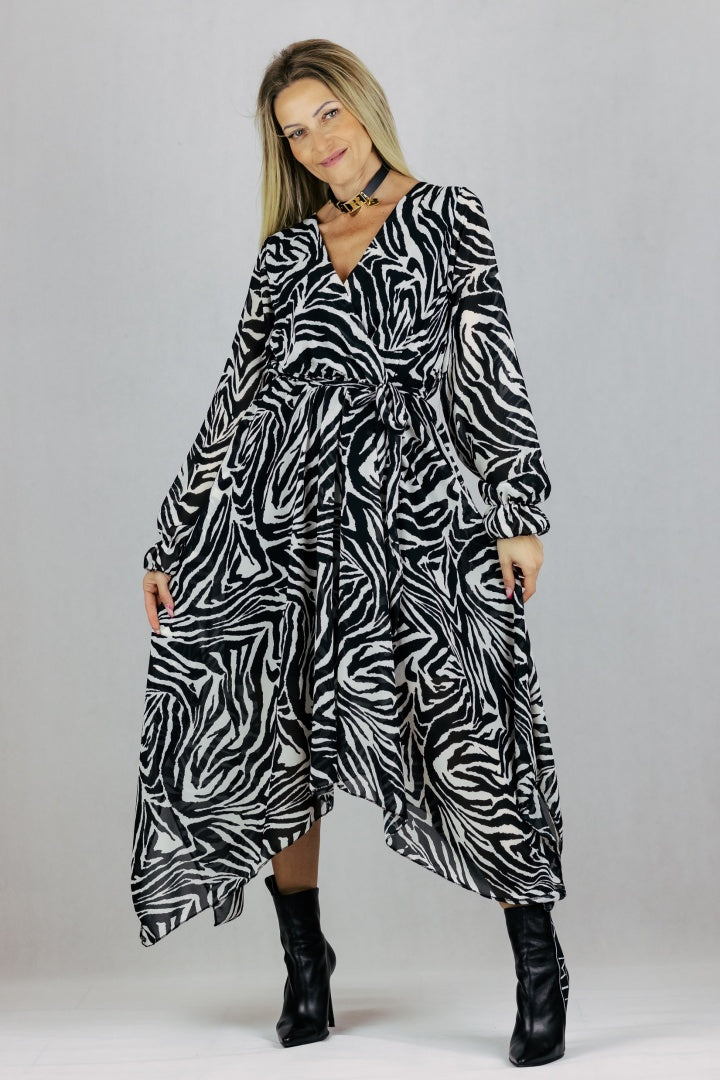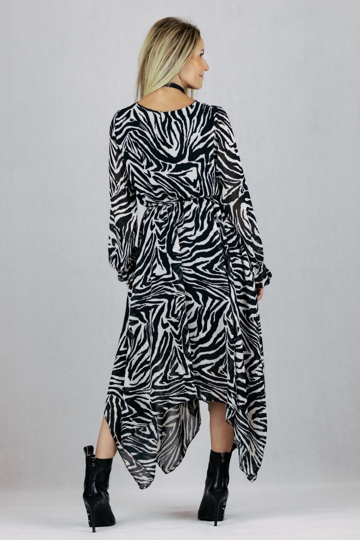 Sukienka asymetryczna maxi - zebra
