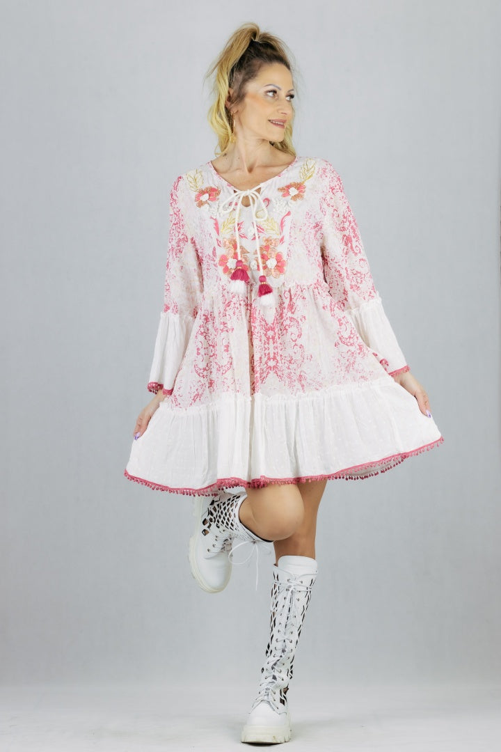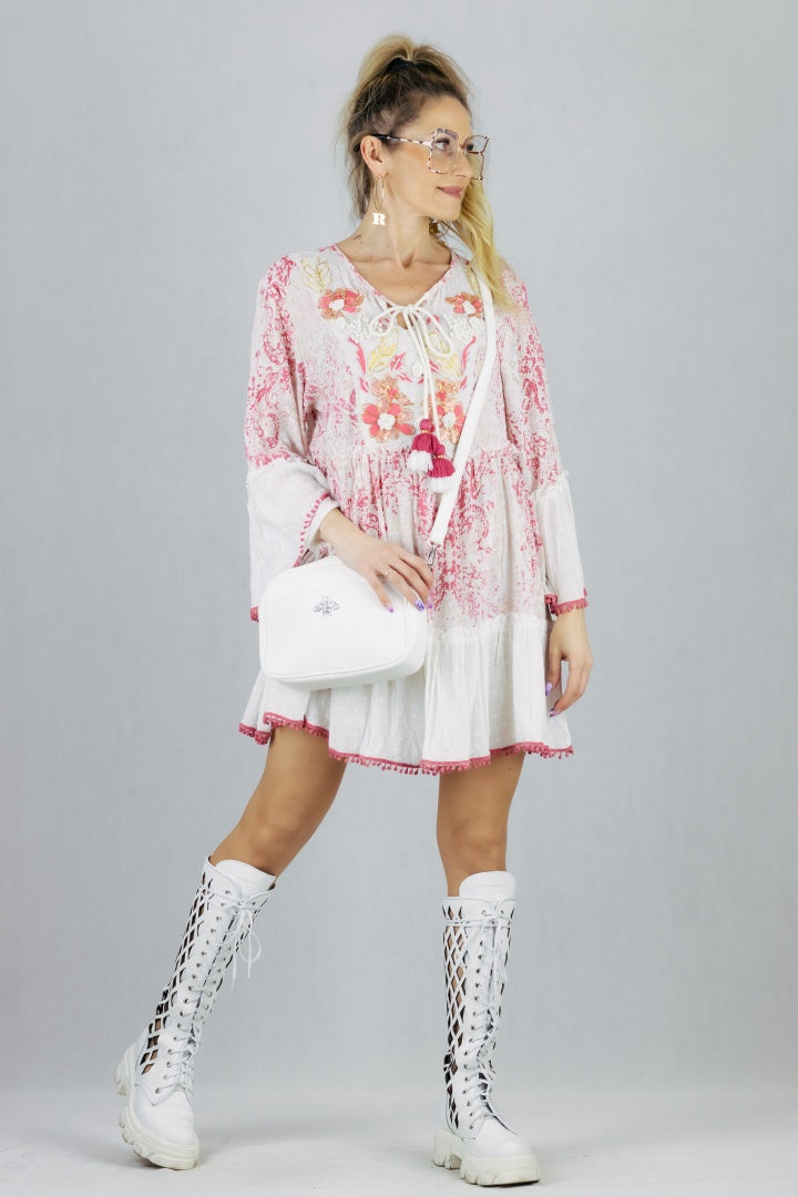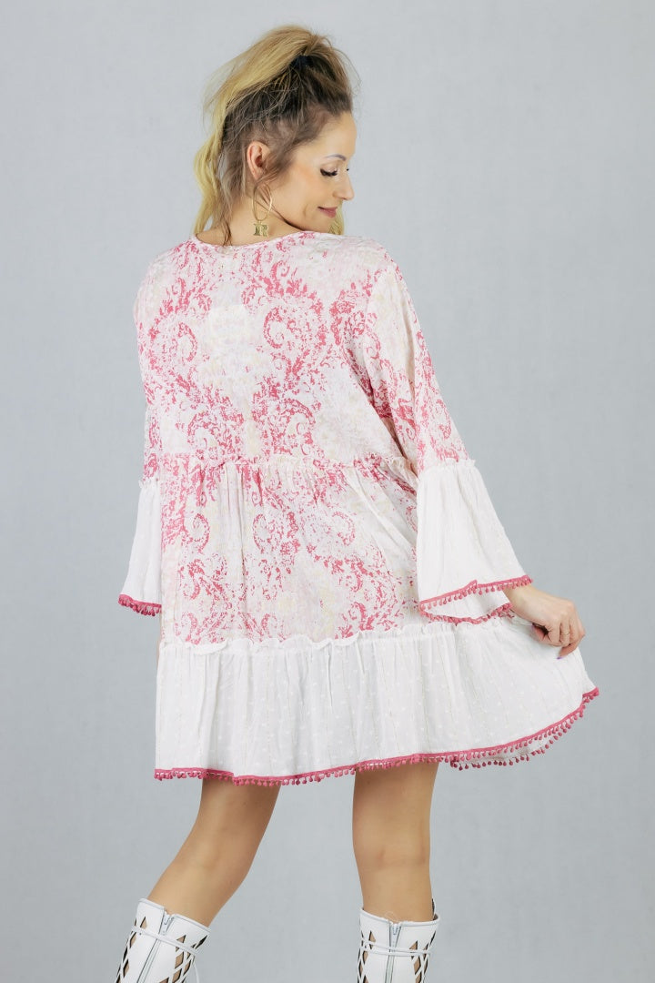 Sukienka boho o rozkloszowanym kroju uszyta z wiskozy.