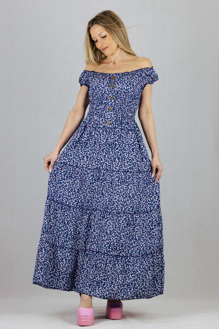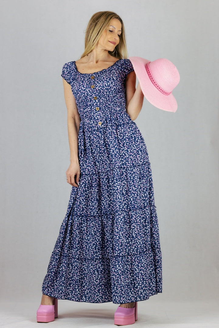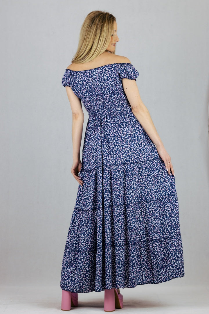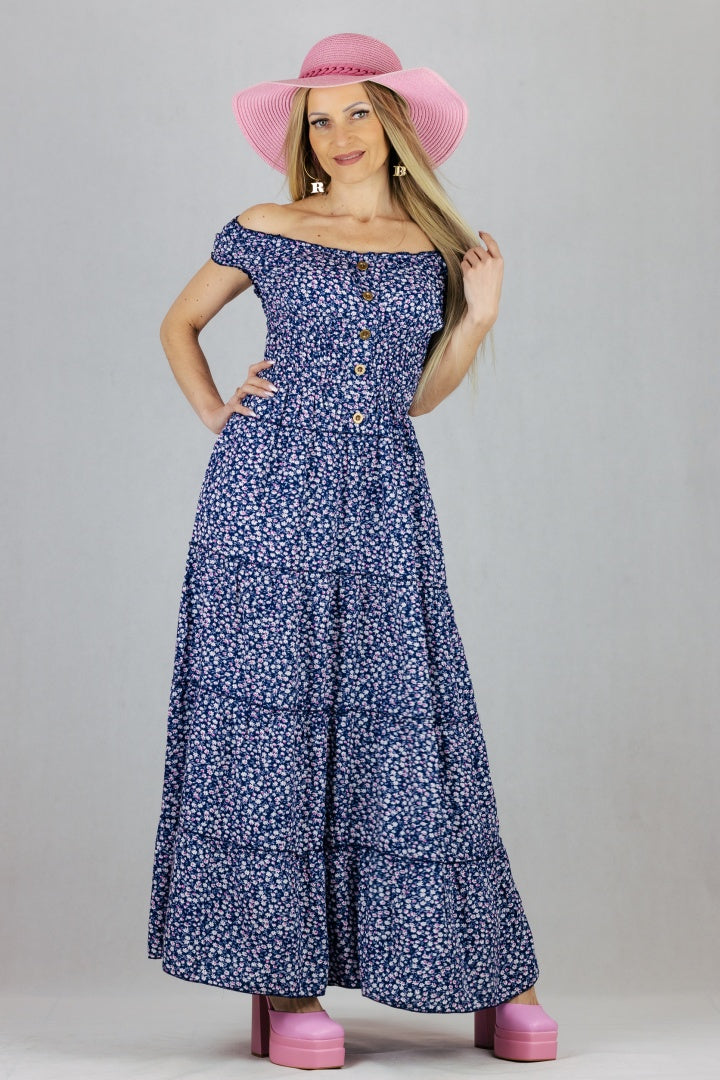 Sukienka hiszpanka w kwiaty Miss Sara Fashion - granatowa