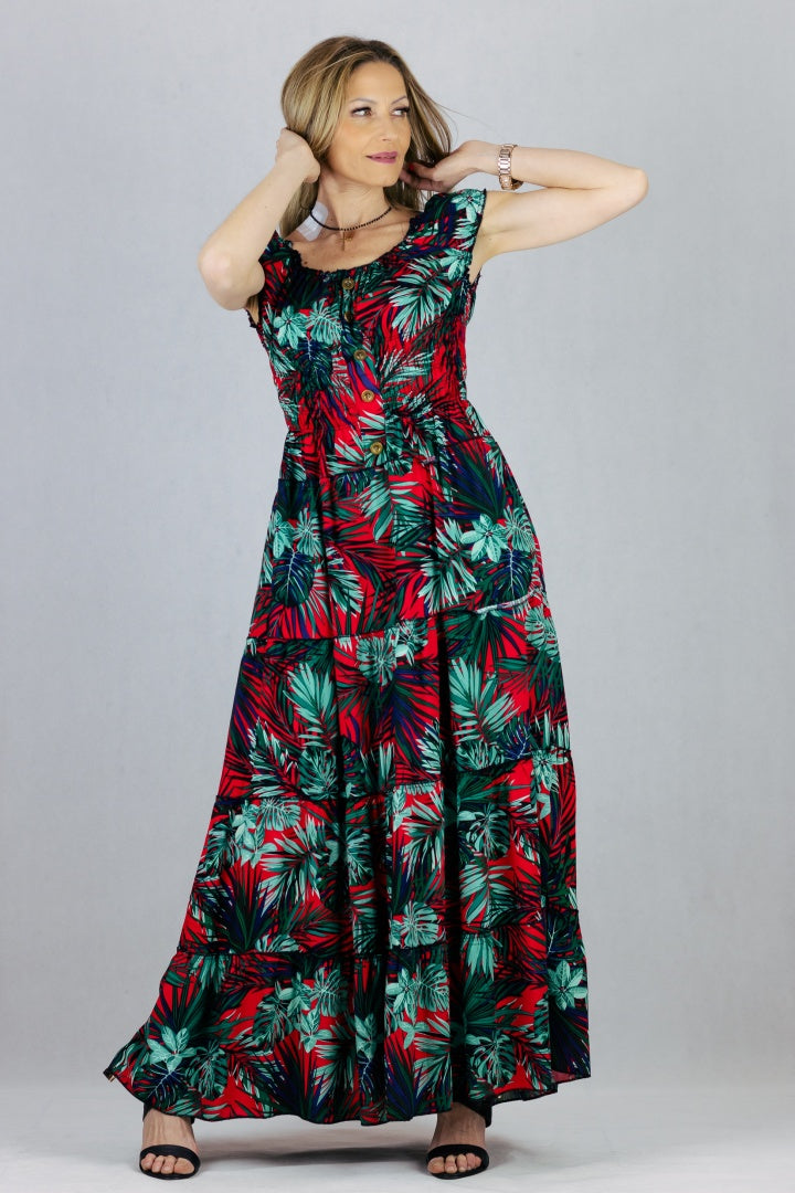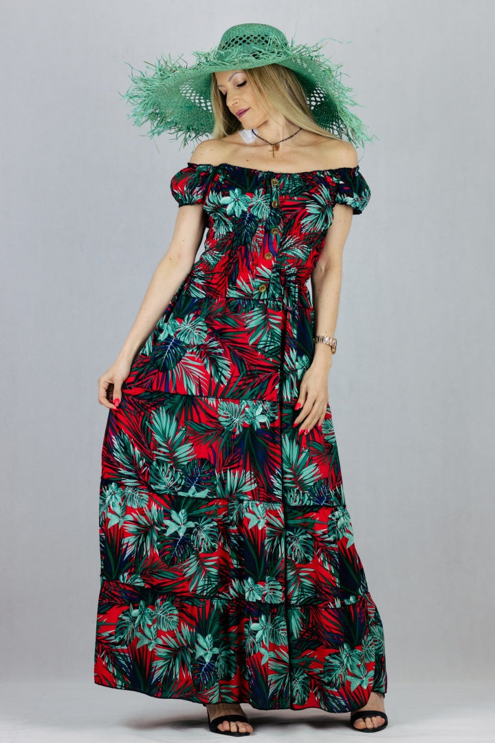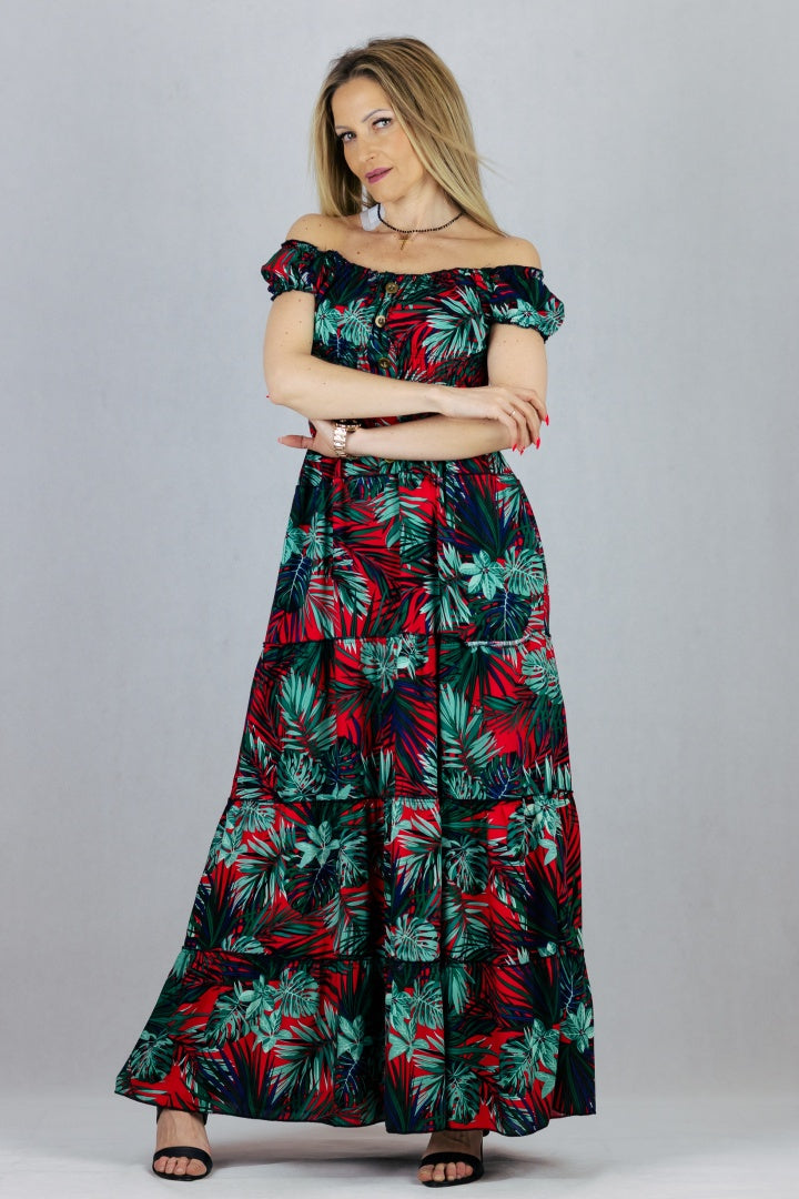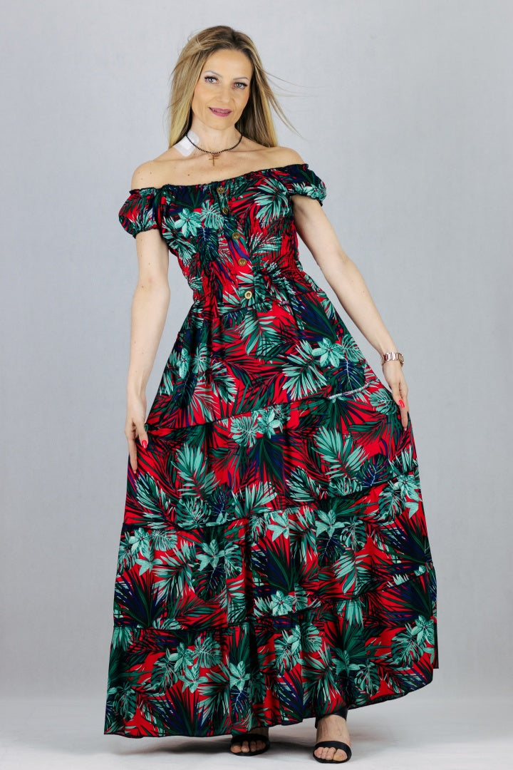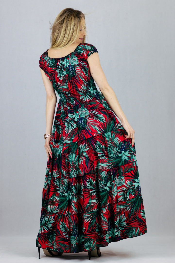 Sukienka hiszpanka w tropikalne liście Miss Sara Fashion