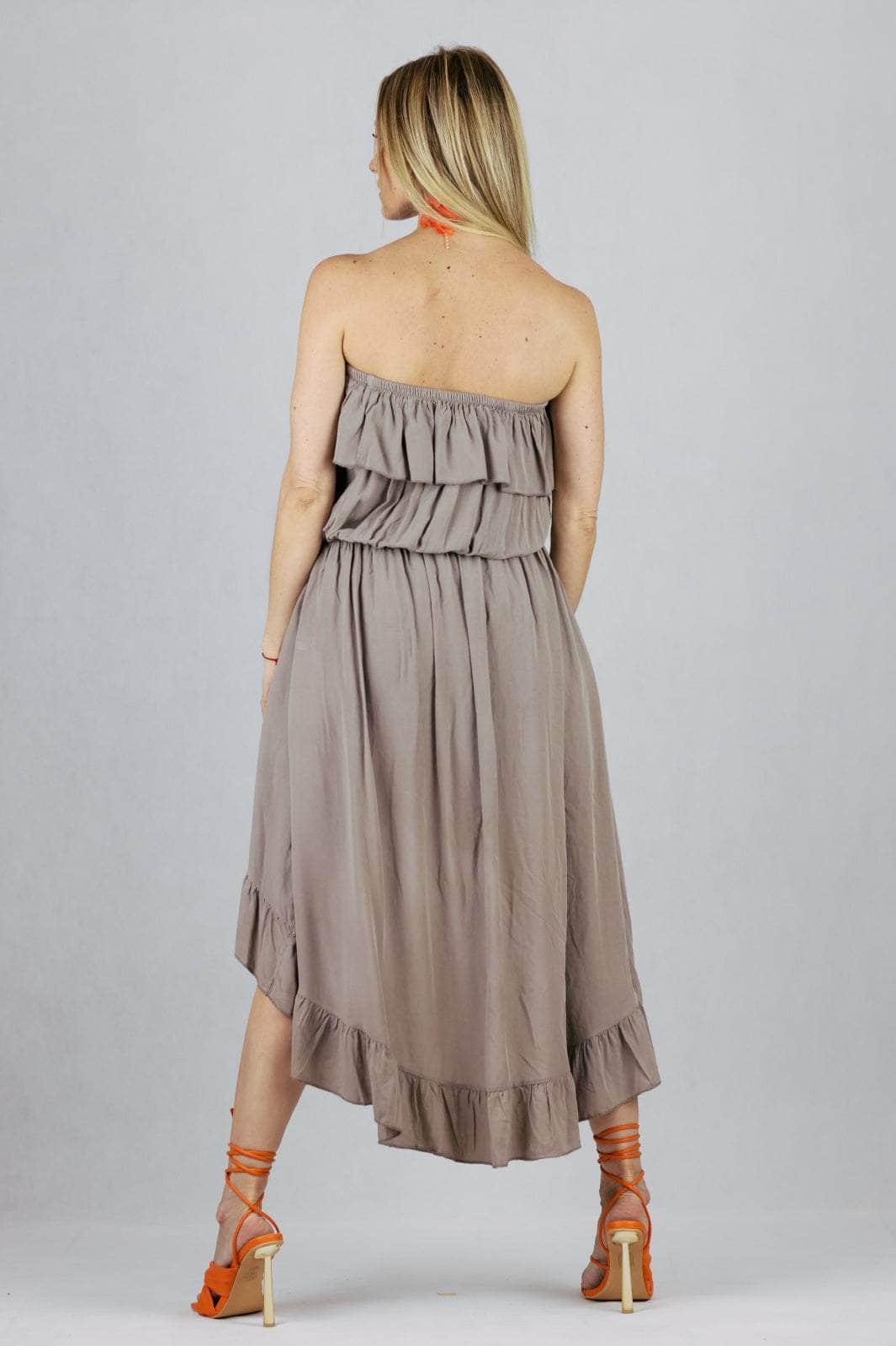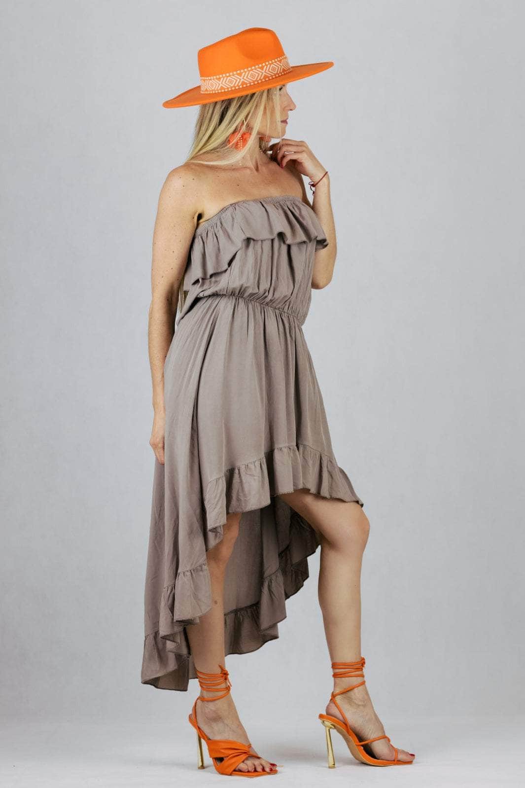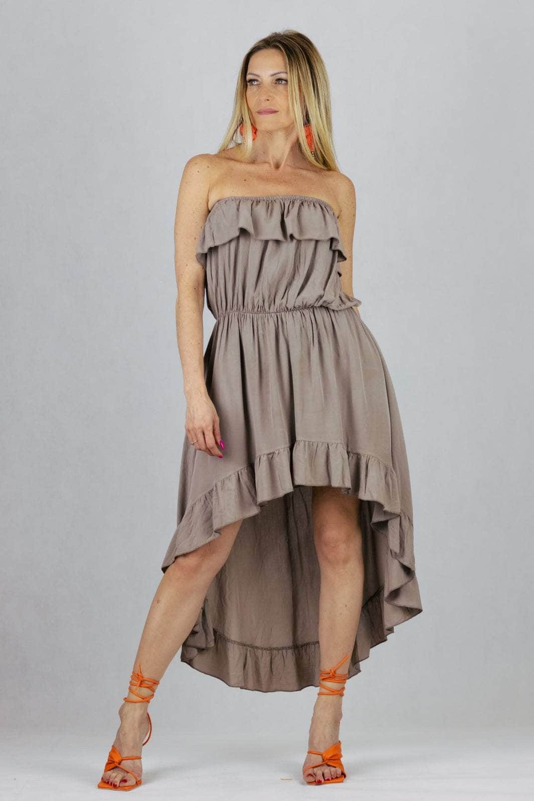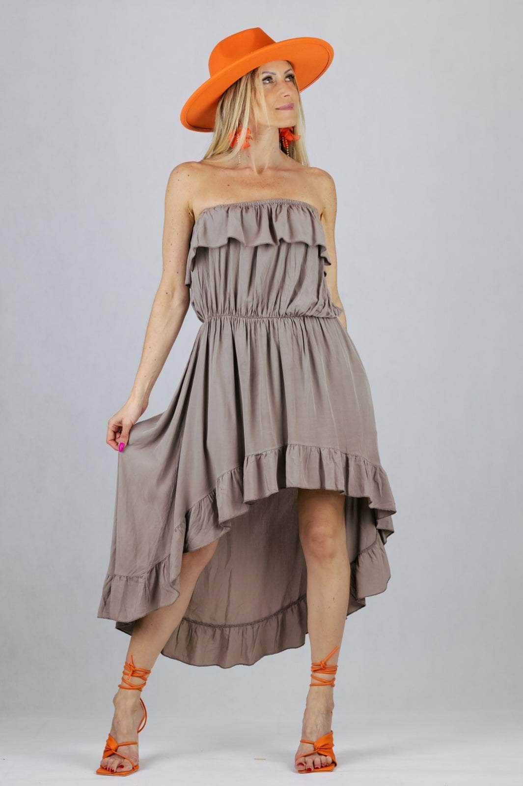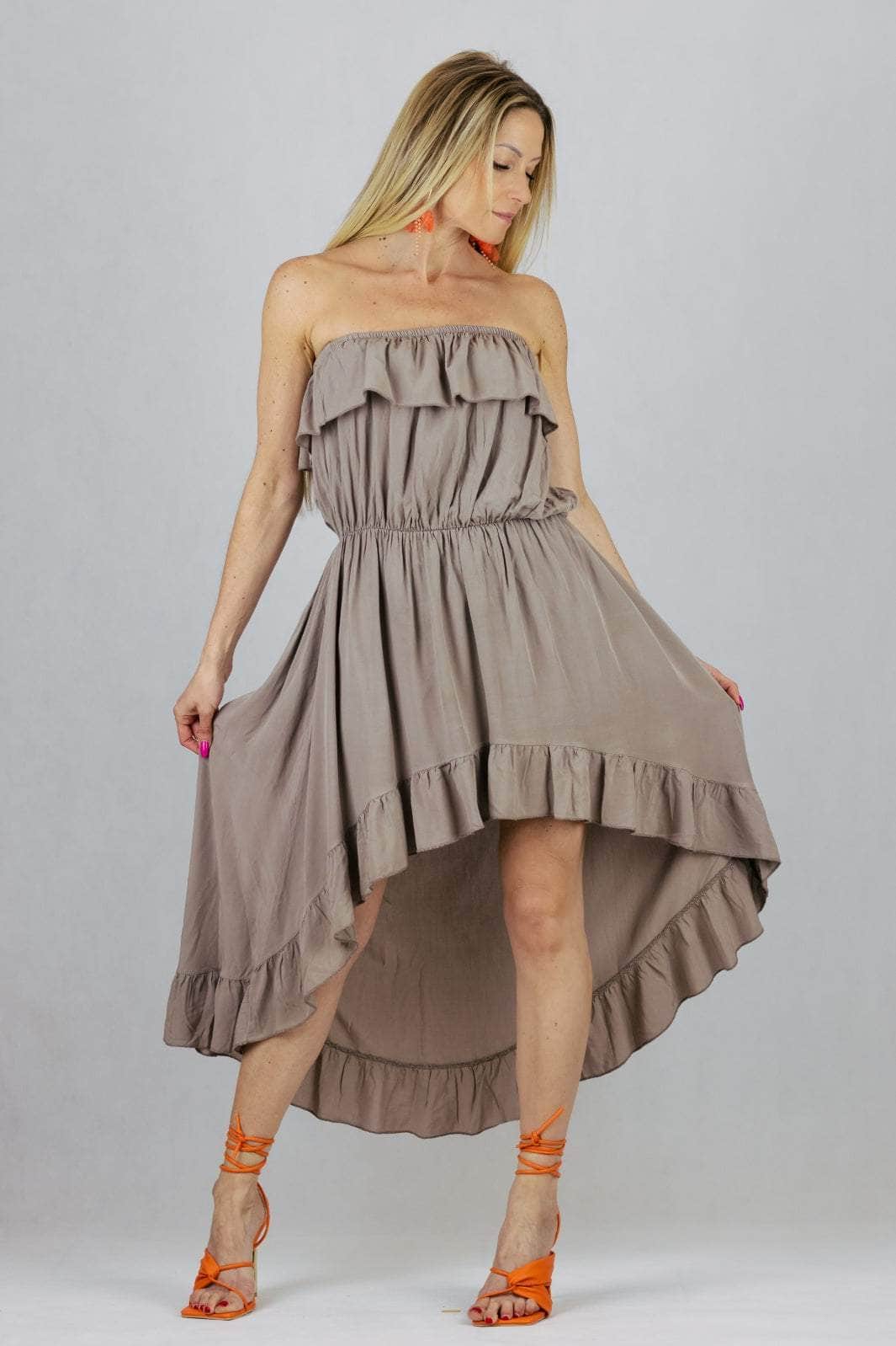 Sukienka hiszpanka z wiskozy z asymetrycznym dołem.