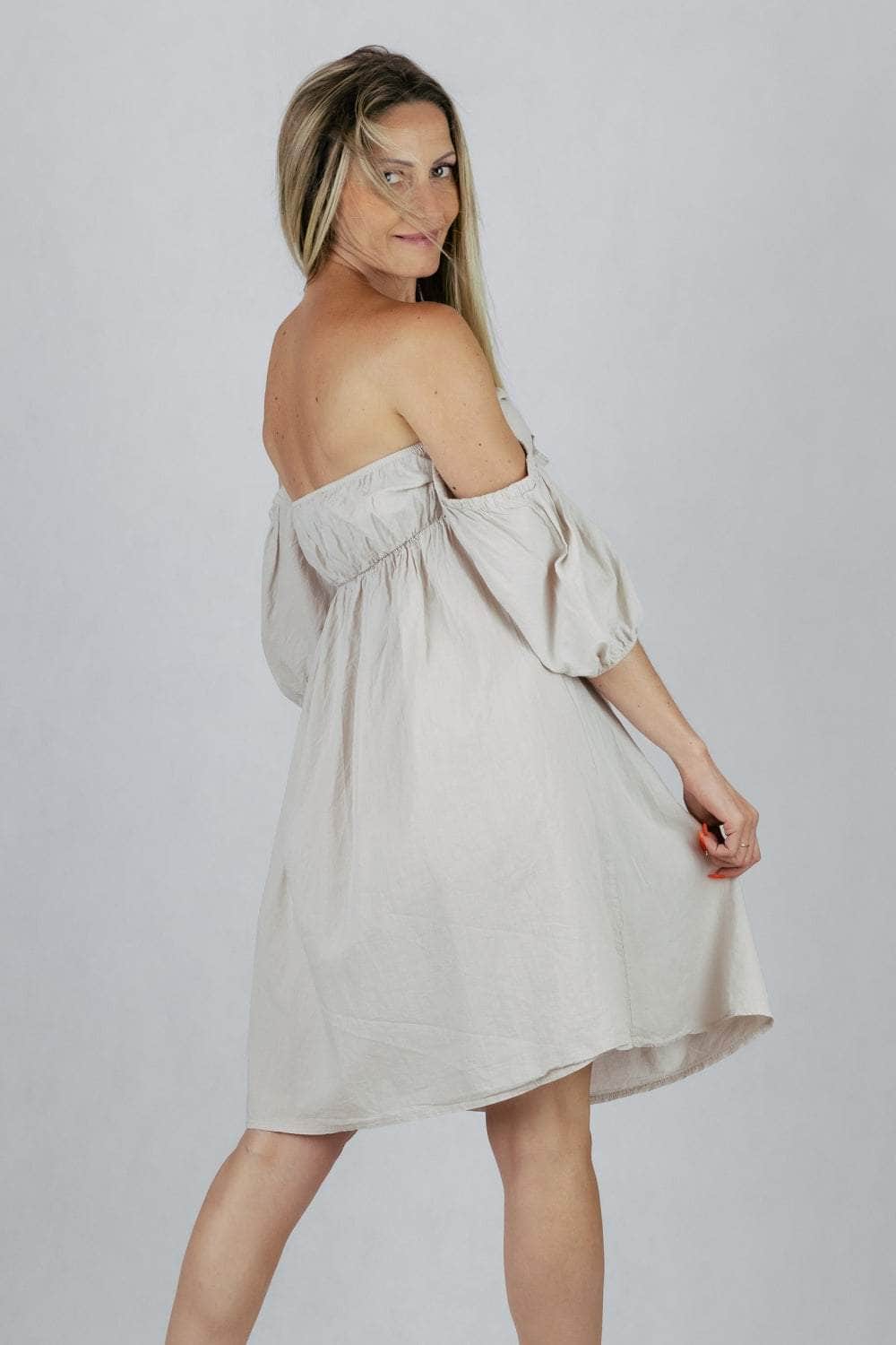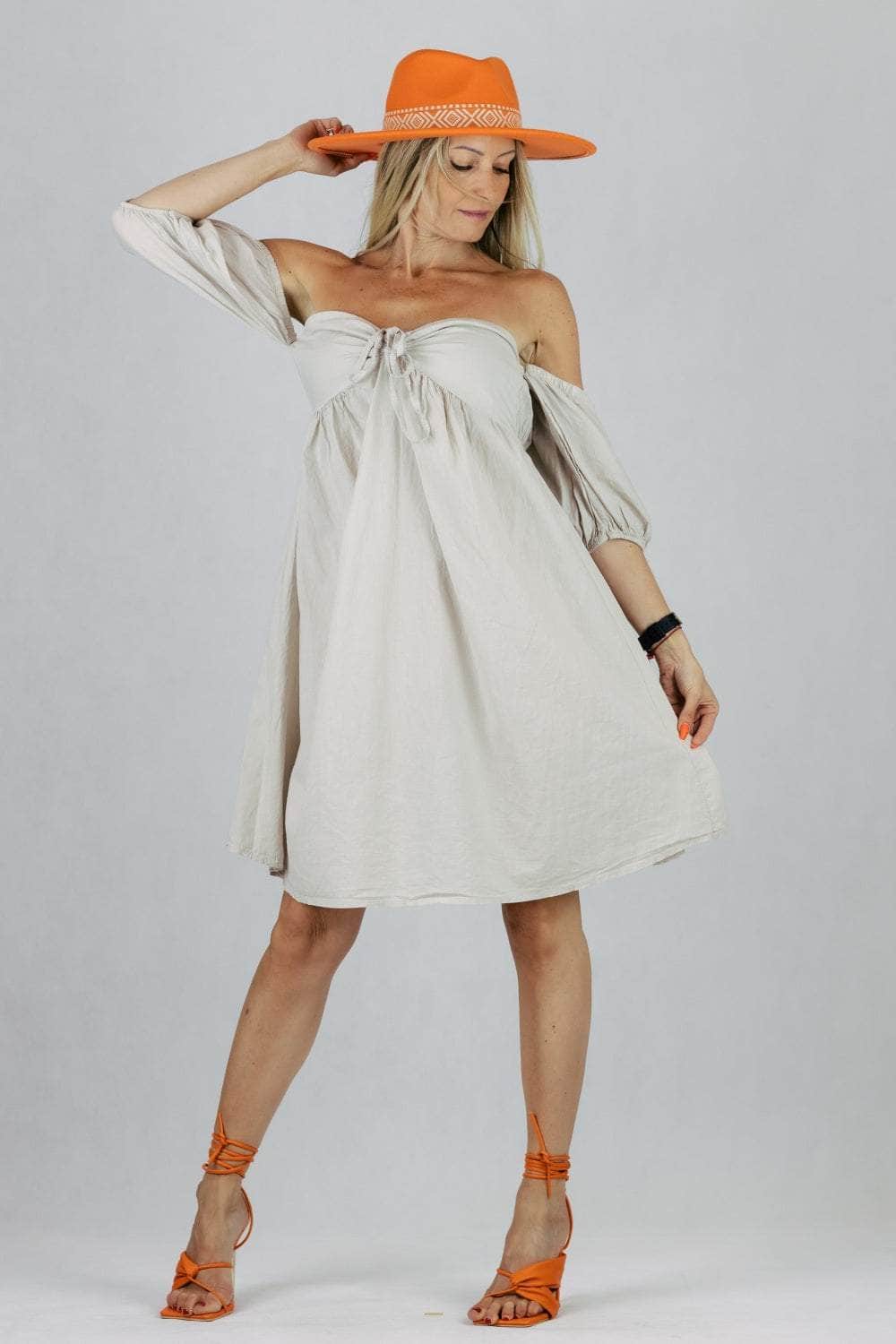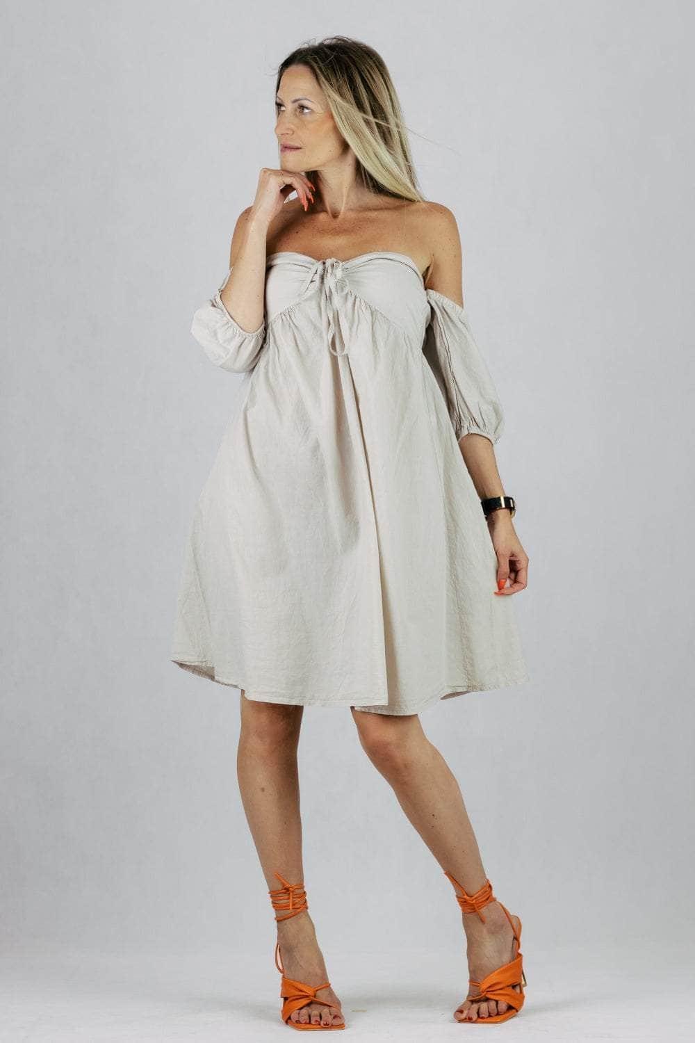 Sukienka letnia z rękawkiem - beżowa UNIWERSALNY Made in Italy Sukienki Inspiracja Jelenia Gora