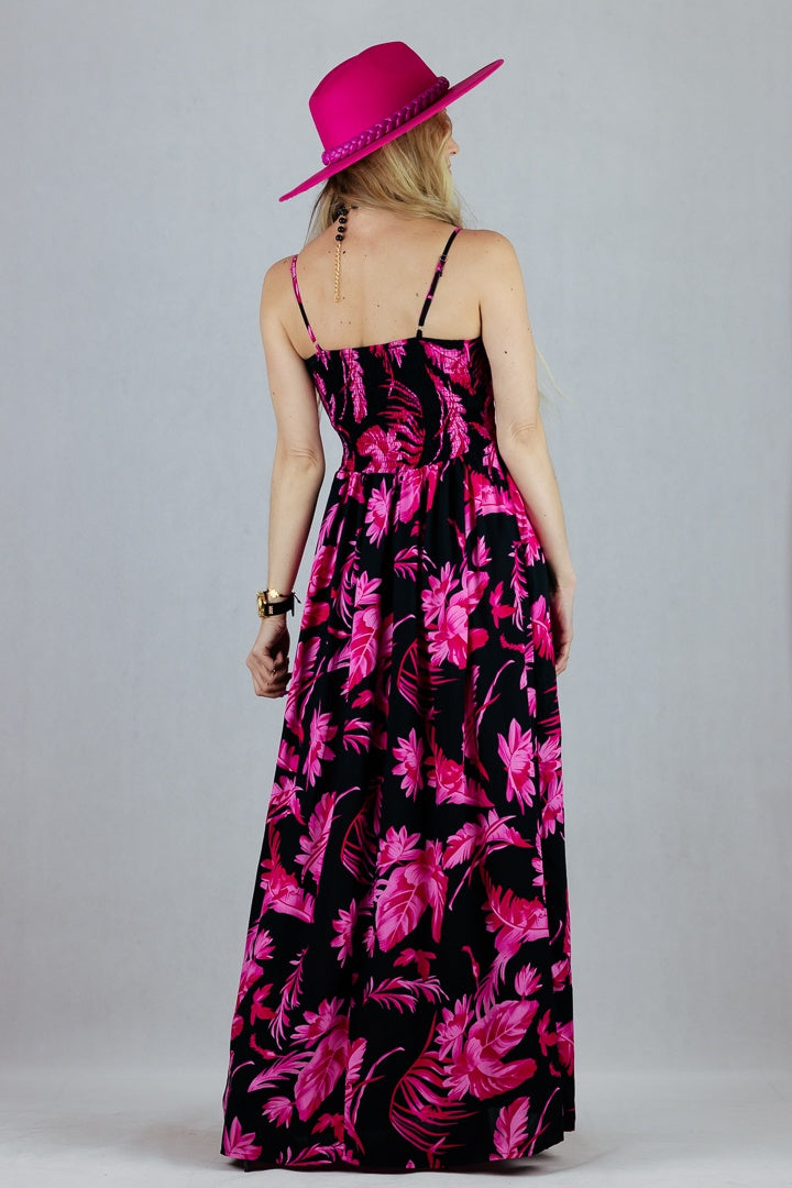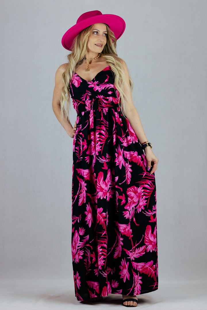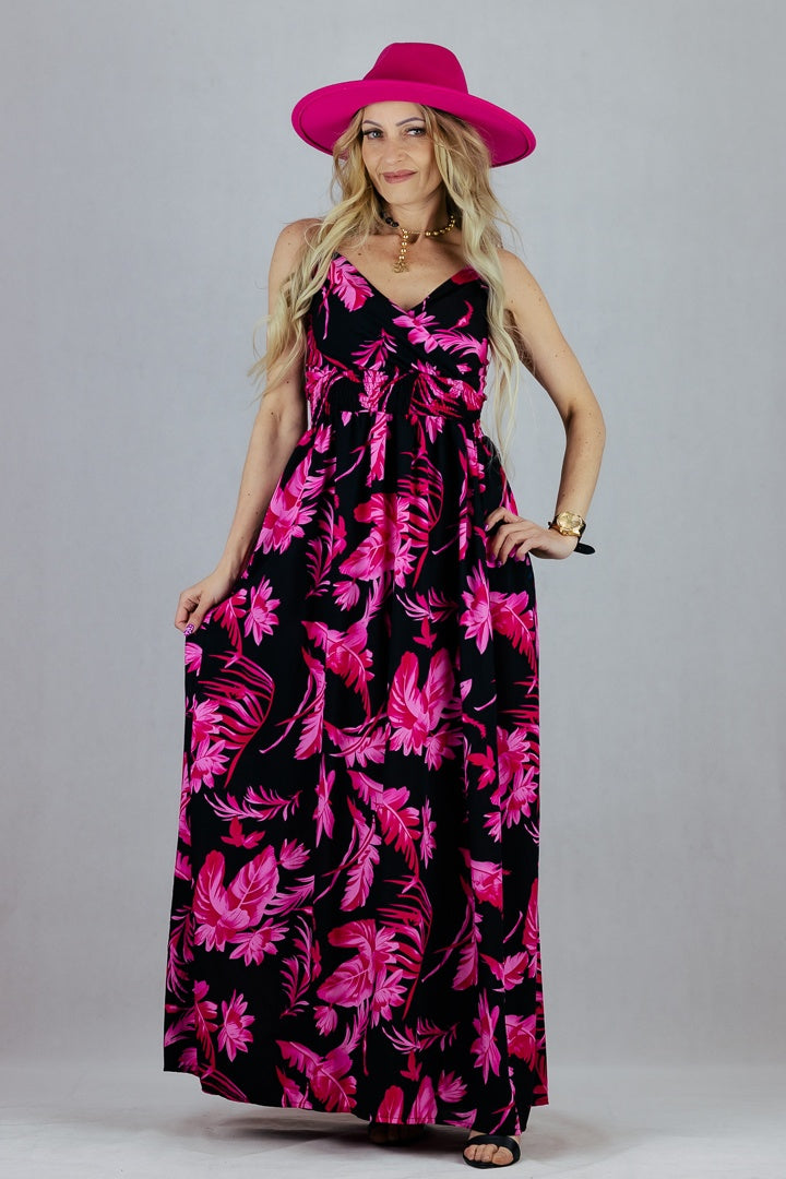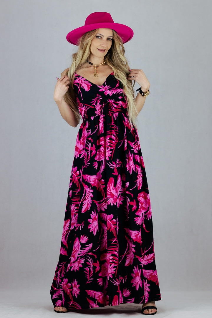 Sukienka w kwiaty z regulowanymi ramiączkami. Uszyta z wiskozy.