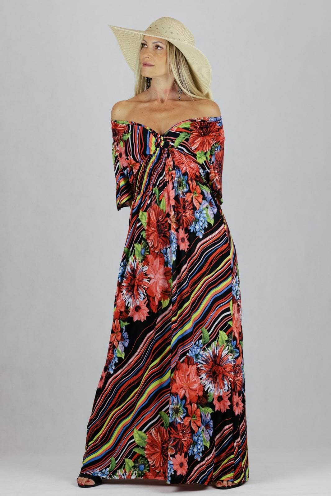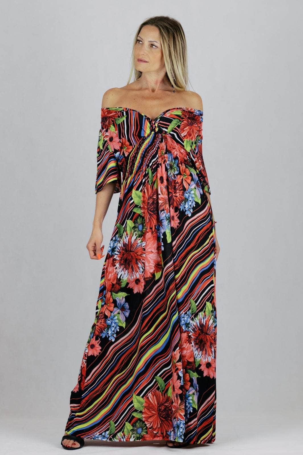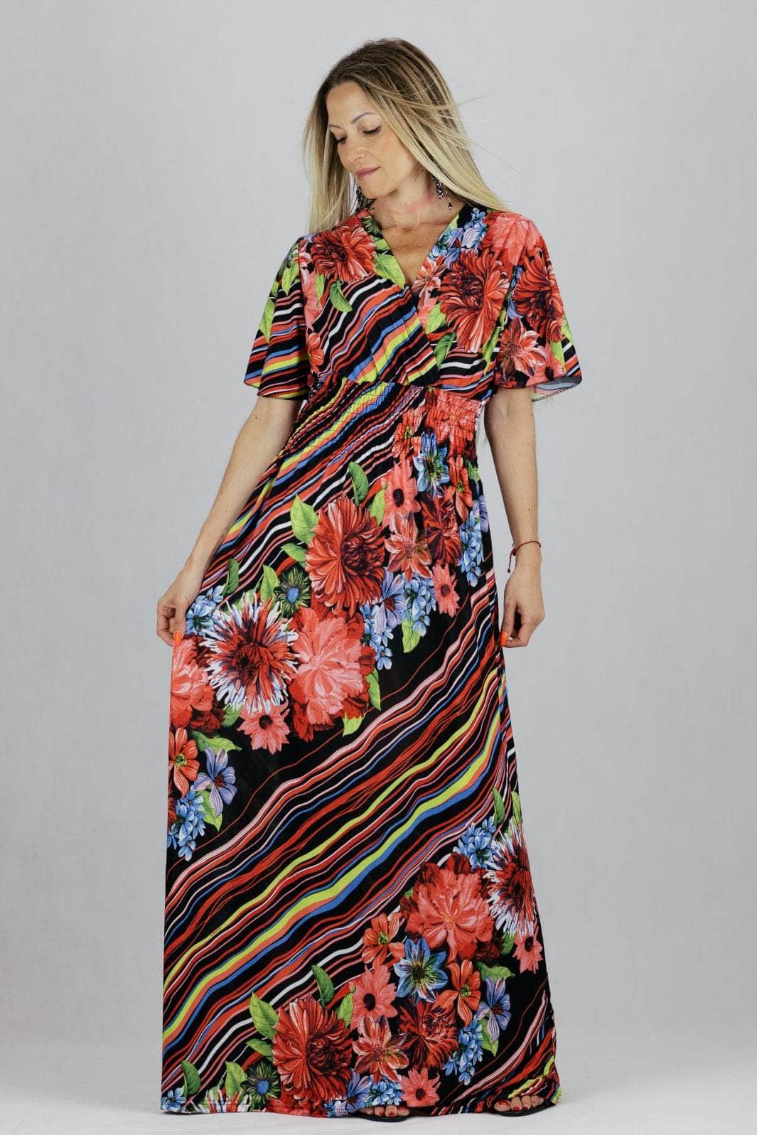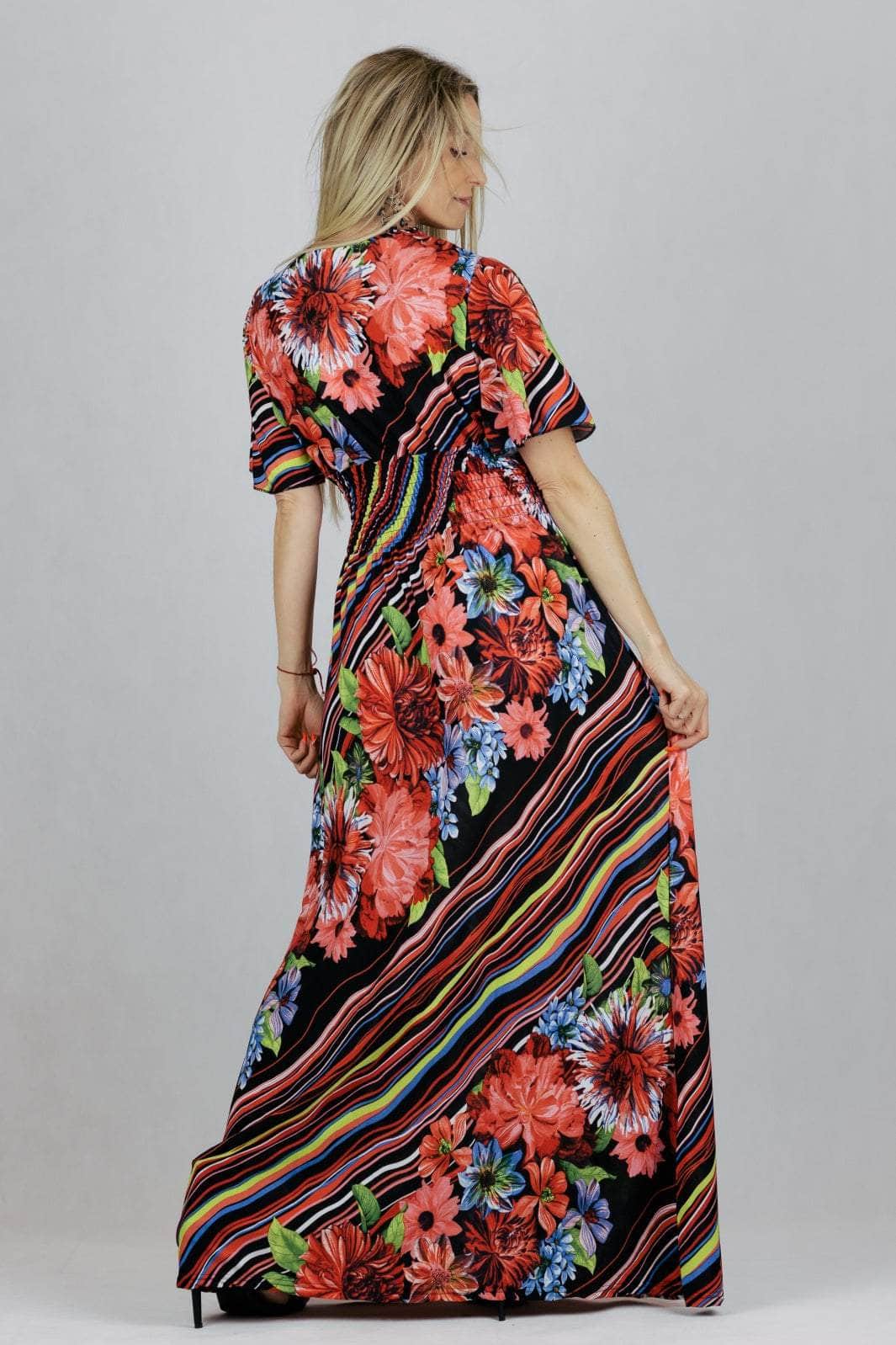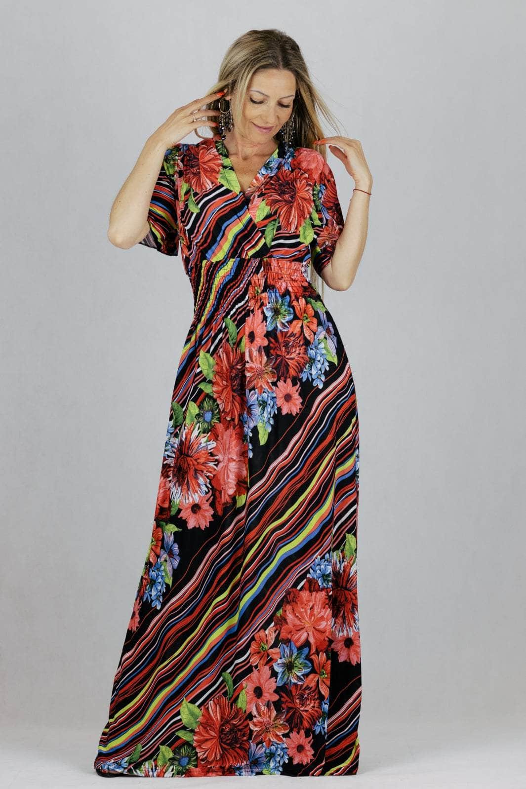 Sukienka maxi z kopertowym dekoltem i krótkim rękawem.