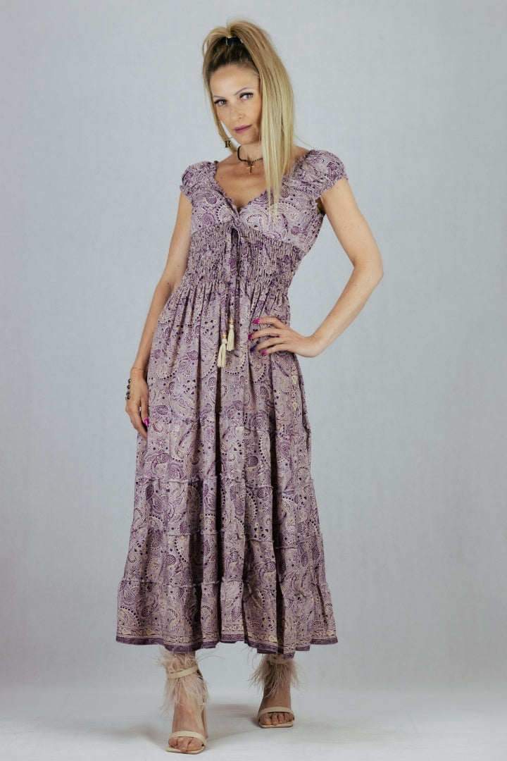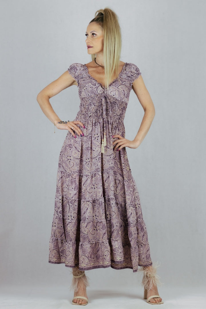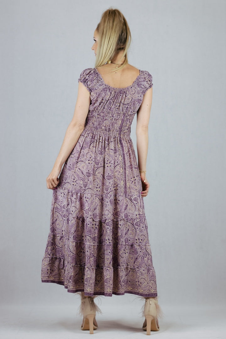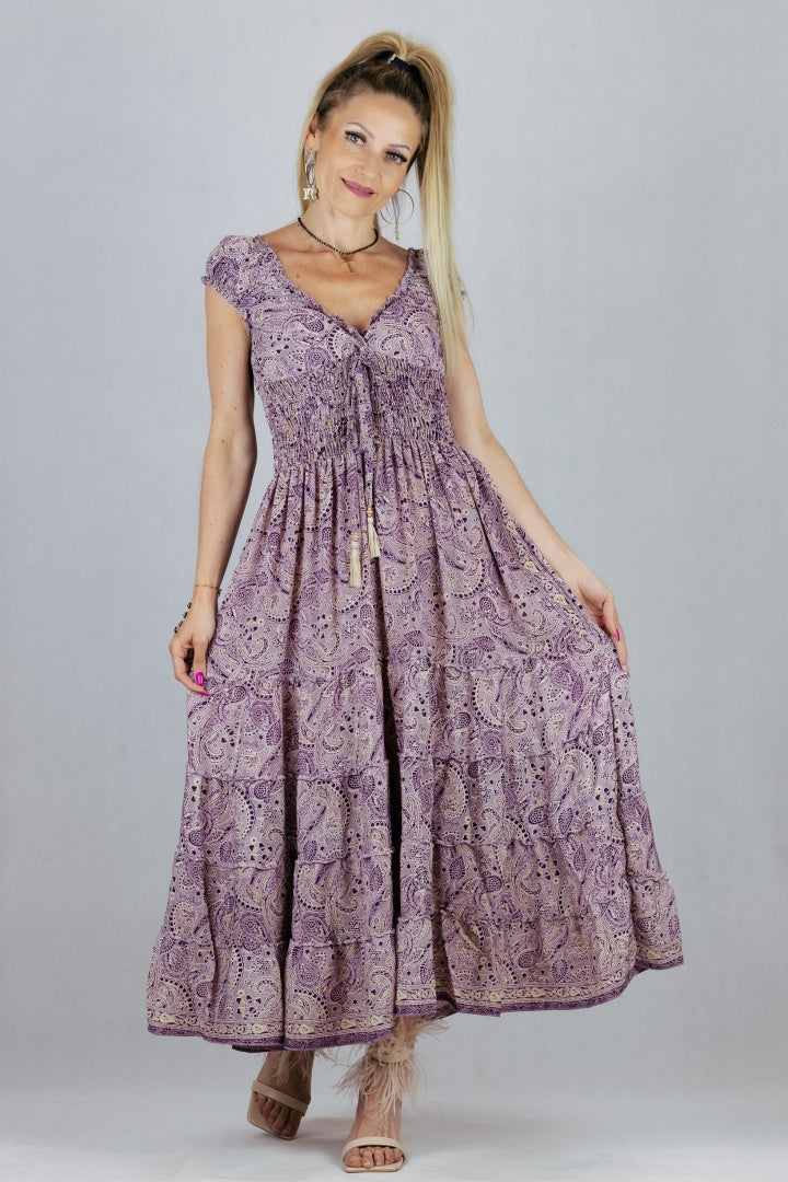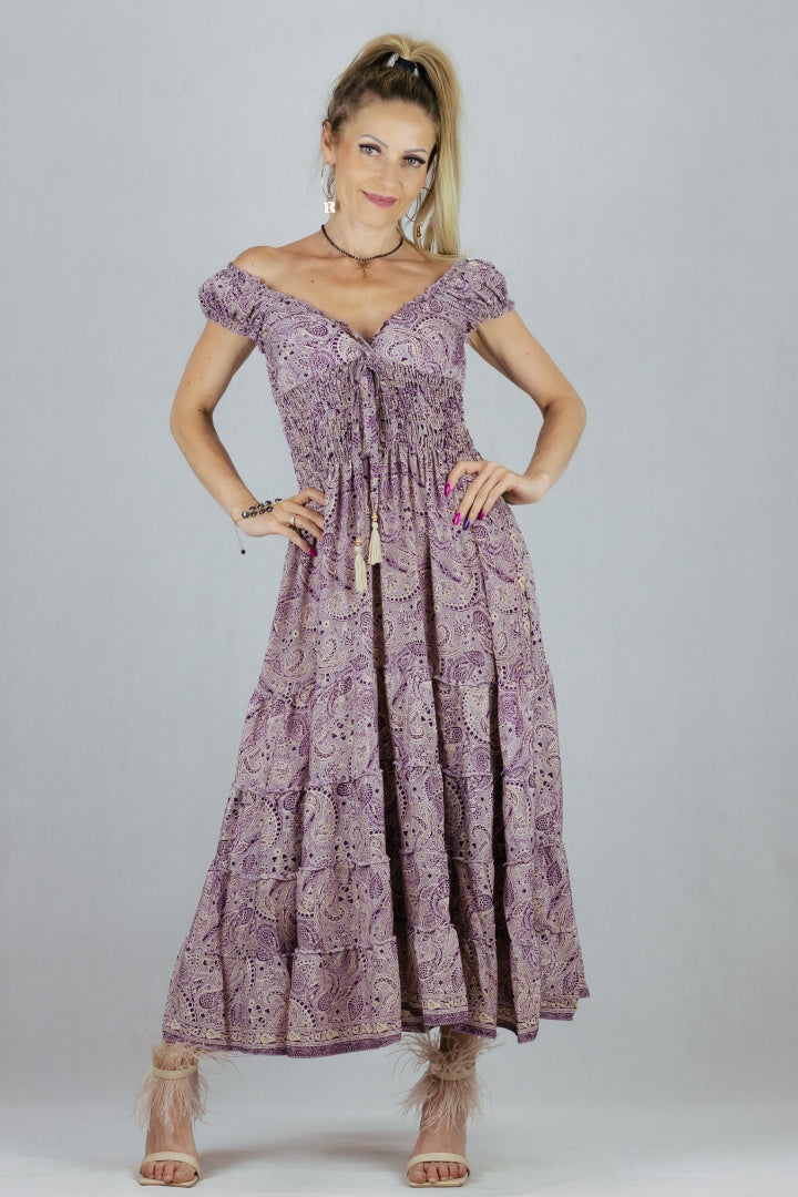Jedwabna sukienka o rozkloszowanym kroju.