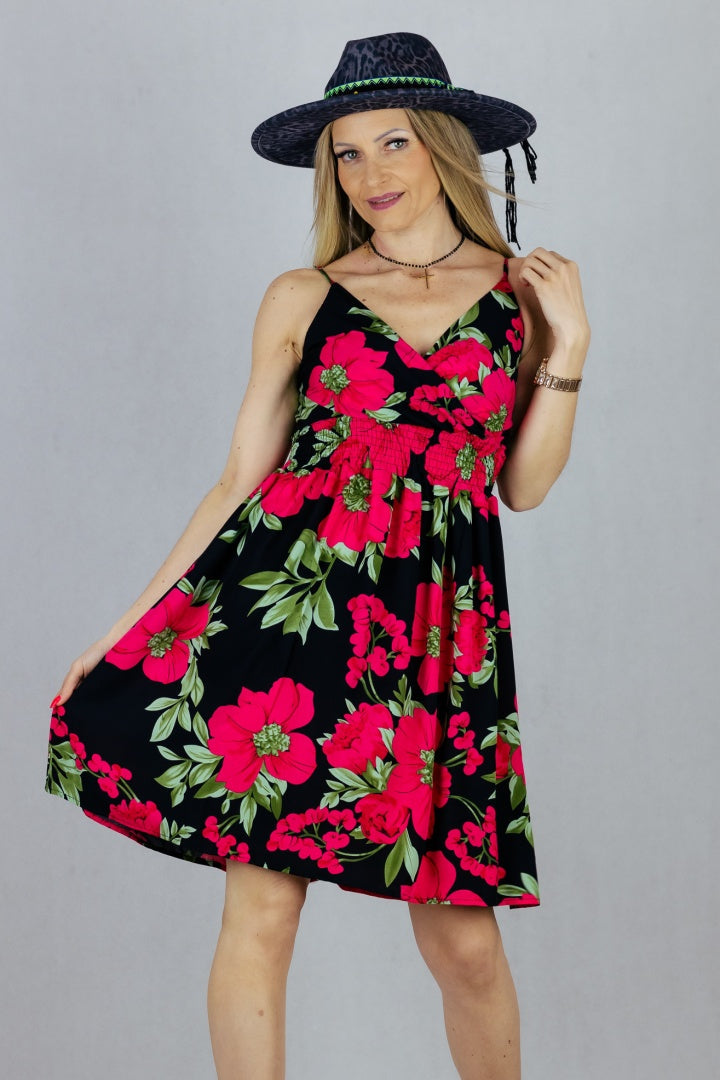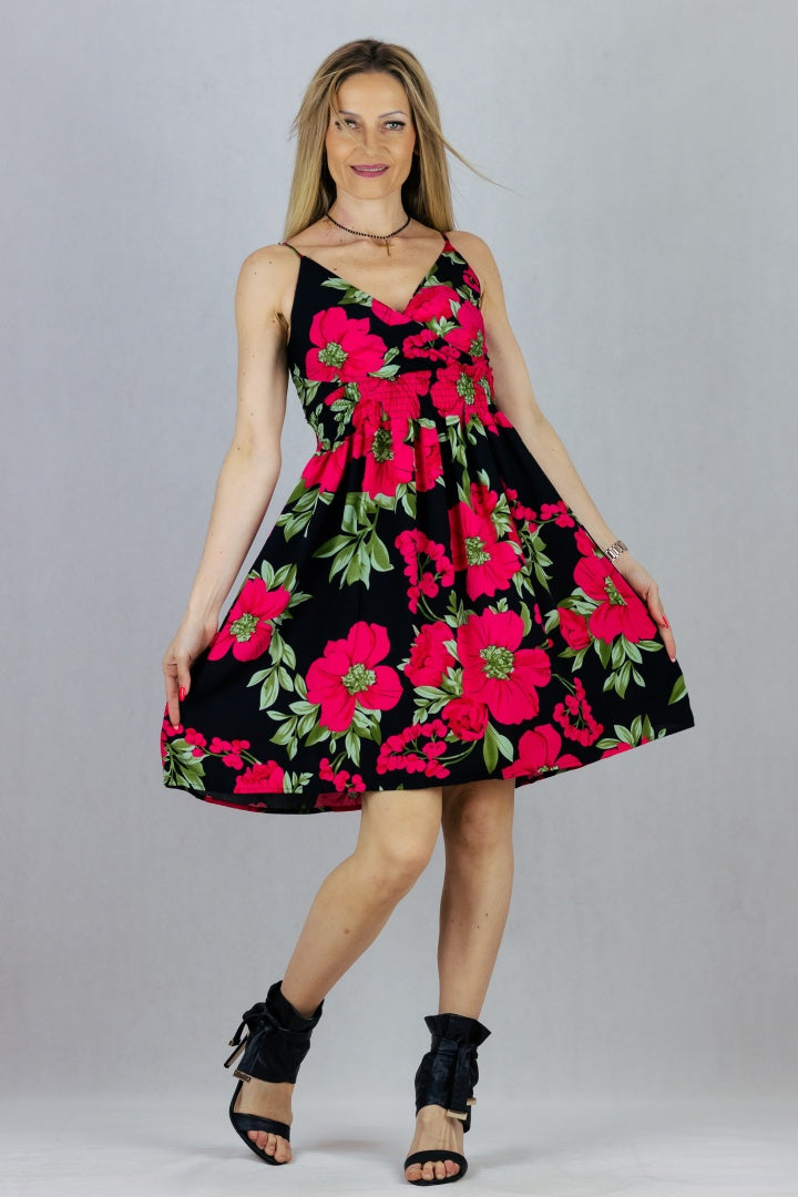 Letnia sukienka mini z regulowanymi ramiączkami.