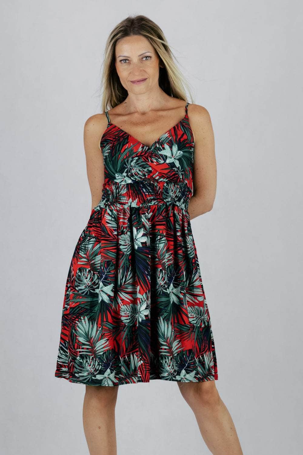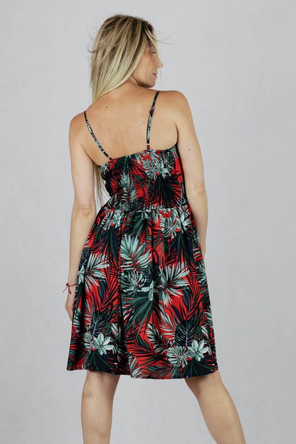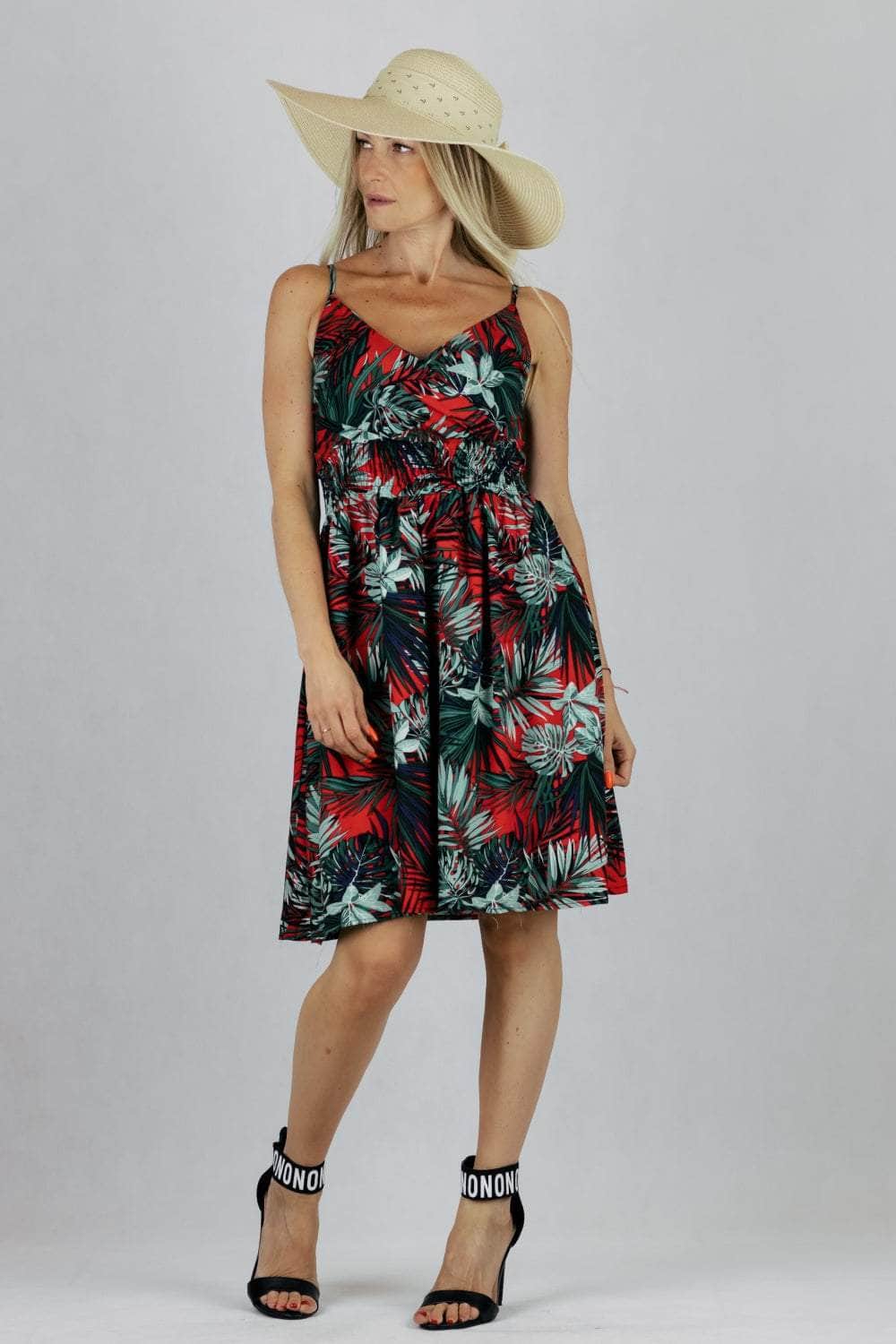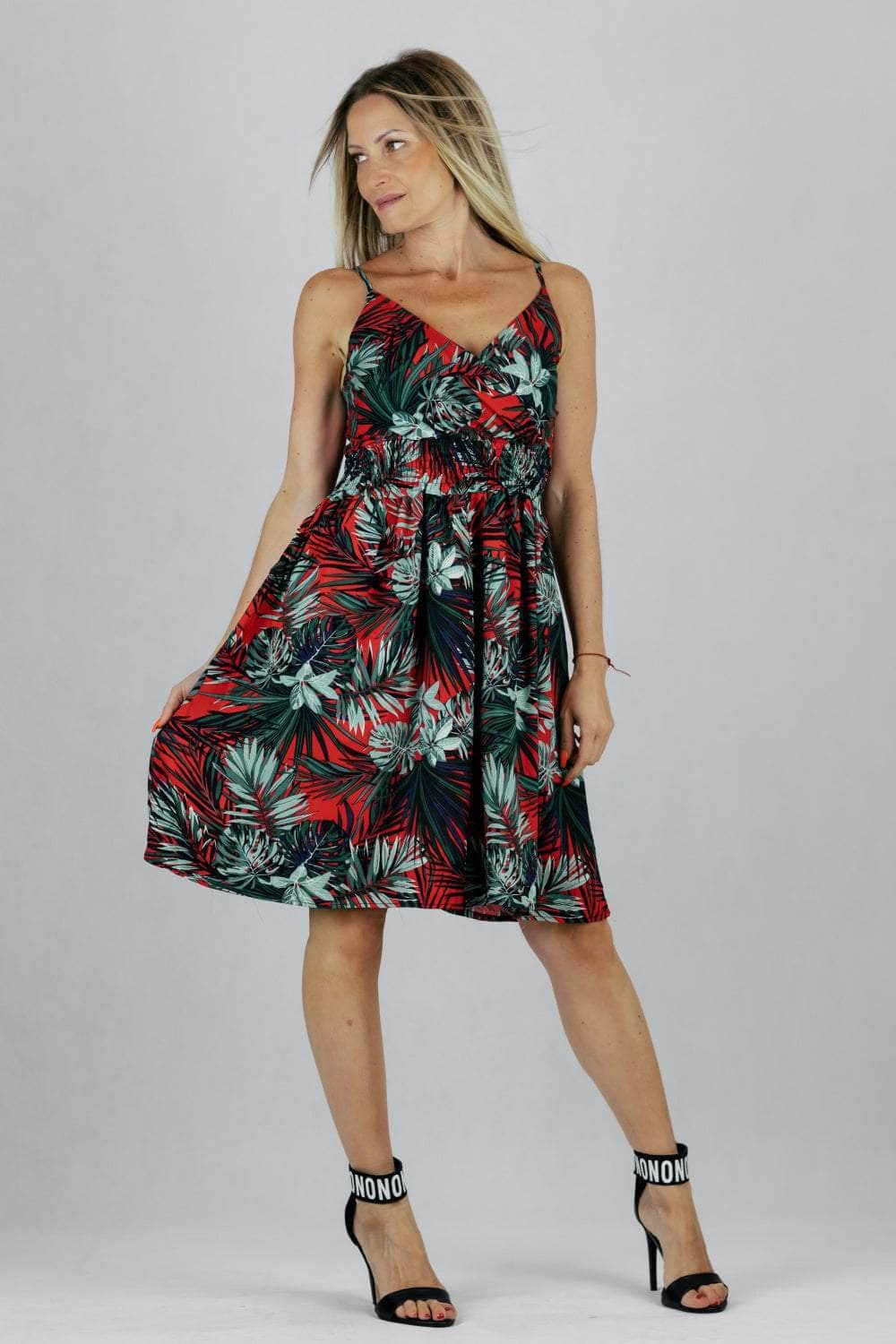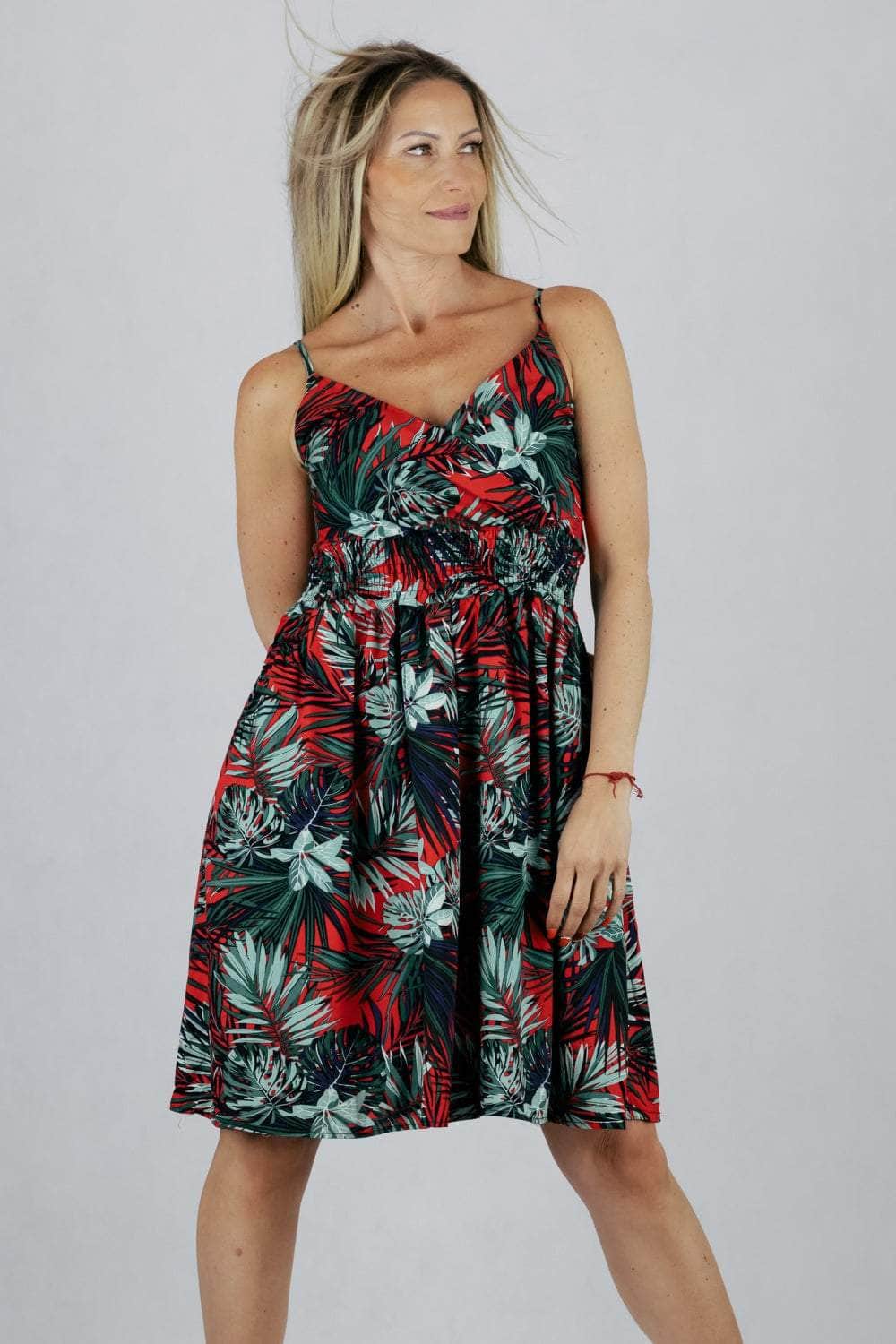 Letnia sukienka mini Miss Sara Fashion z regulowanymi ramiączkami.