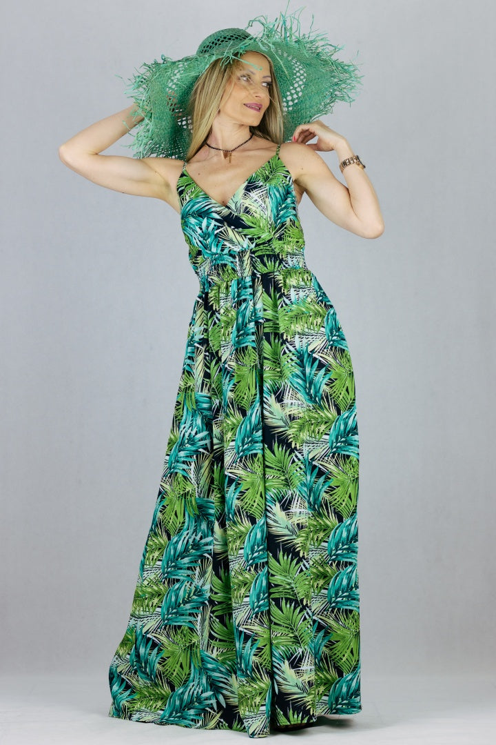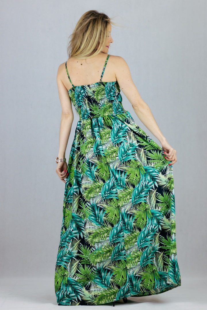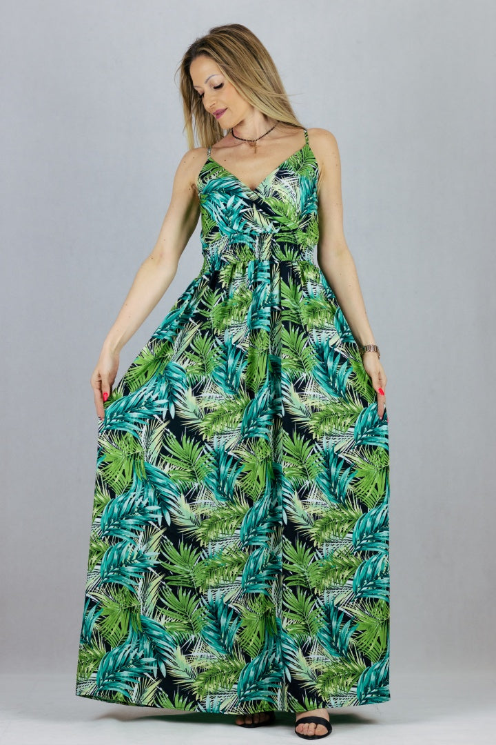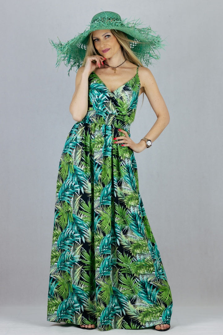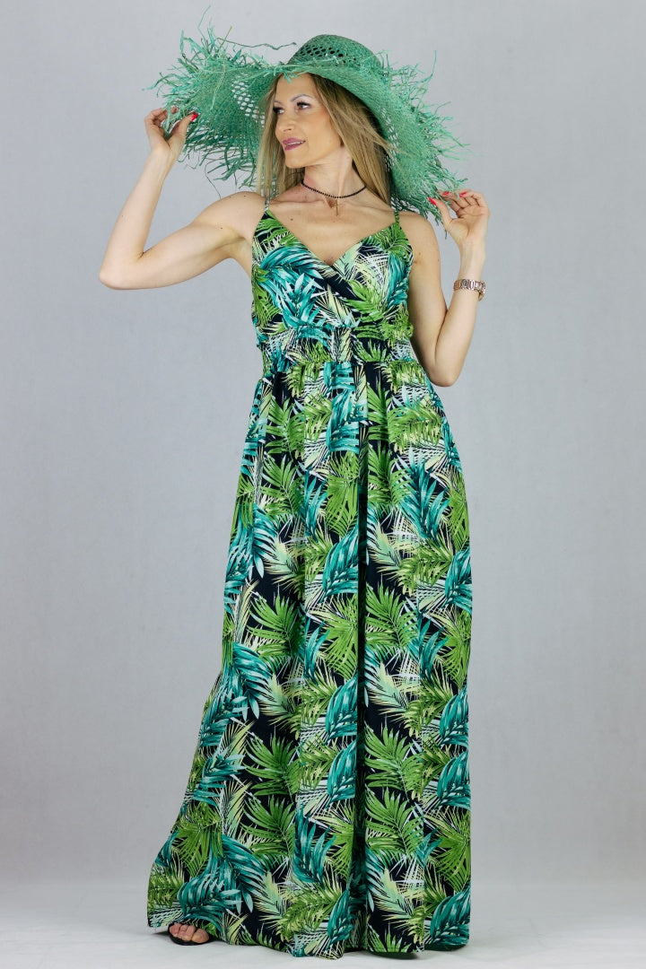 Sukienka Miss Sara Fashion w tropikalnym princie - zielona
