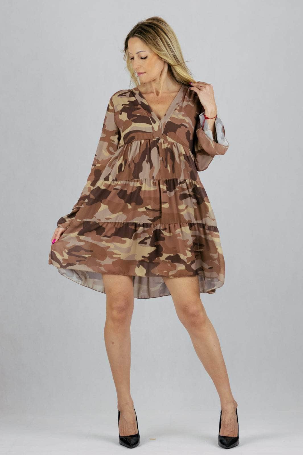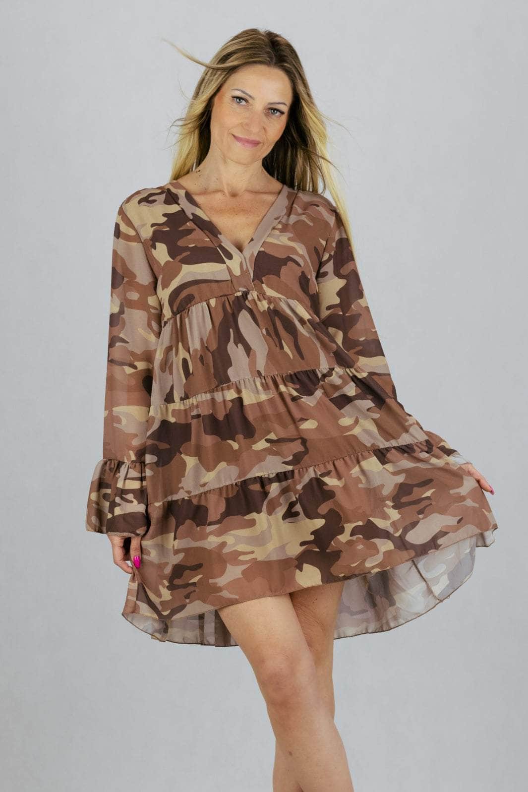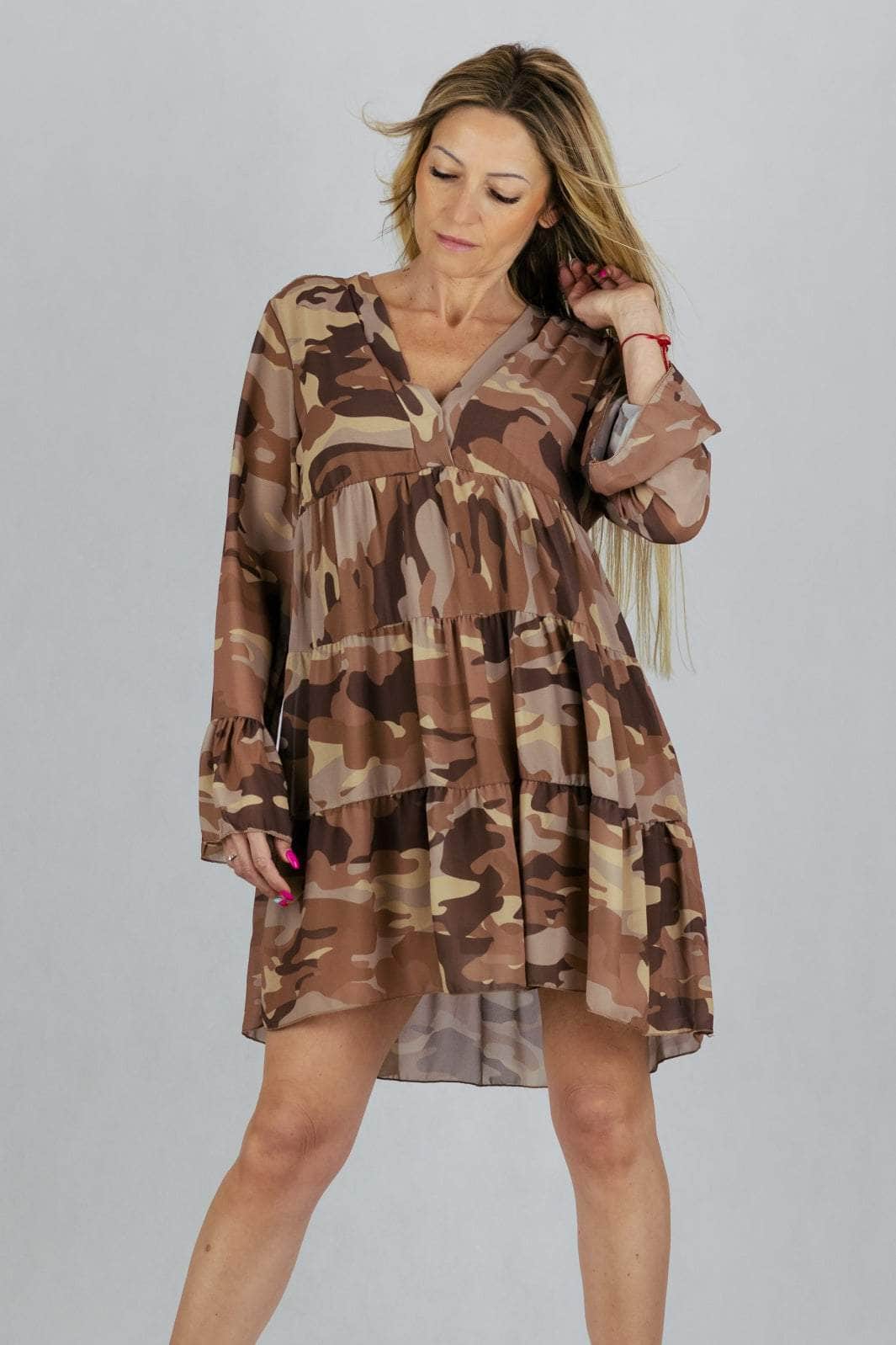 Sukienka moro o luźnym kroju. Podszyta podszewką.