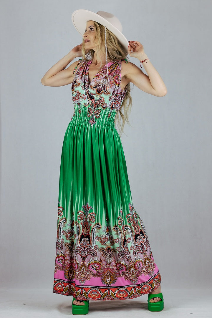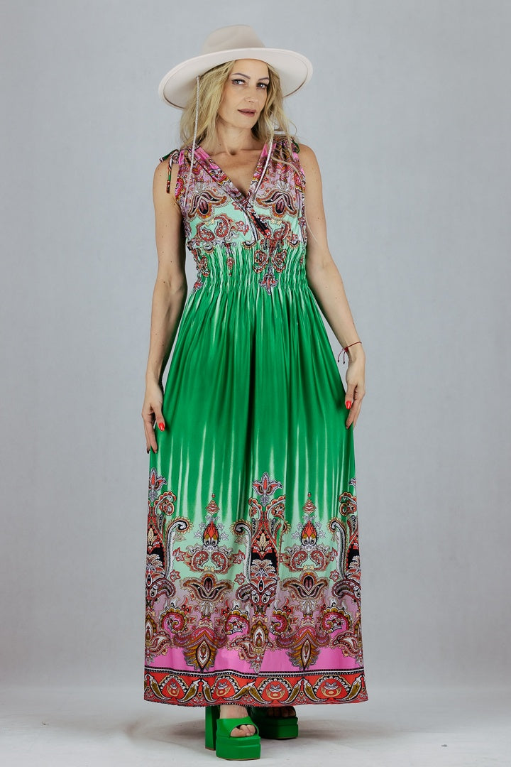 Sukienka Maxi we wzory z regulacją szerokości ramion.