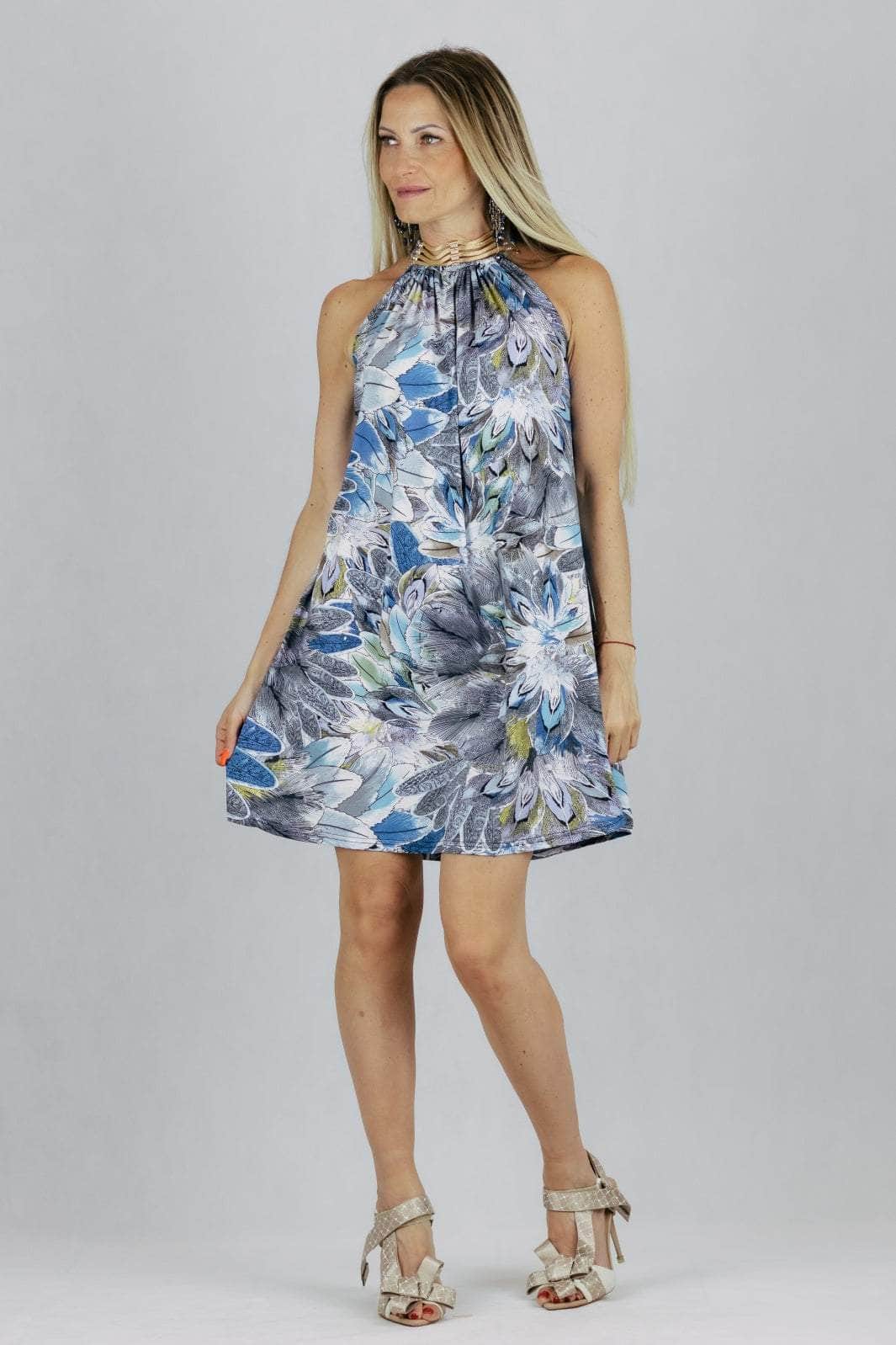Sukienka z biżuteryjnym halterem - niebieska