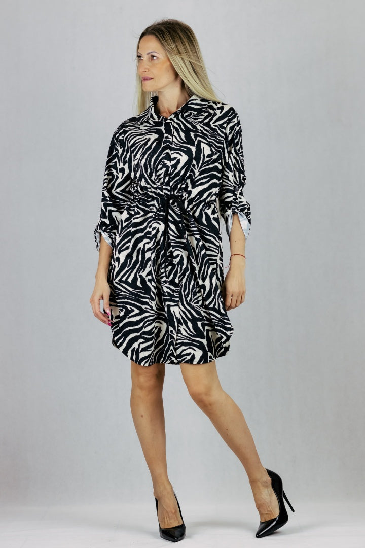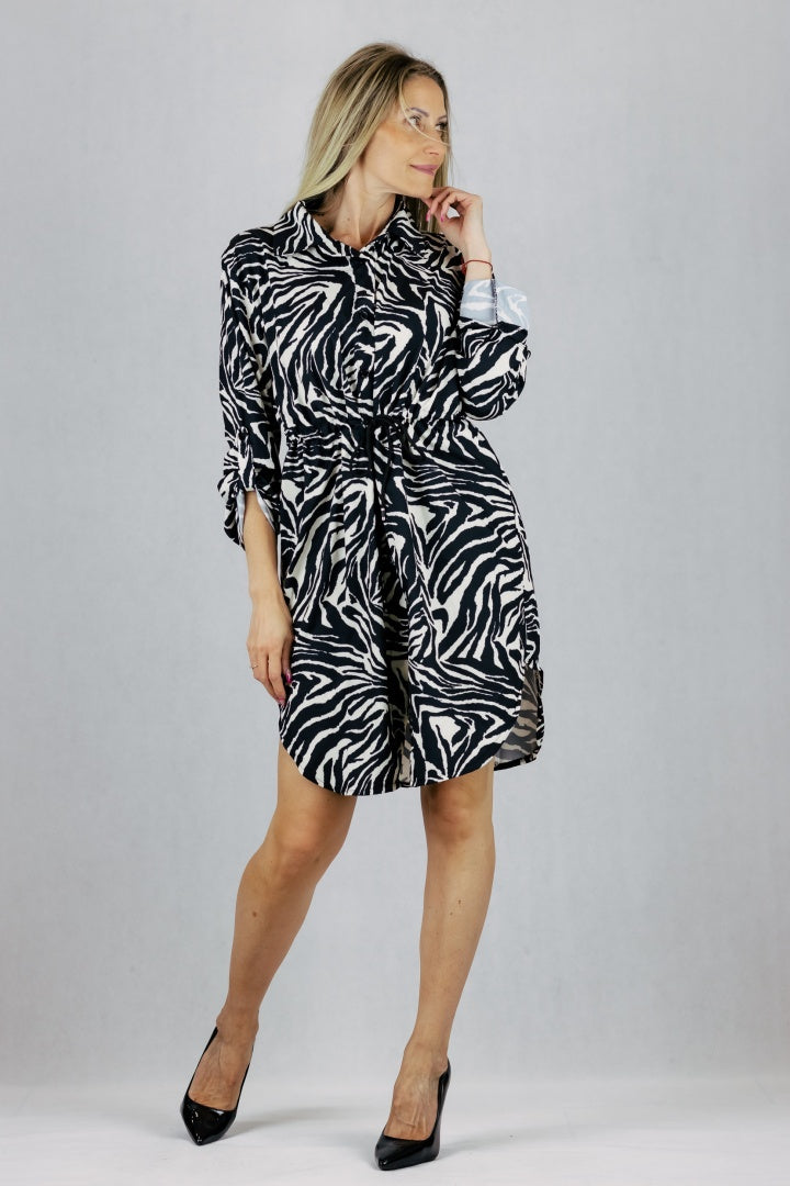 Sukienka z regulacją talii w princie zwierzęcym.