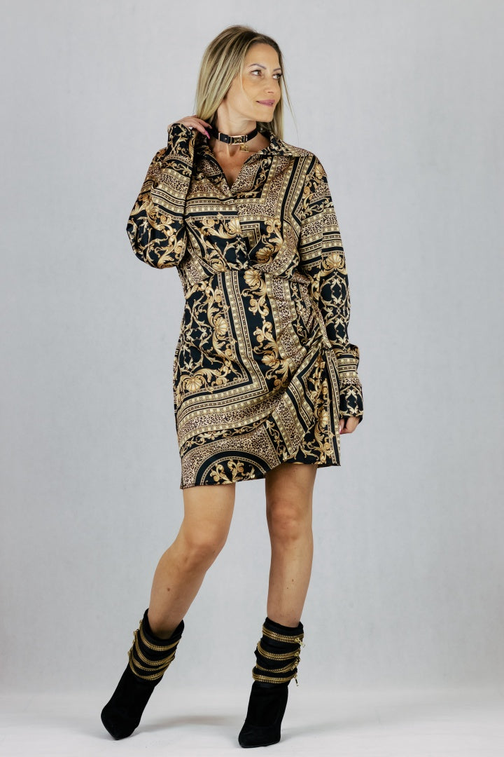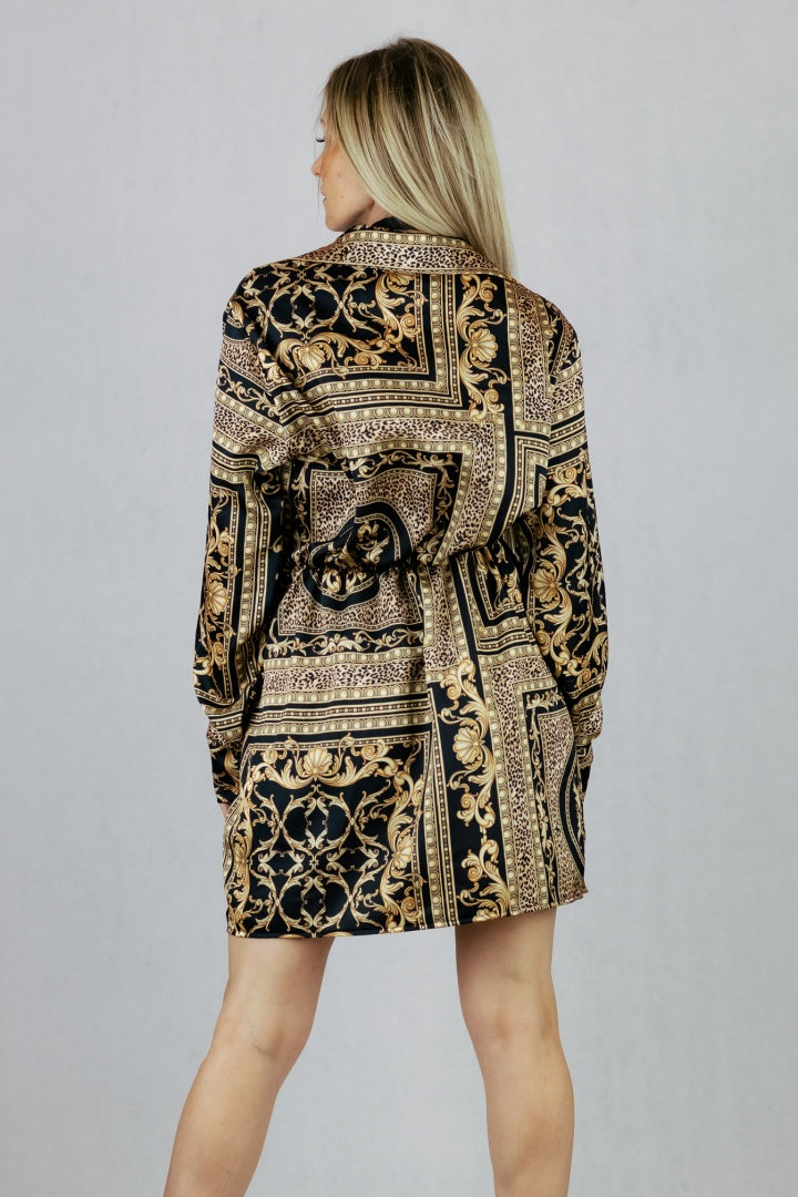 Elegancka sukienka mini z kopertowym dekoltem i kołnierzykiem.