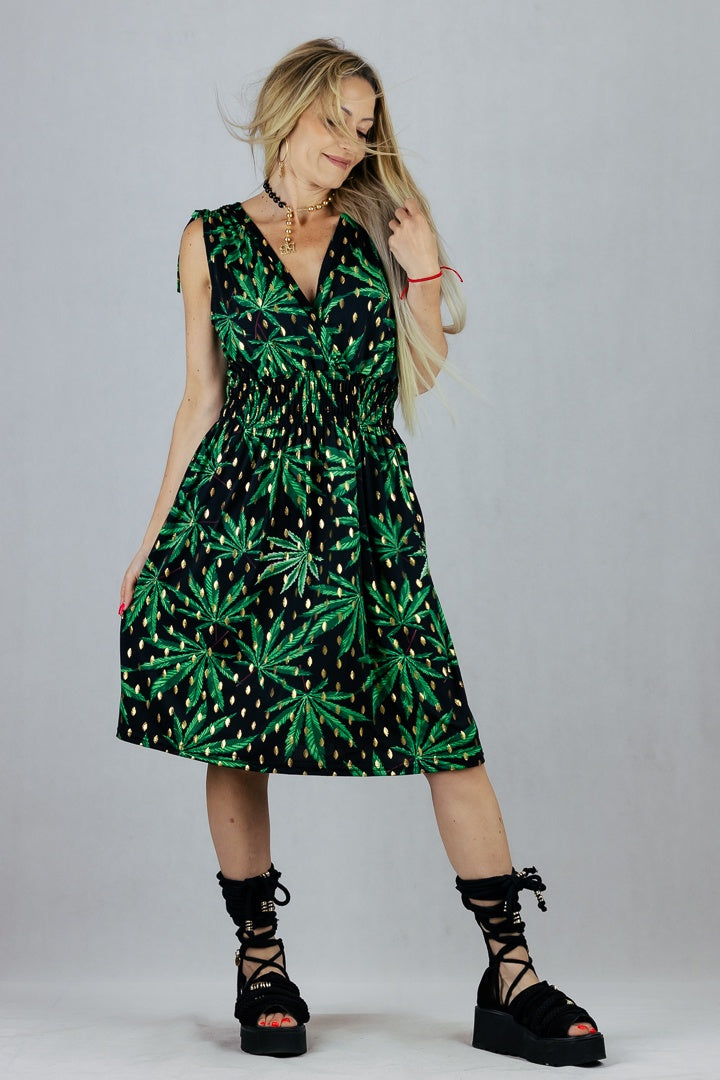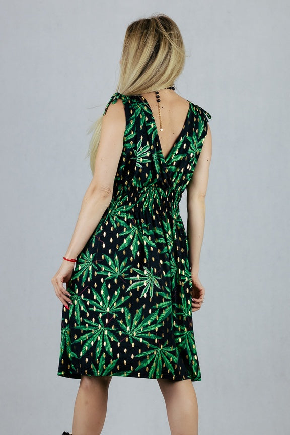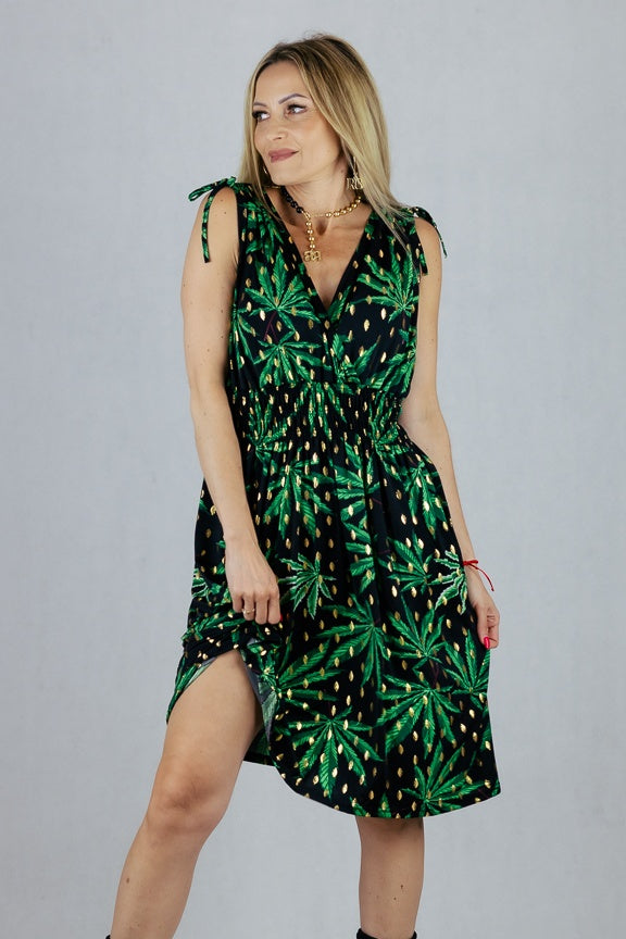 Sukienka we wzory z regulacją szerokości ramion.