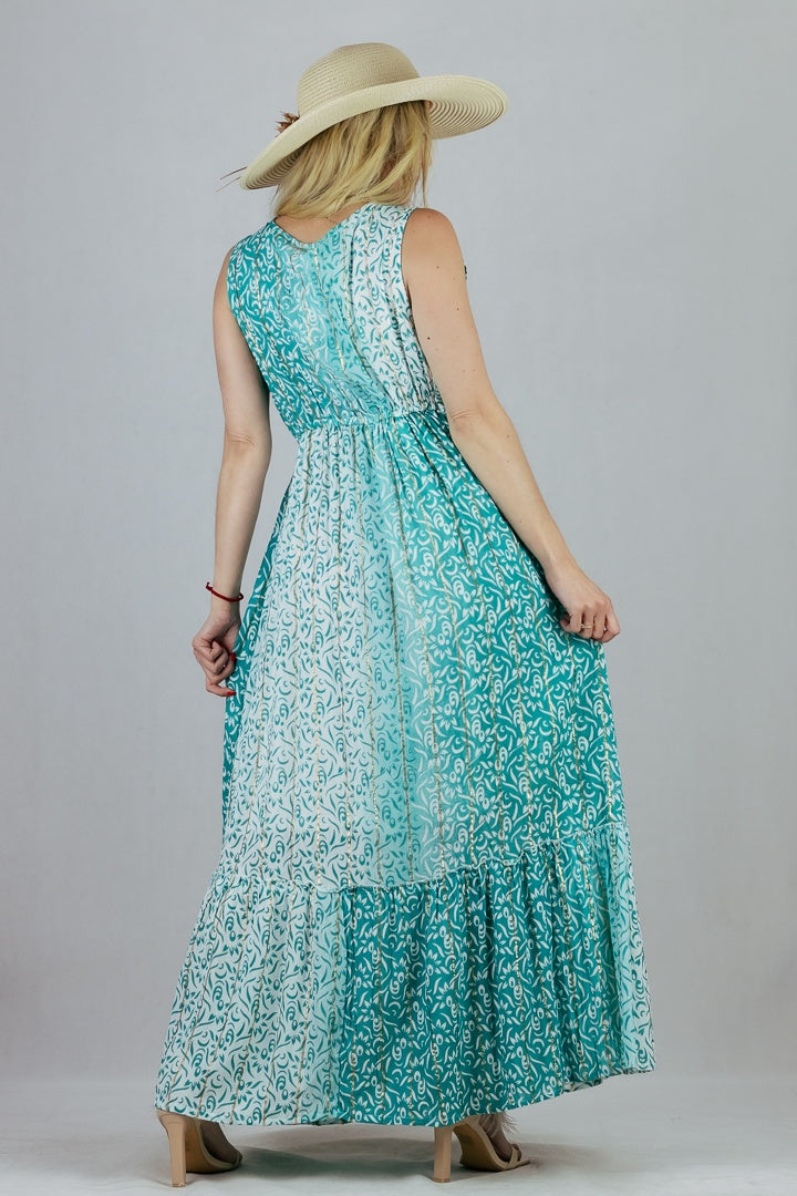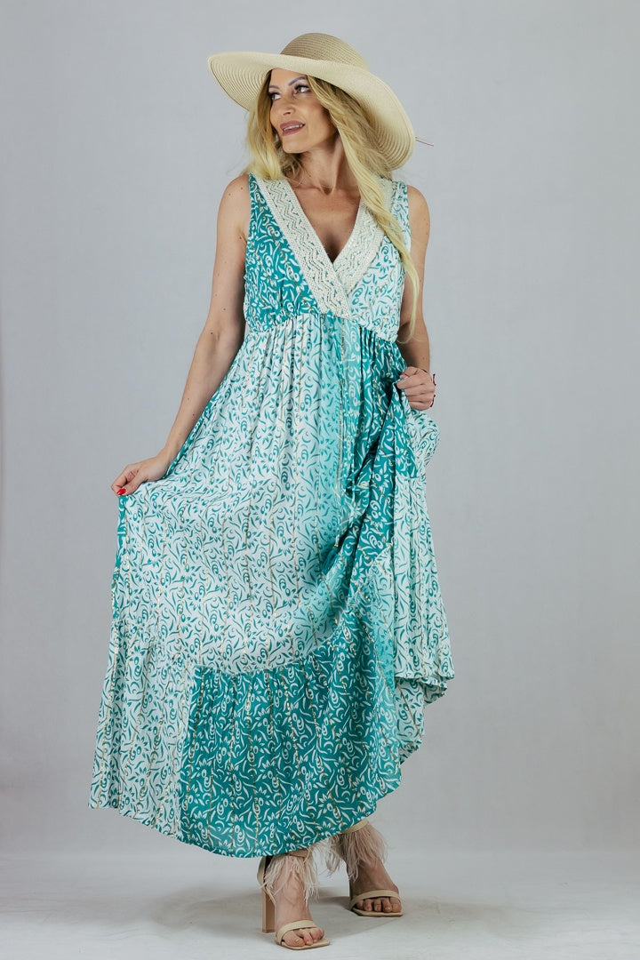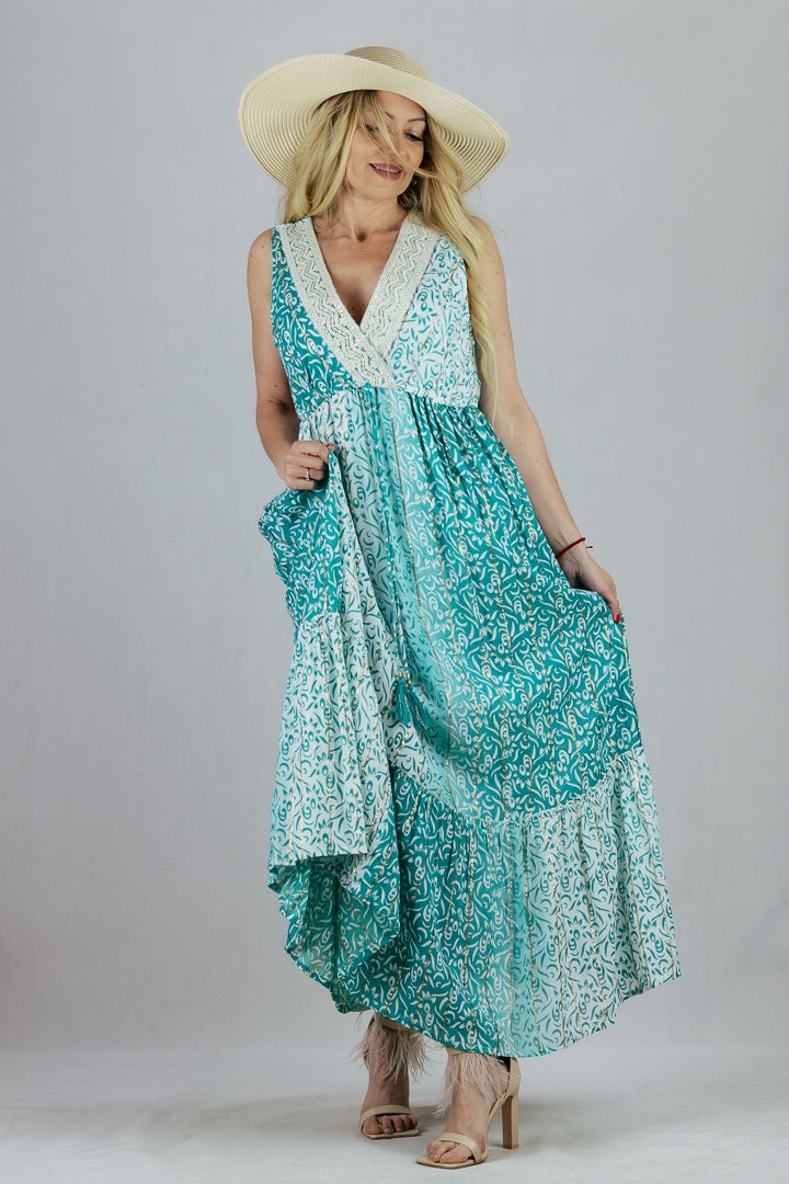 Letnia sukienka maxi ze zdobionym dekoltem