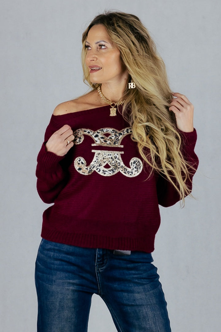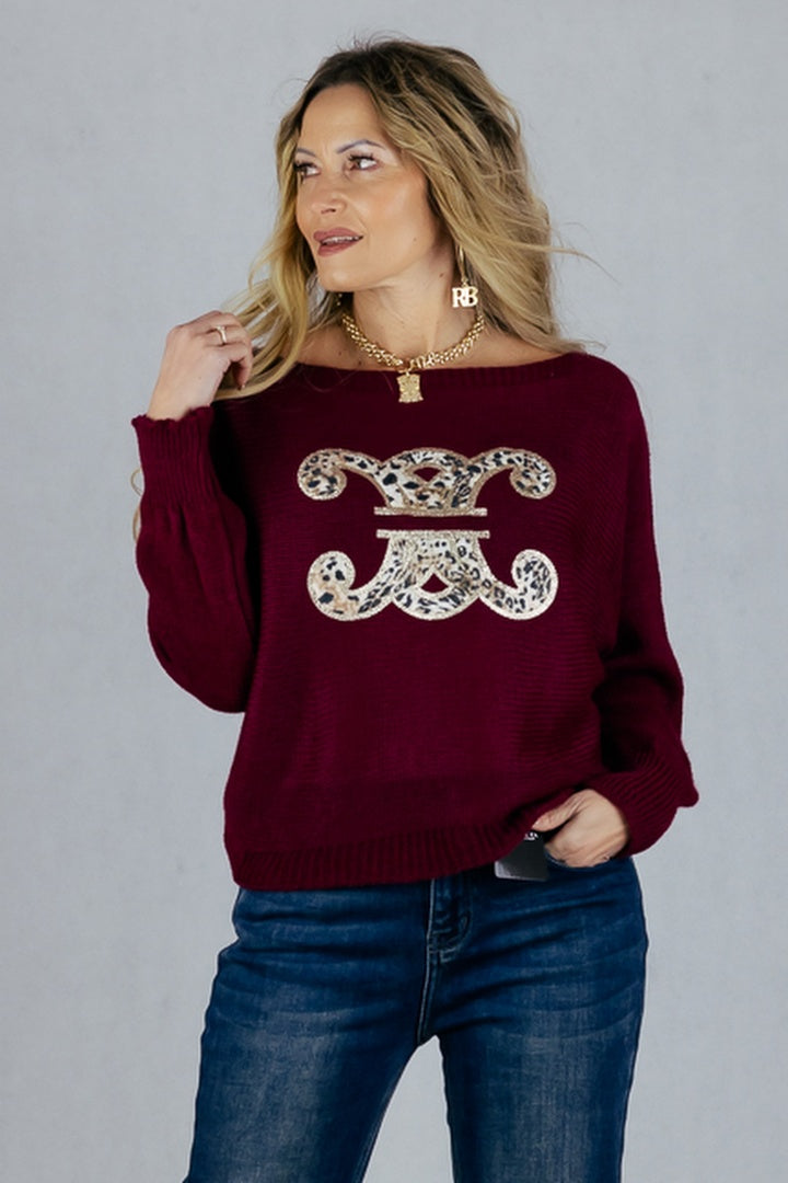 Sweter z kimonowym rękawem i dużą aplikacją 3D