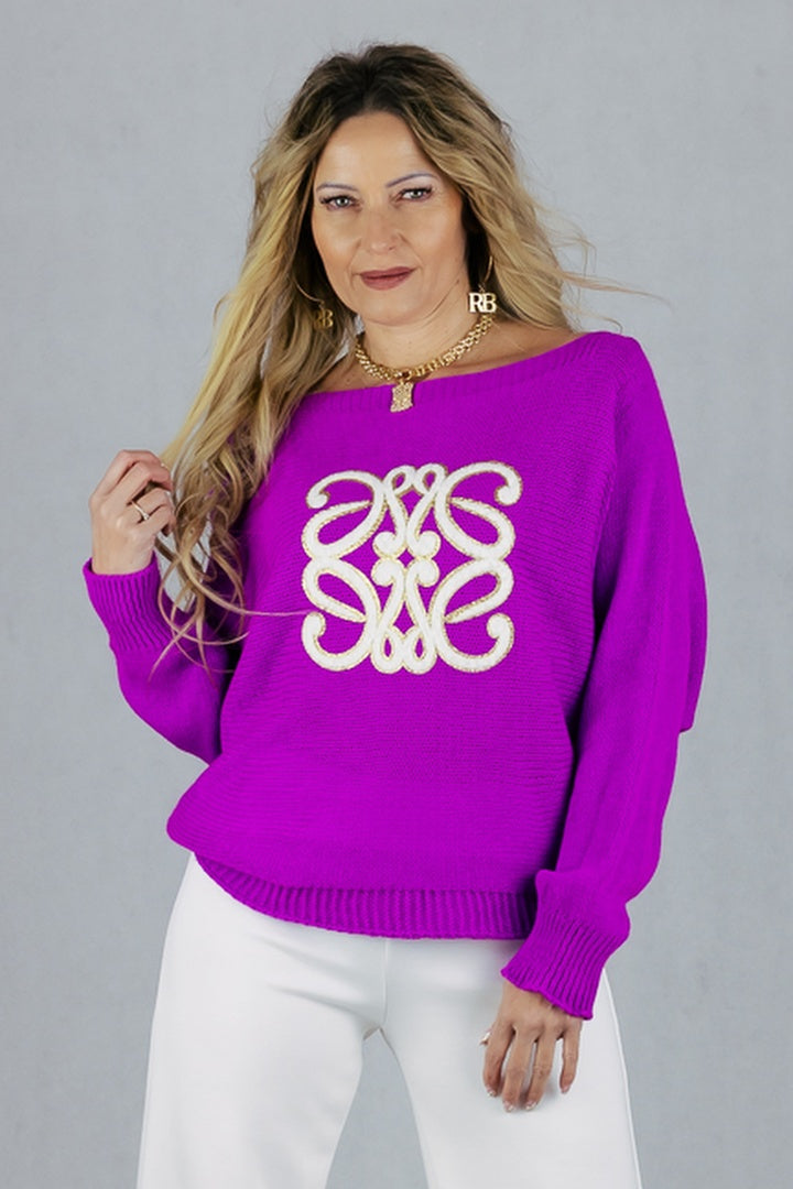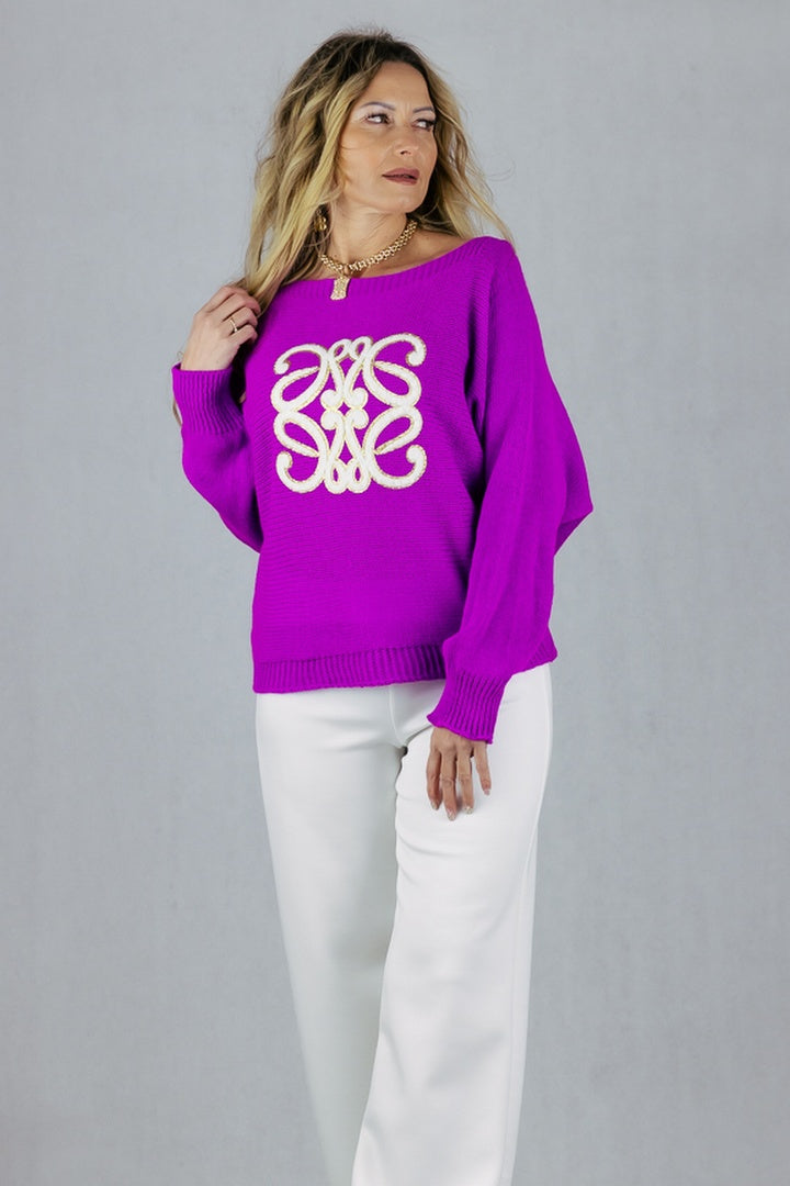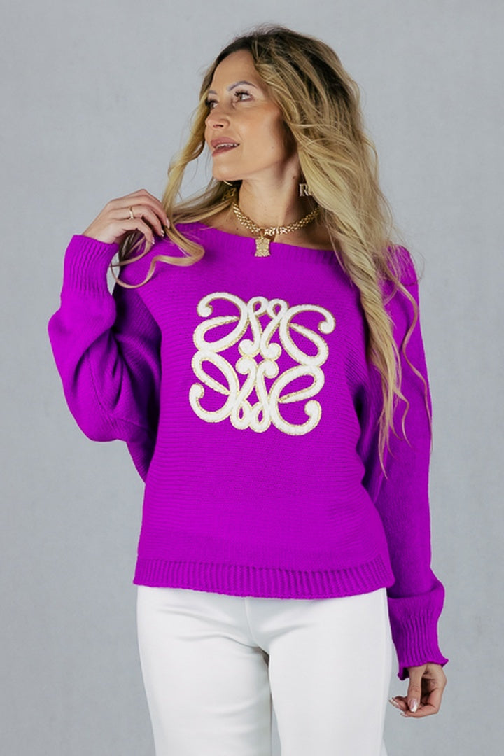 Sweter z aplikacją 3D - fuksja